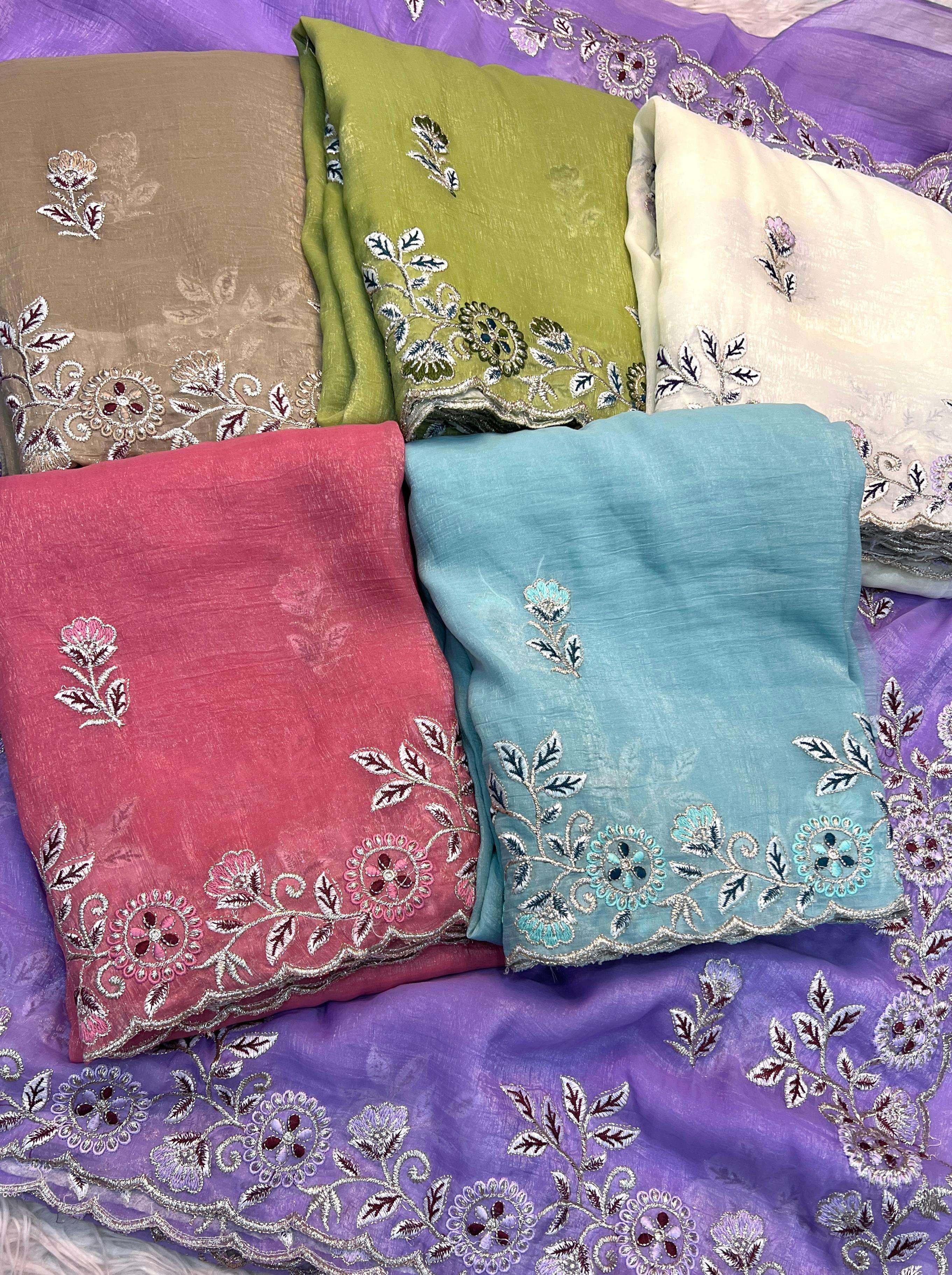 Fabric :- Crunchy Silk Fabric Saree With Fancy Multi Embroderiy Work Saree & Fancy Embroderiy Work Blouse 👚