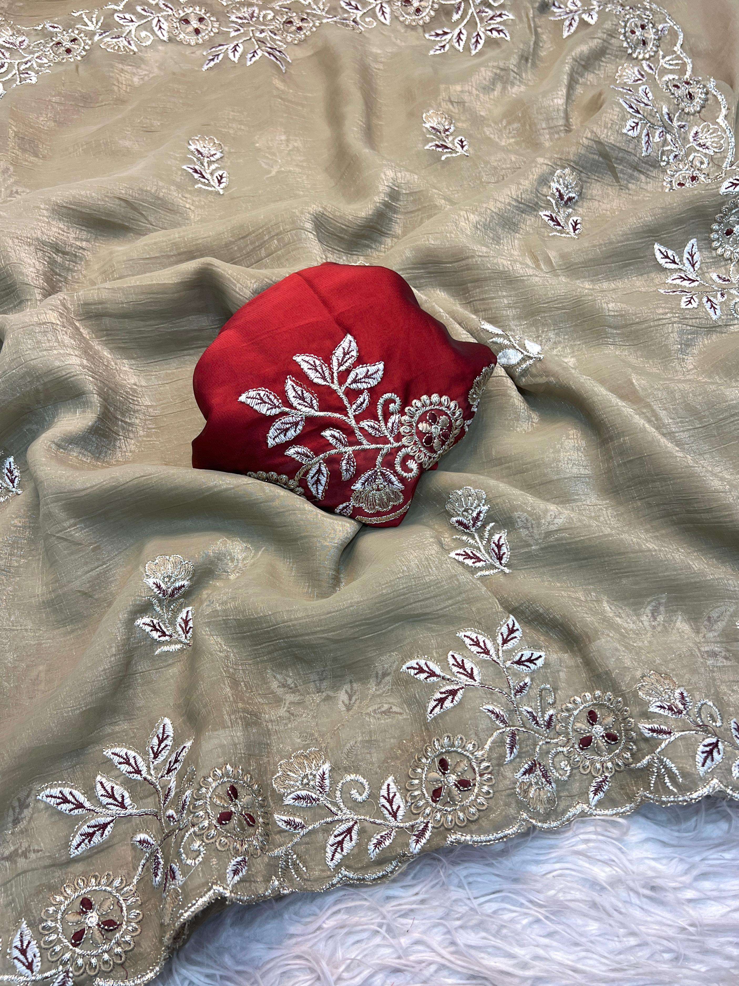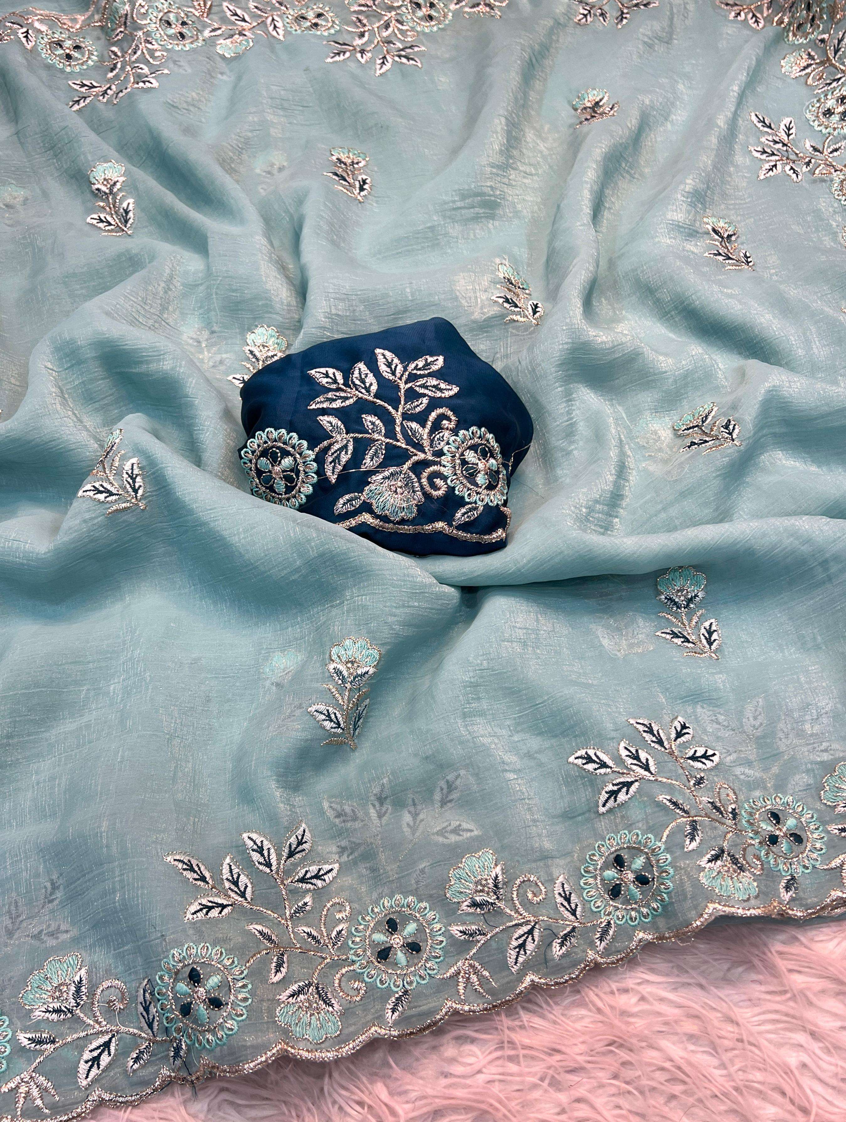 Title | Festival special Multi embroidery work with crunchy fabric fancy saree best collection |