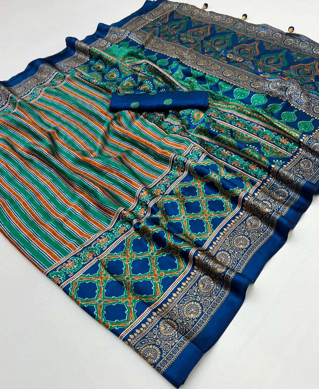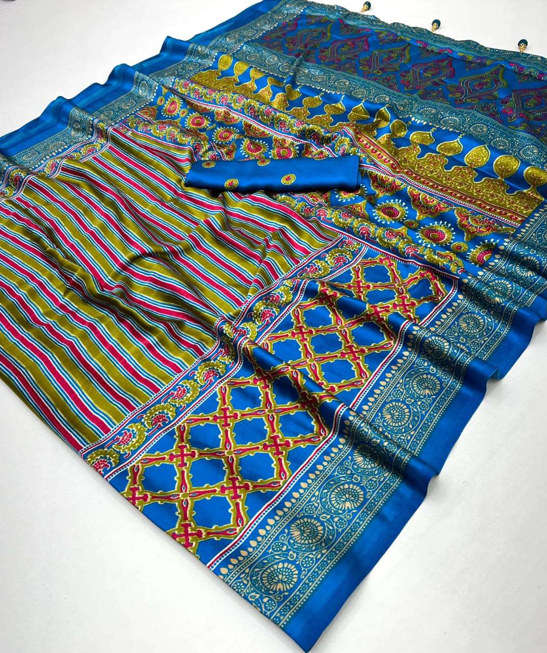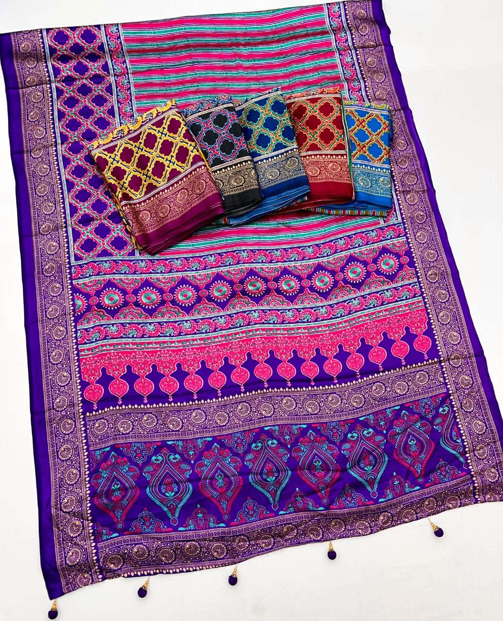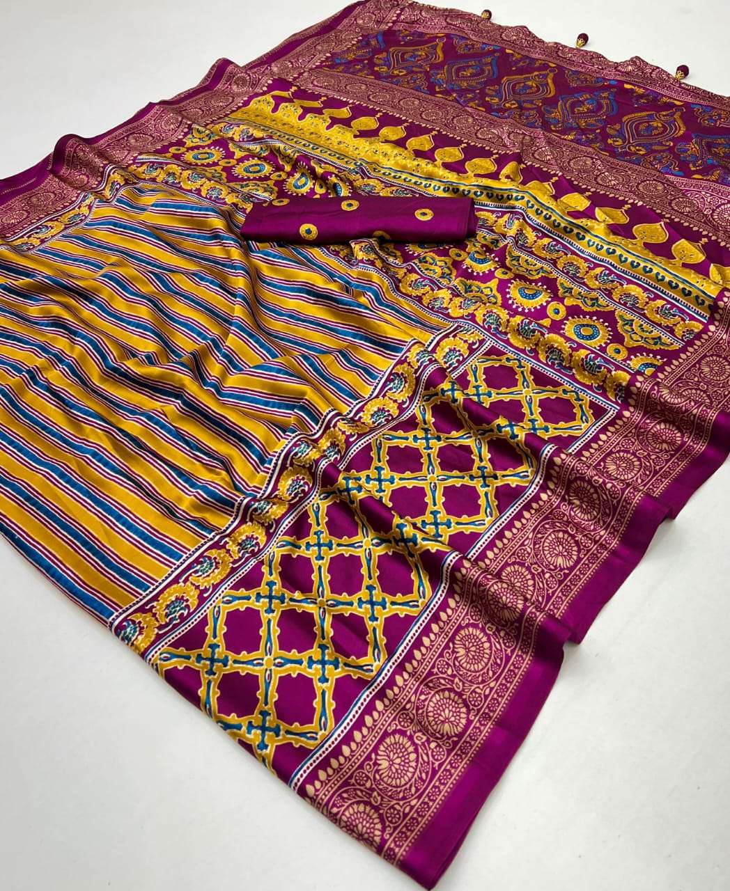 FESTIVAL SPECIAL SATIN CREPE AJRAKH DESIGN FANCY SAREE BEST COLLECTION