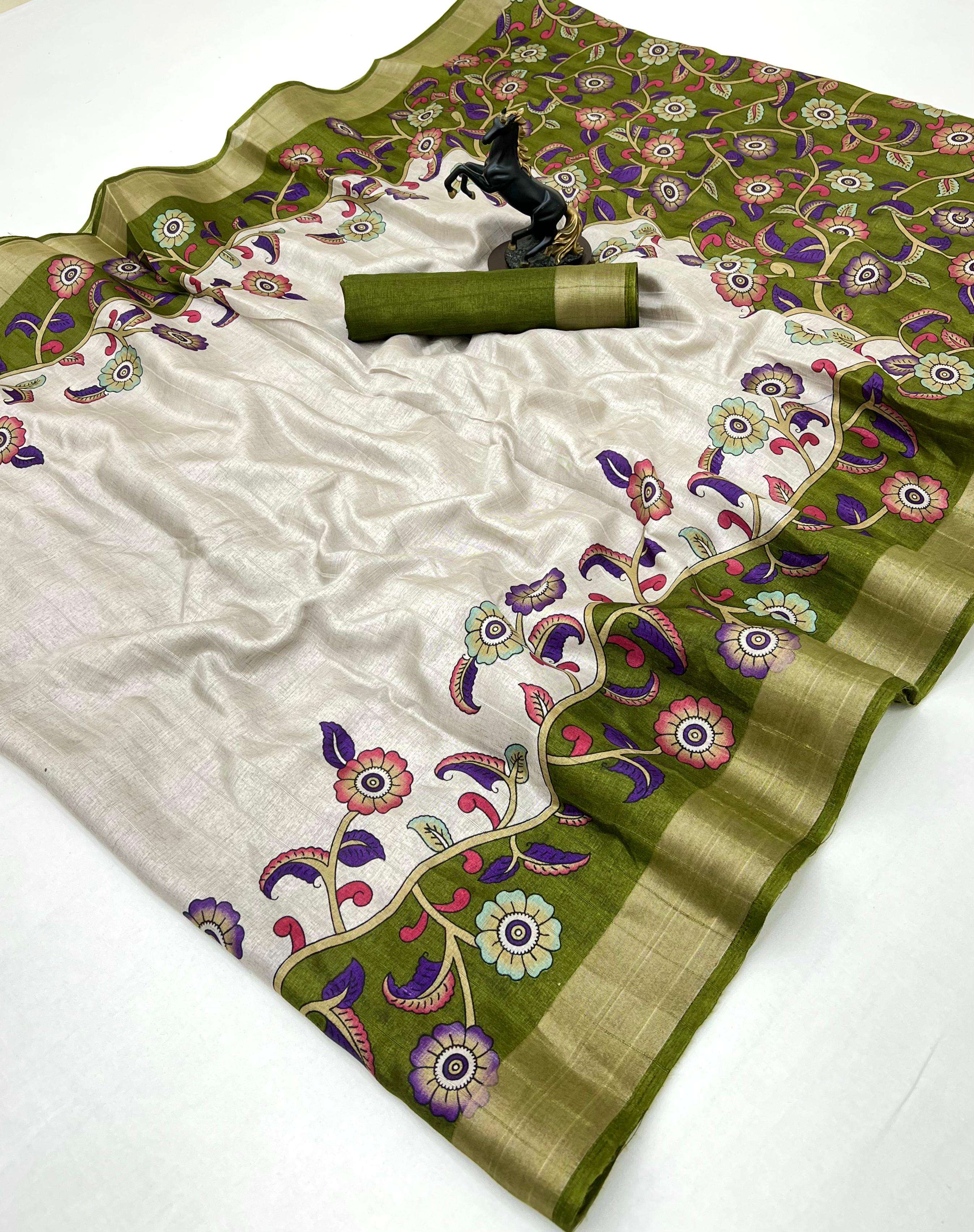 Festival vol 12 kalamkari printed border Soft Silk fabric fancy saree best Collection