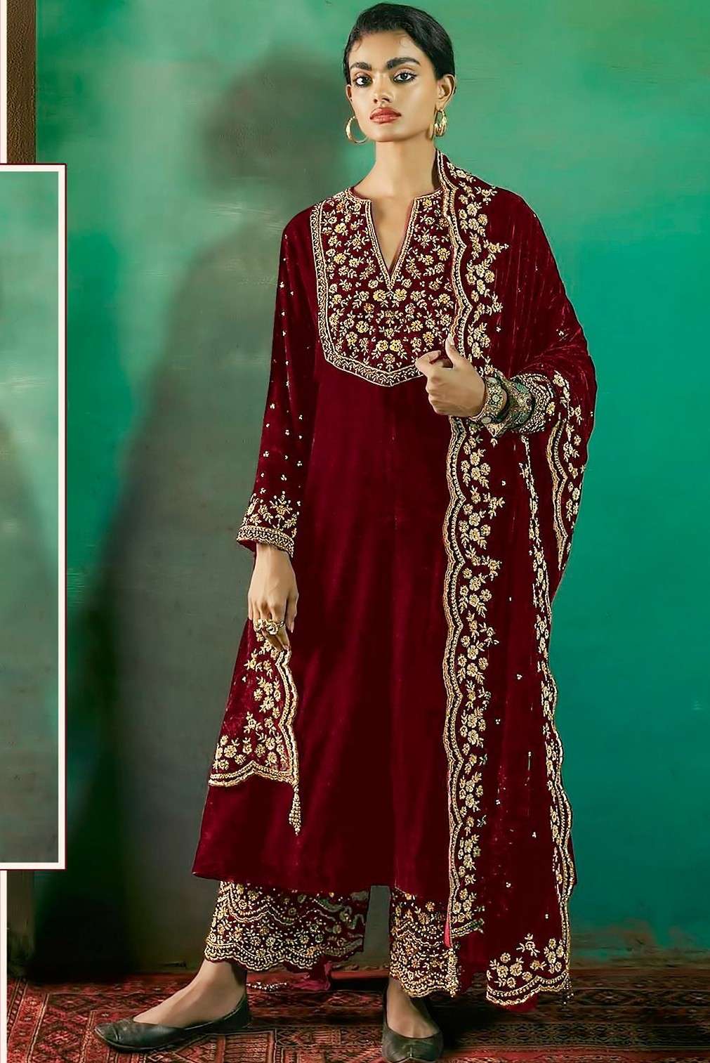 Top-:9000 VELVET WITH HEAVY EMBROIDERY BOTTOM:- 9000 VELVET WITH EMBROIDERY WORK DUPATA:- 9000 VELVET WITH HEAVY EMBROIDERY FULL SET ONLY |
