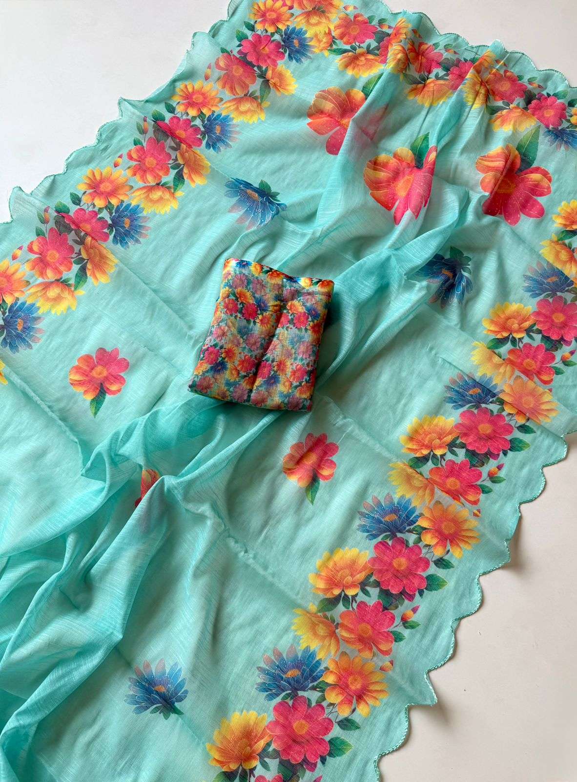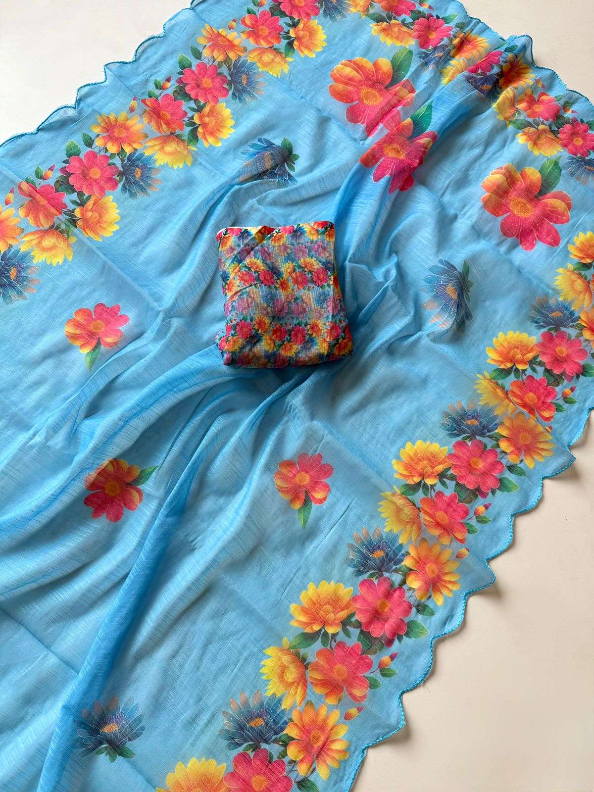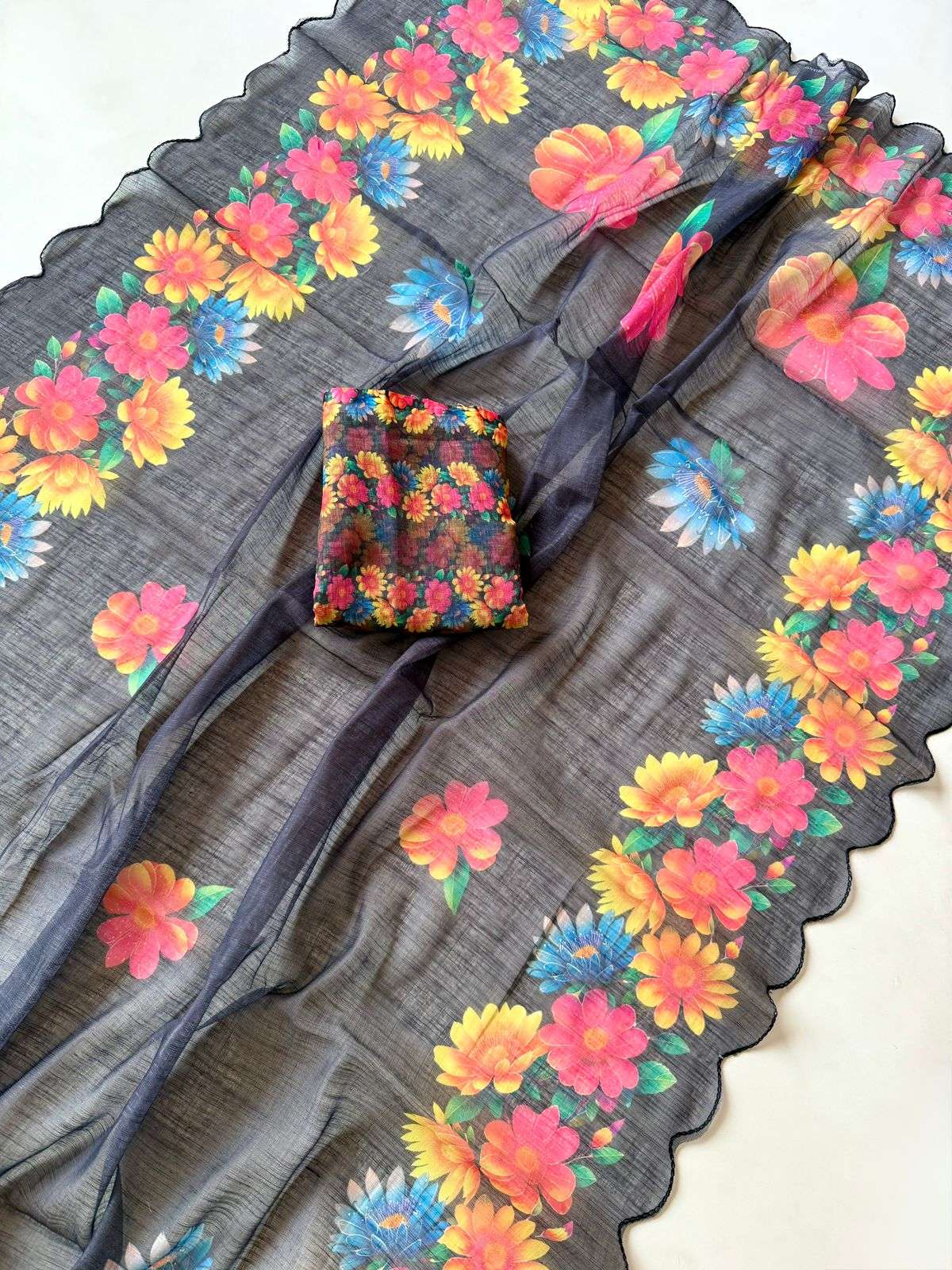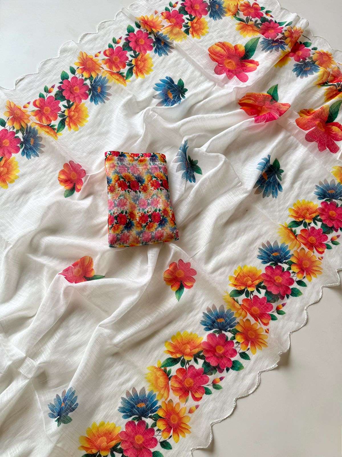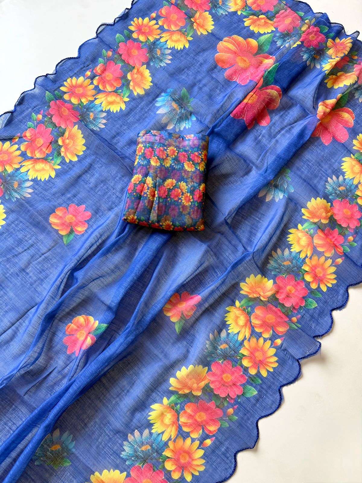 FLOWER PRINTED LINEN FABRIC LIGHTWEIGHT SAREE BEST COLLECTION