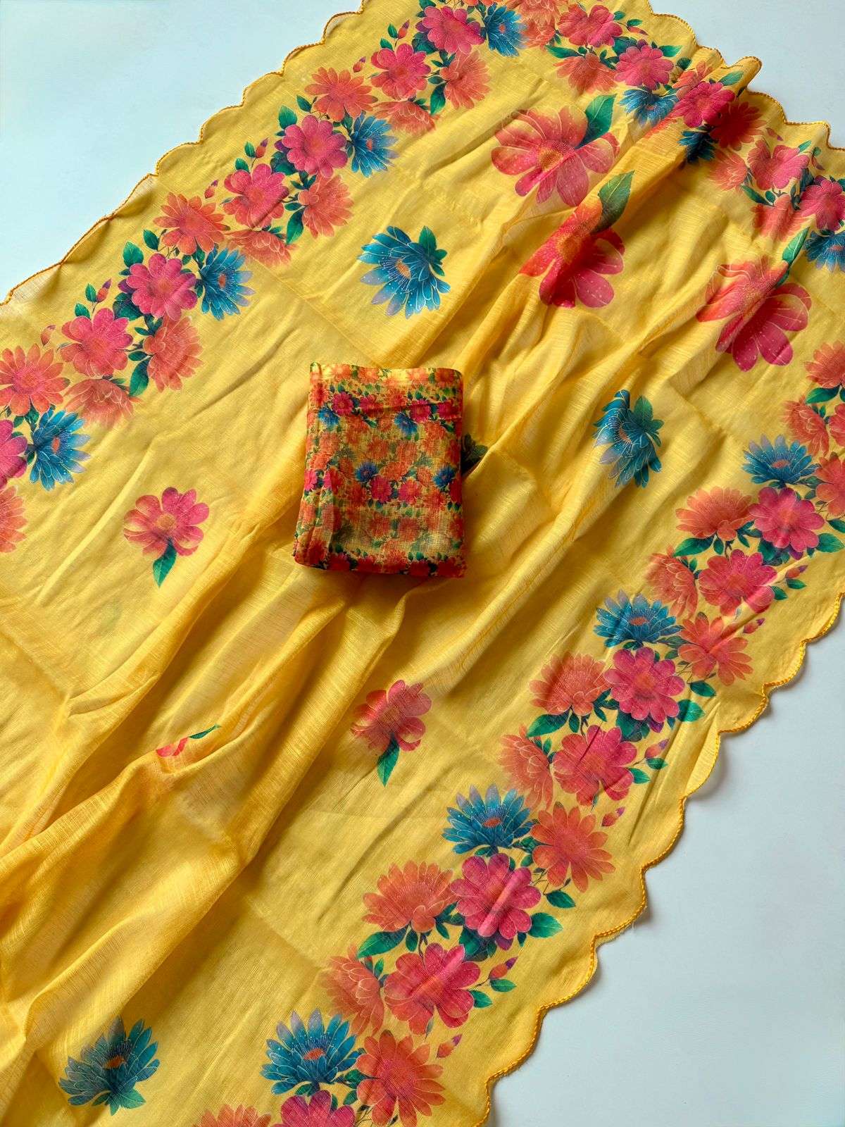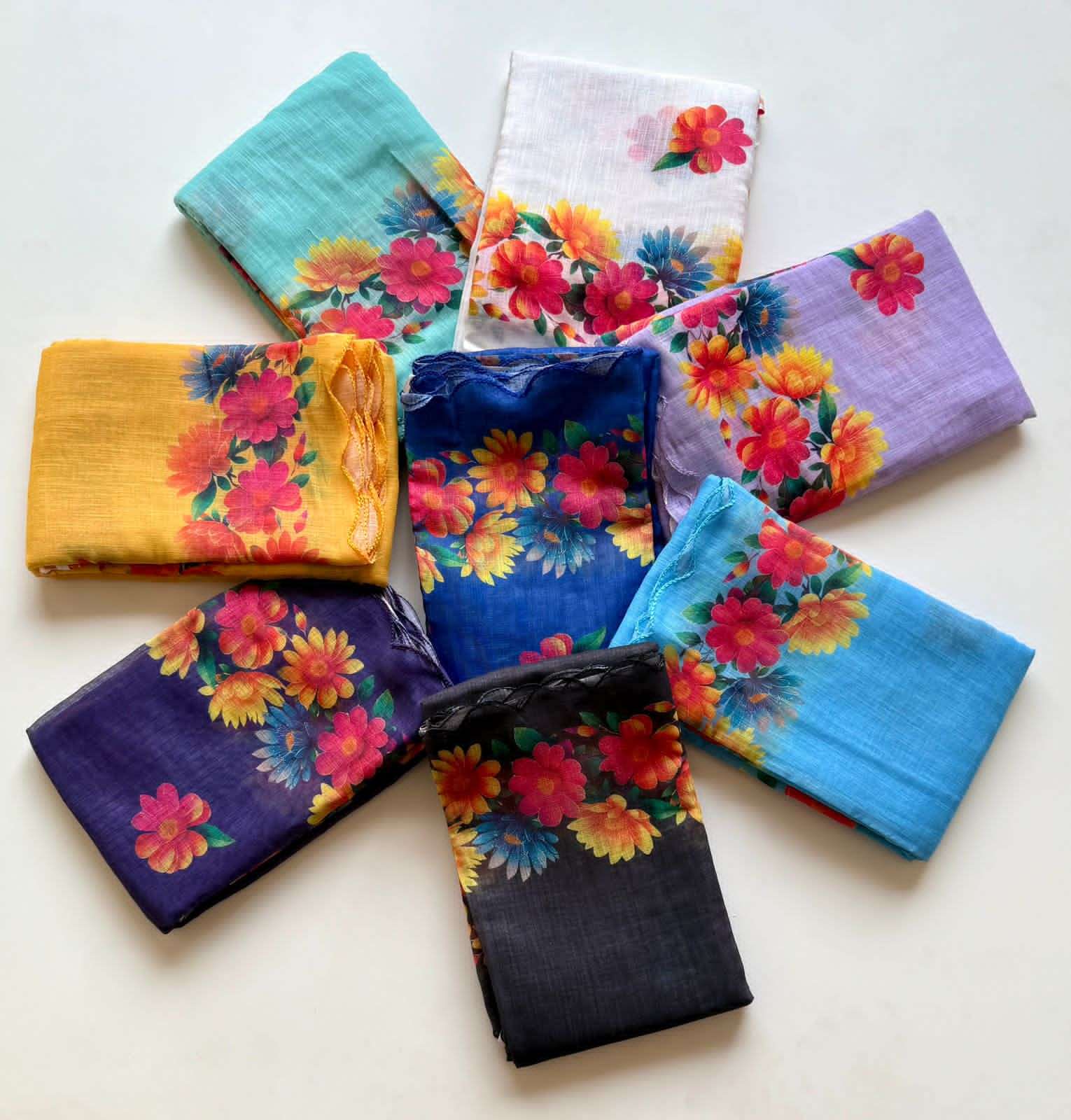 | Title | Flower Printed Linen Fabric Lightweight Saree Best Collection |