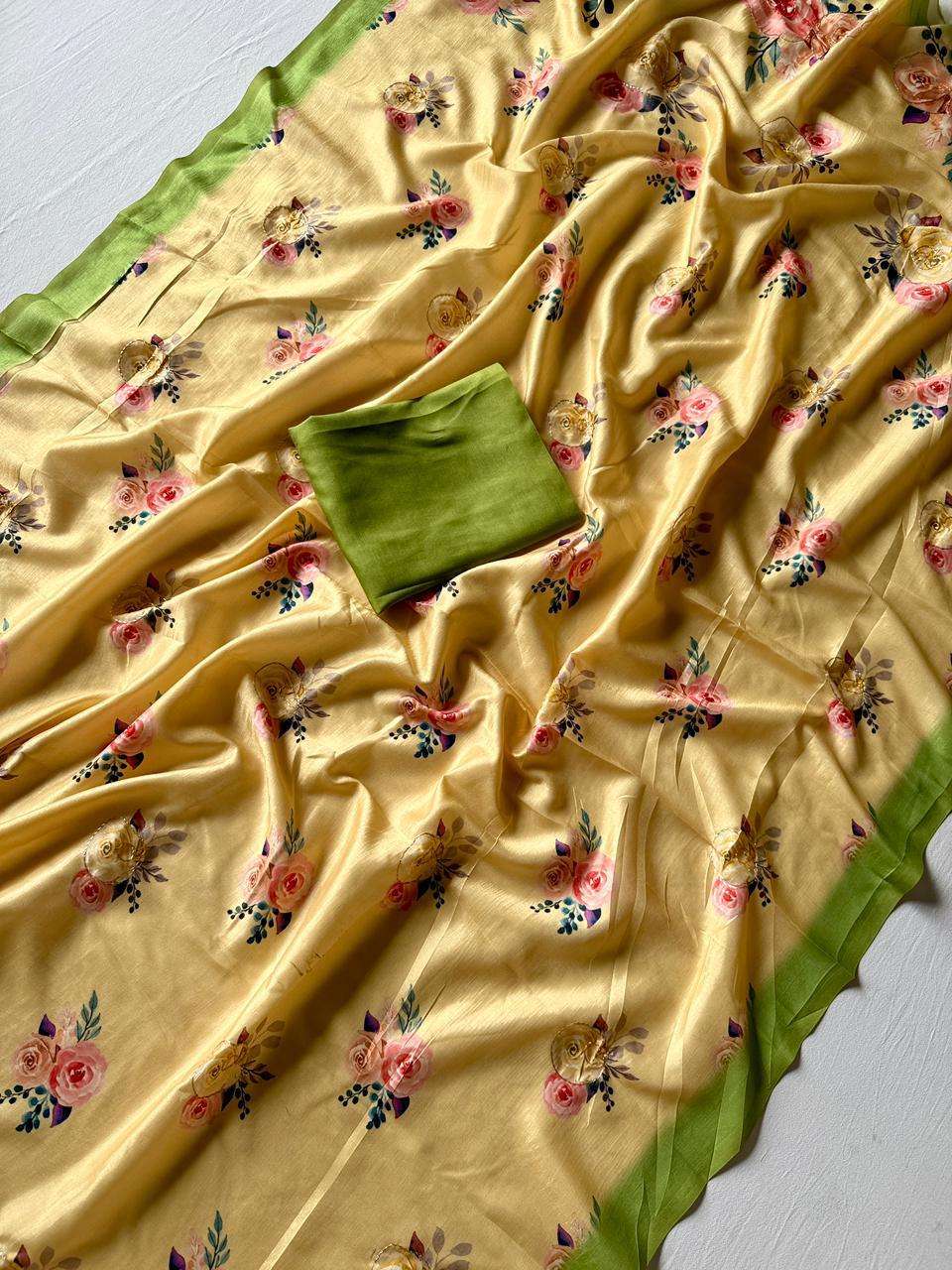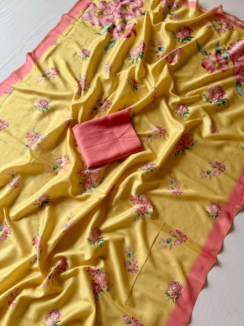 FLOWERS PRINTED TUSSER SILK FABRIC FANCY LOOK SAREE BEST COLLECTION
