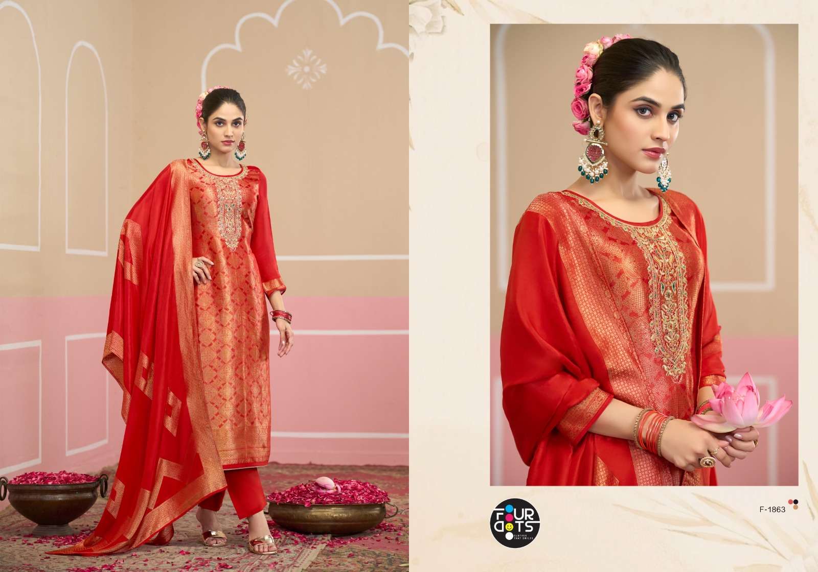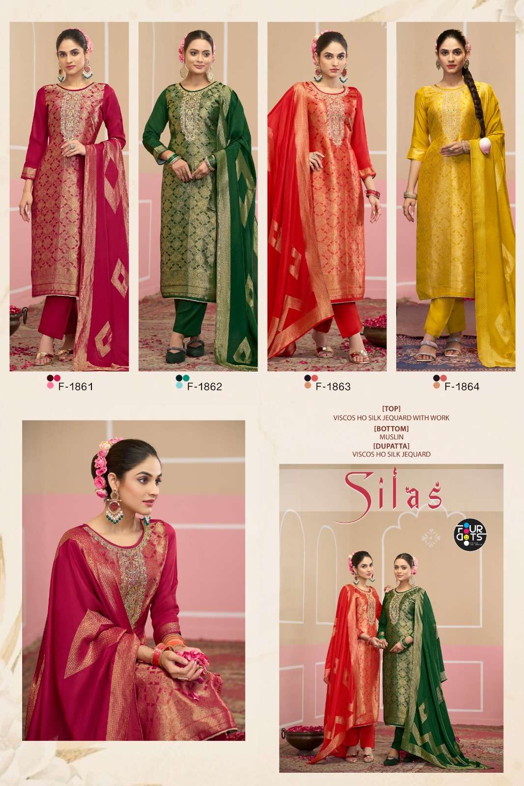 Buy Online FOURDOTS SILAS SOUTH STYLE NEW BRIDAL JACQUARD PRINT SUIT WEAR SURAT EXPORT 4 Pcs of Full Catalogue at Wholesale Price. Looking for FOURDOTS SILAS SOUTH STYLE NEW BRIDAL JACQUARD PRINT SUIT WEAR SURAT EXPORT Full Catalouge at Best Price? Buy Now FOURDOTS SILAS SOUTH STYLE NEW BRIDAL JACQUARD PRINT SUIT WEAR SURAT EXPORT at Wholesale Rate of Rs 6300 with Total 4 Pcs from authroized dealer and supplier of FOURDOTS Brand. Cost of Each piece is just only Rs 1575 which is very low and affordable price to resale the product in your retail store Ethnic Export is Surat based Wholesale Supplier & Dealer of FOURDOTS Brand. Click on Brand name to Know more about FOURDOTS Brand's products.Call or Whatsapp on +91-9825759366 for booking or enquiry