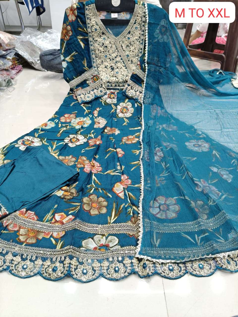 FUNCTION WEAR BEAUTIFUL FLOWER DESIGNER ANARKALI STYLE ROUND GOWN SUIT VRD