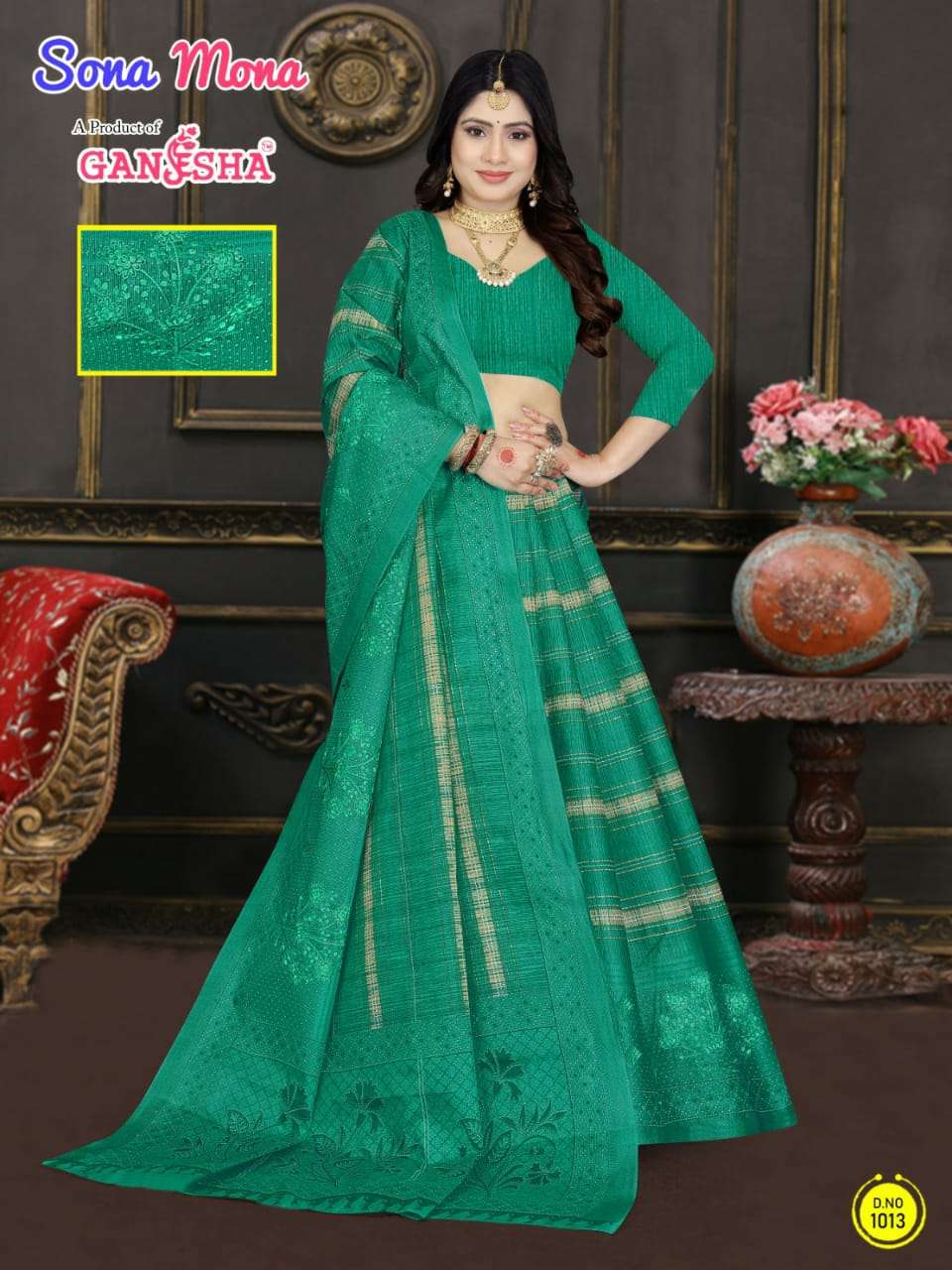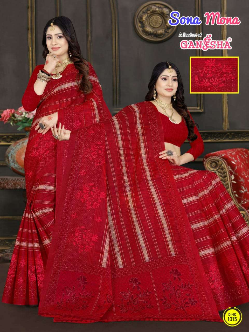 Buy Online GANESHA SONA MONA INDIAN WOMEN DAILY WEAR COTTON SAREE AT BUY LOW PRICE 10 Pcs of Full Catalogue at Wholesale Price. Looking for GANESHA SONA MONA INDIAN WOMEN DAILY WEAR COTTON SAREE AT BUY LOW PRICE Full Catalouge at Best Price? Buy Now GANESHA SONA MONA INDIAN WOMEN DAILY WEAR COTTON SAREE AT BUY LOW PRICE at Wholesale Rate of Rs 4050 with Total 10 Pcs from authroized dealer and supplier of GANESH JI SUITS Brand. Cost of Each piece is just only Rs 405 which is very low and affordable price to resale the product in your retail store Ethnic Export is Surat based Wholesale Supplier & Dealer of GANESH JI SUITS Brand. Click on Brand name to Know more about GANESH JI SUITS Brand's products.Call or Whatsapp on +91-9825759366 for booking or enquiry