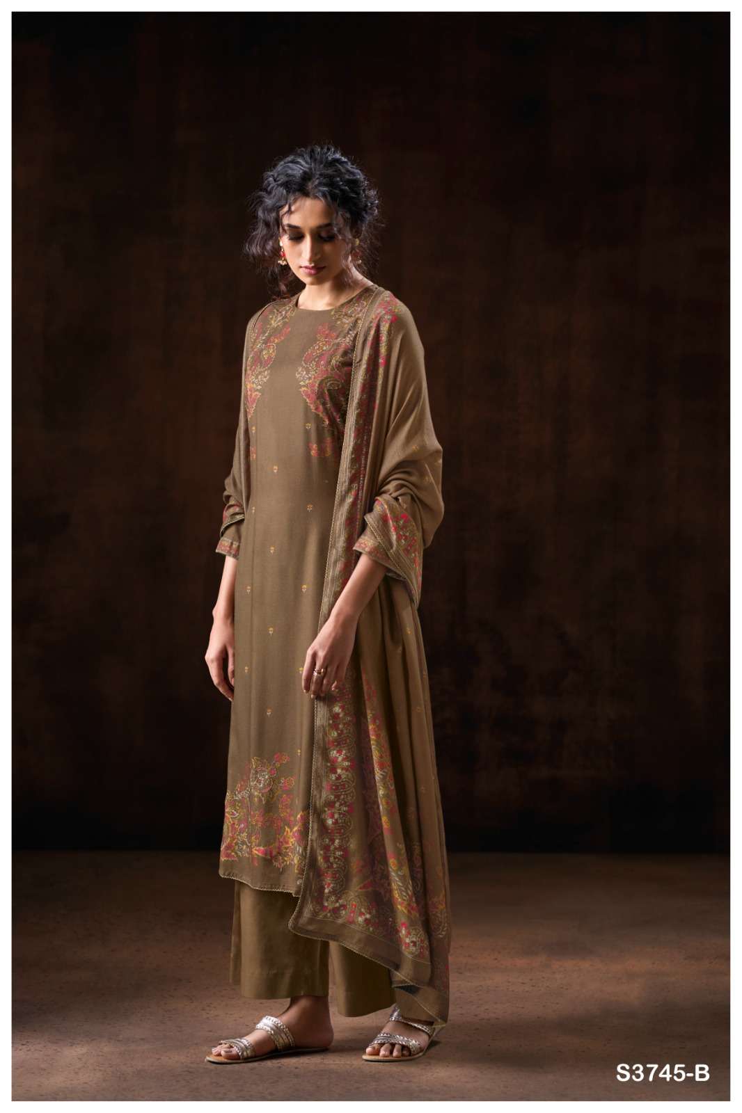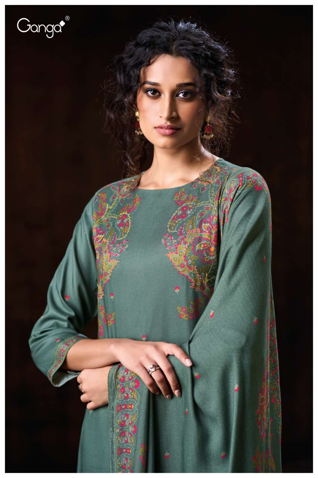 GANGA DARSIE 3745 WOOL PASHMINA PRINTED WITH HANDWORK SALWAR SUIT RESELLER