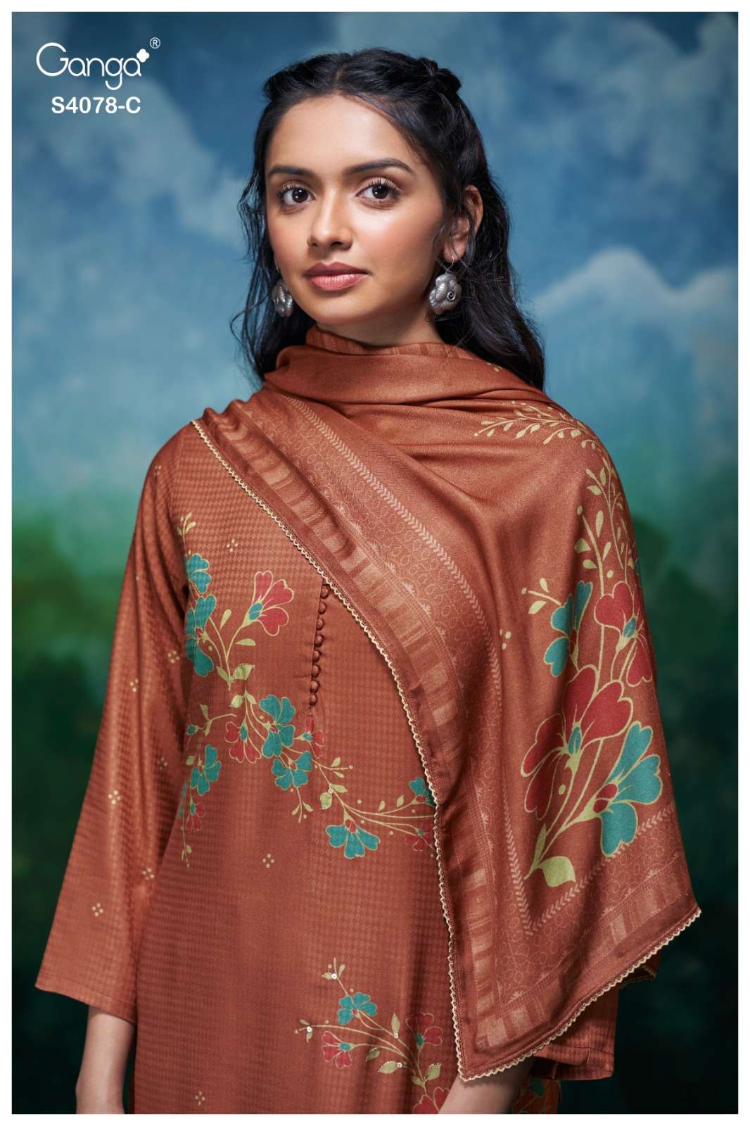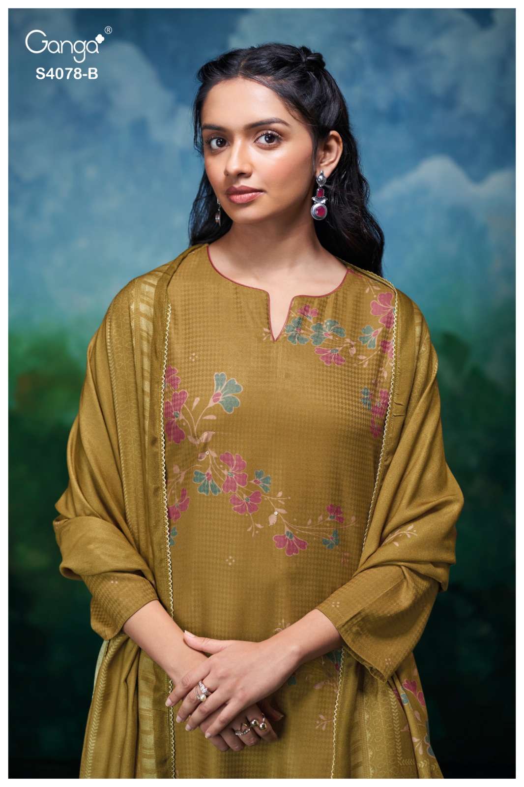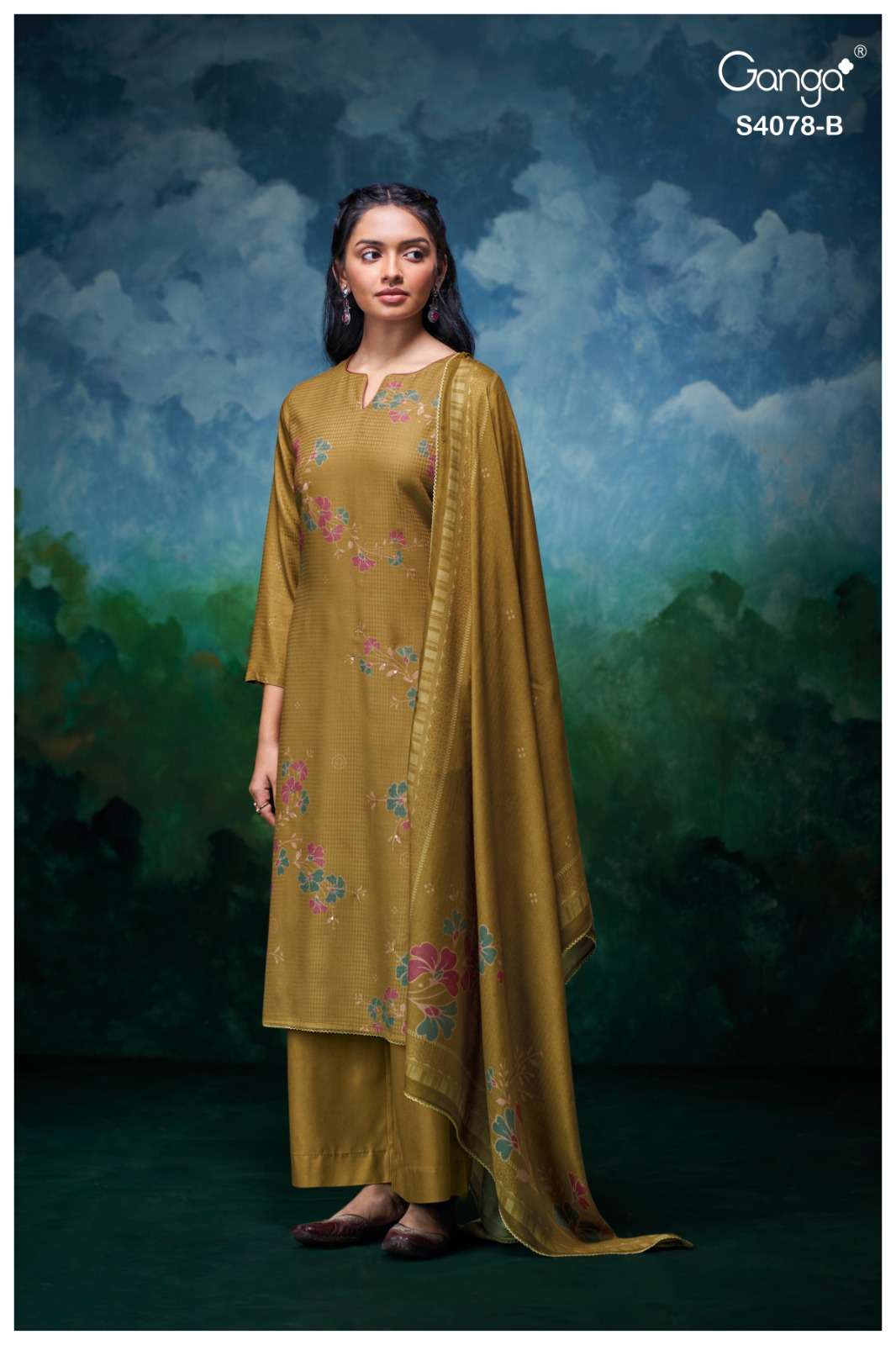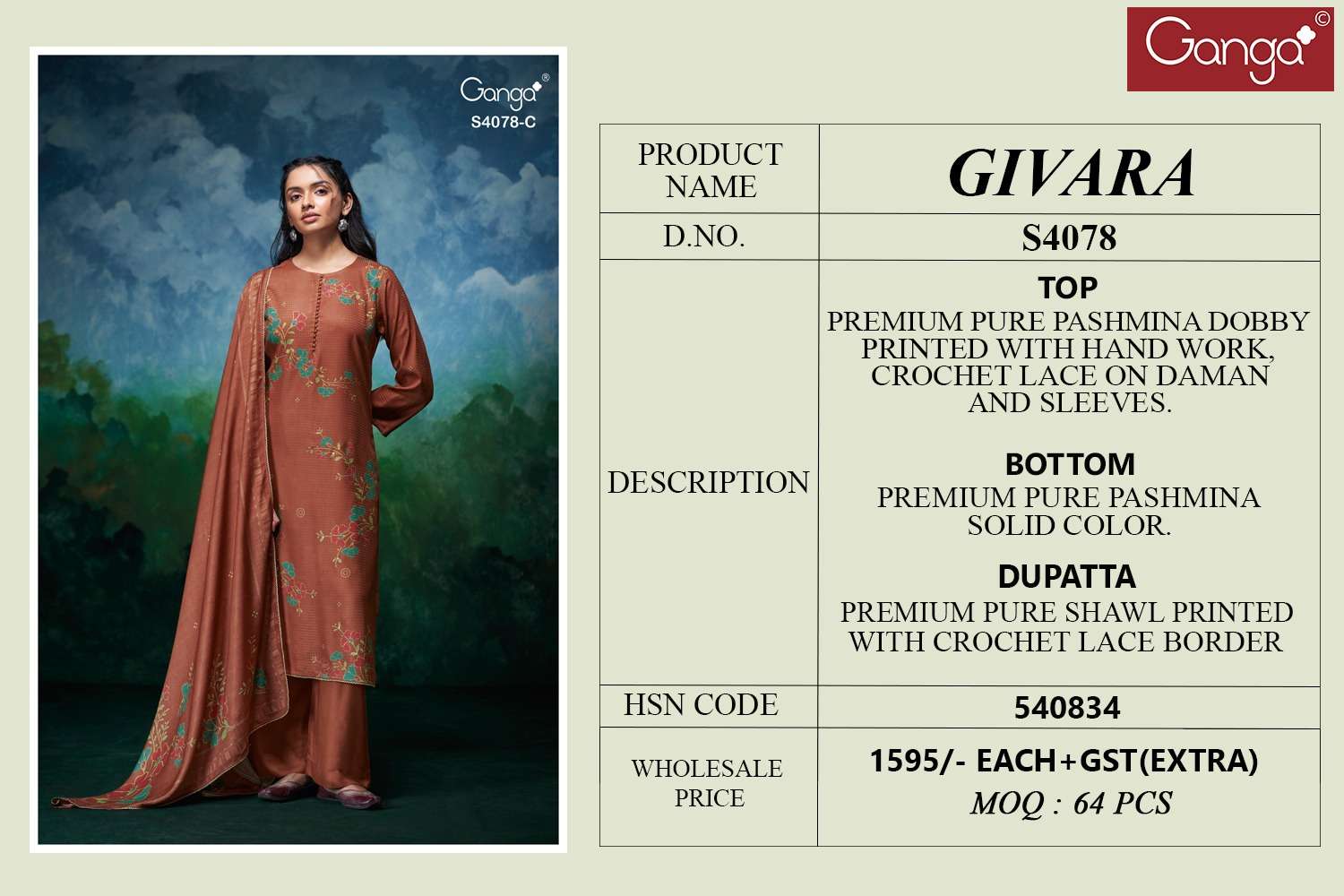 Title | GANGA GIVARA 4078 PASHMINA DOBBY PRINTED HANDWORK SUIT EXCLUSIVE BRAND EXPORT |