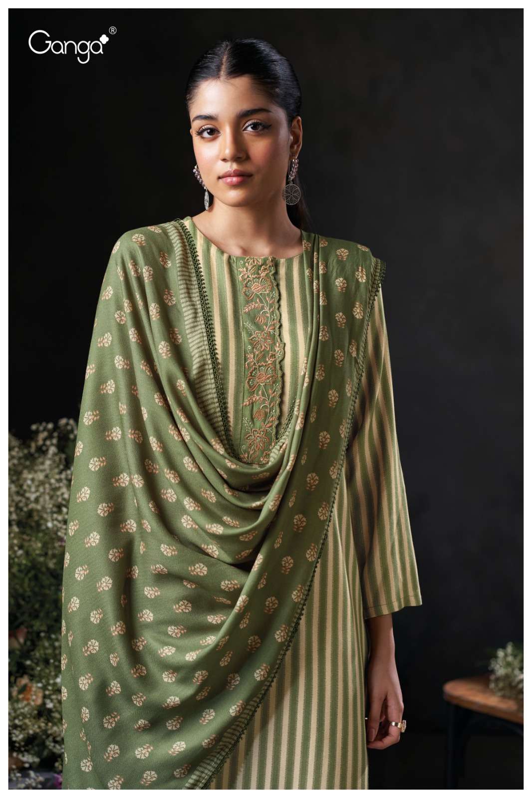 GANGA NIRELLE 3878 INDIAN PASHMINA FASHION DESIGNER SCHIFFLI WORK SUIT RESELLER
