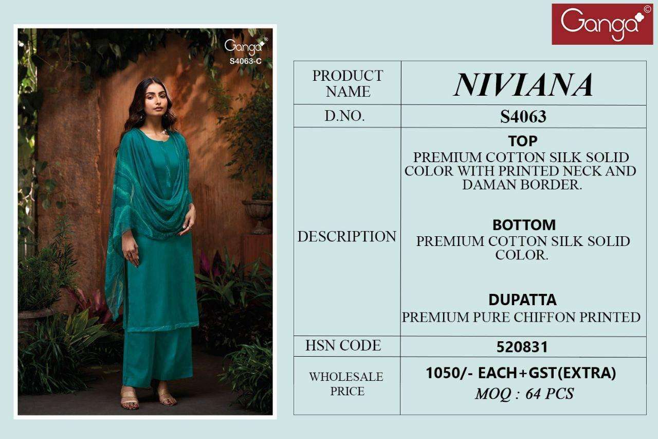 | Title | GANGA NIVIANA 4063 PREMIUM COTTON SILK SOLID SUIT TO PARTY WEAR OUTFIT DEALER |