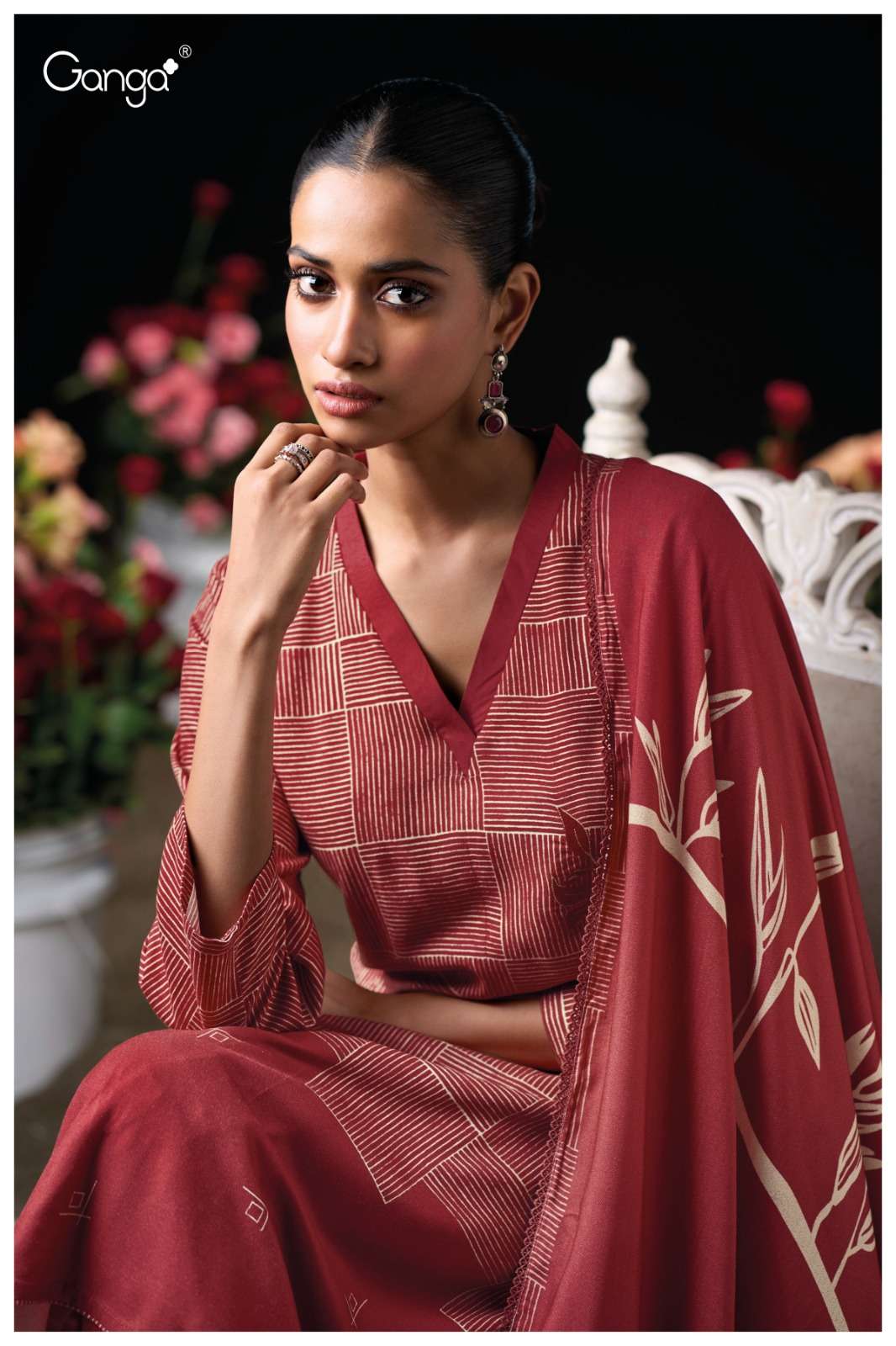 GANGA PYRRHA 3941 WOOL PASHMINA PRINTED EMBROIDERY LACE SUIT TO PARTY STYLISH RESELLER