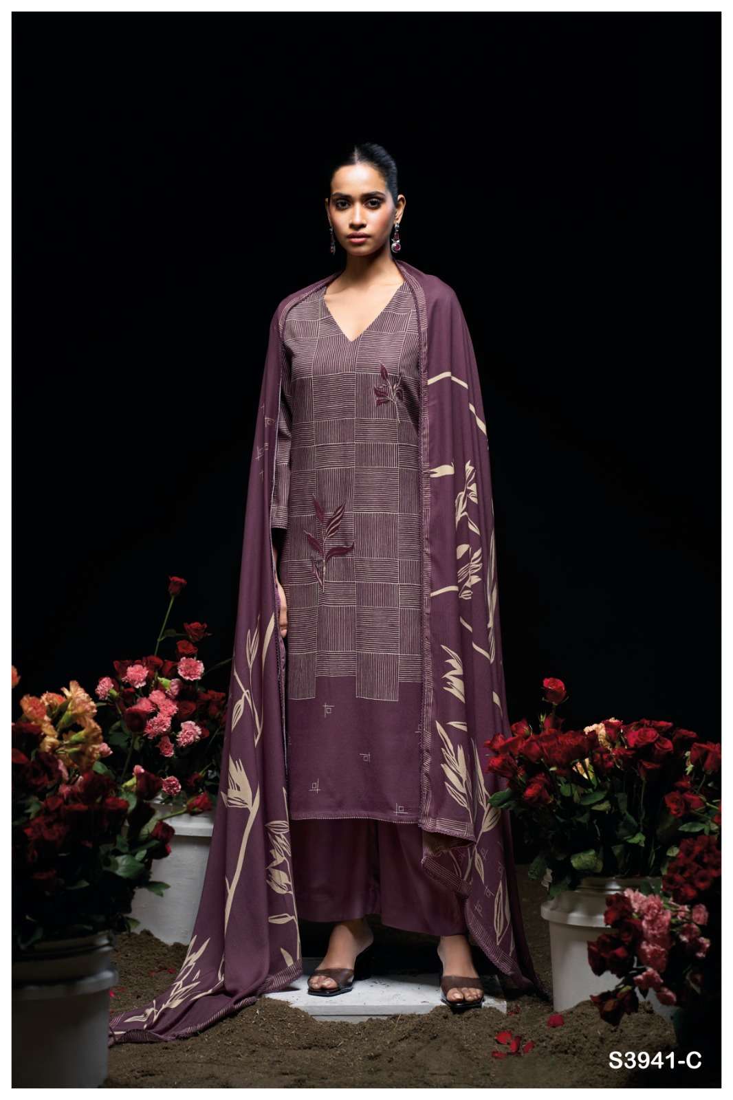 Title | GANGA PYRRHA 3941 WOOL PASHMINA PRINTED EMBROIDERY LACE SUIT TO PARTY STYLISH RESELLER |