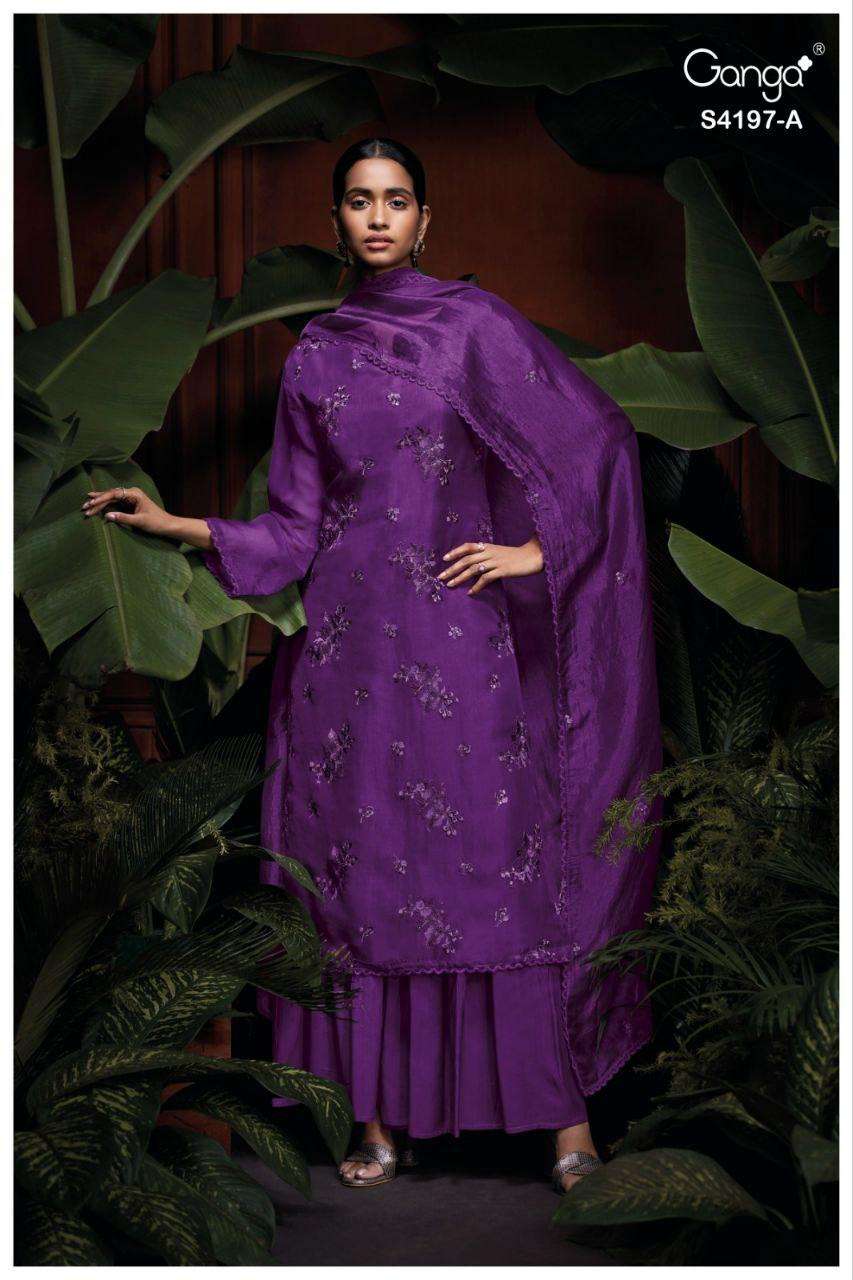 GANGA QUINA 4197 PREMIUM BEMBERG KORA SOLID COLOUR 3 PIECE SUIT WEAR EXPORT