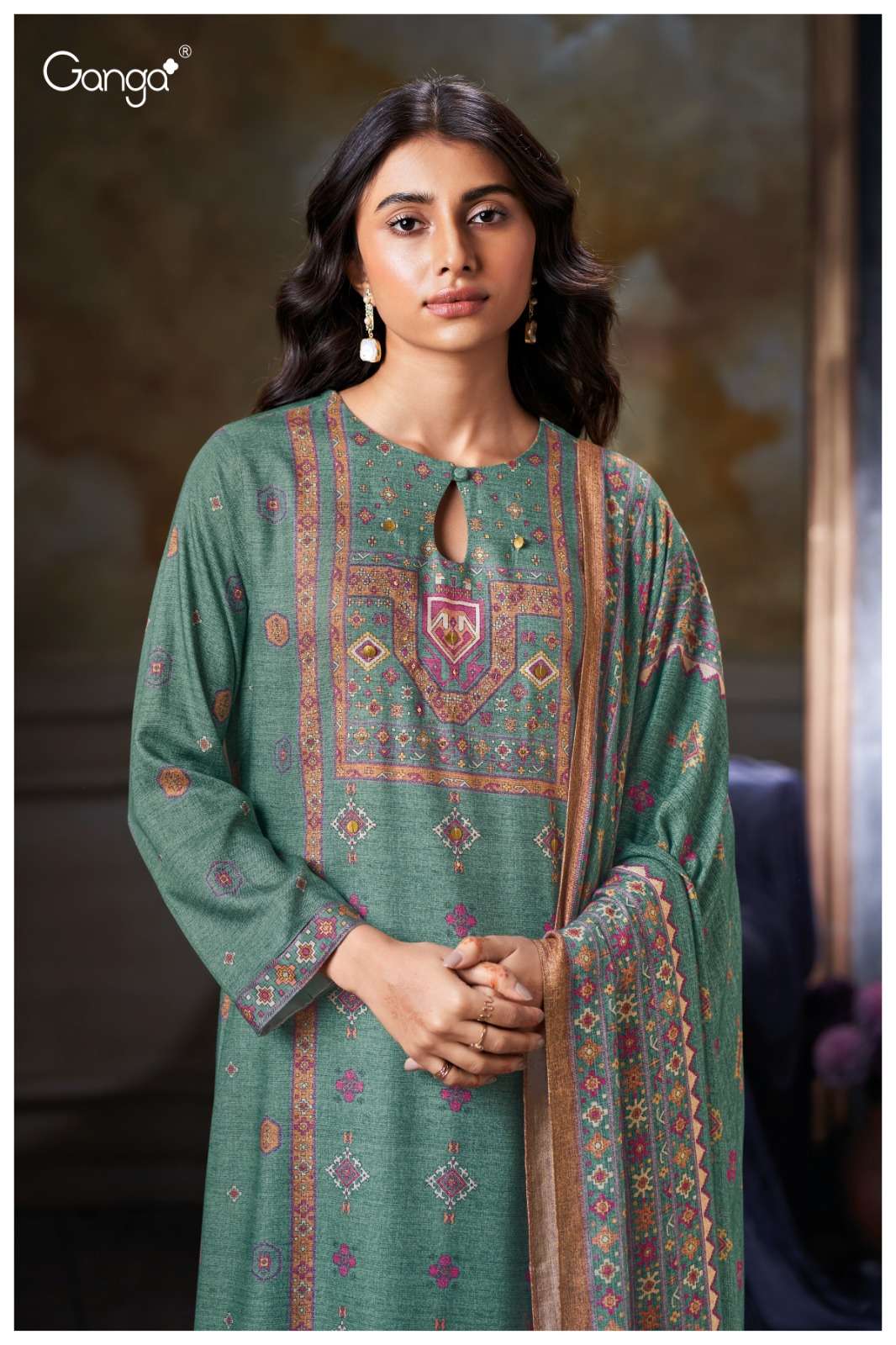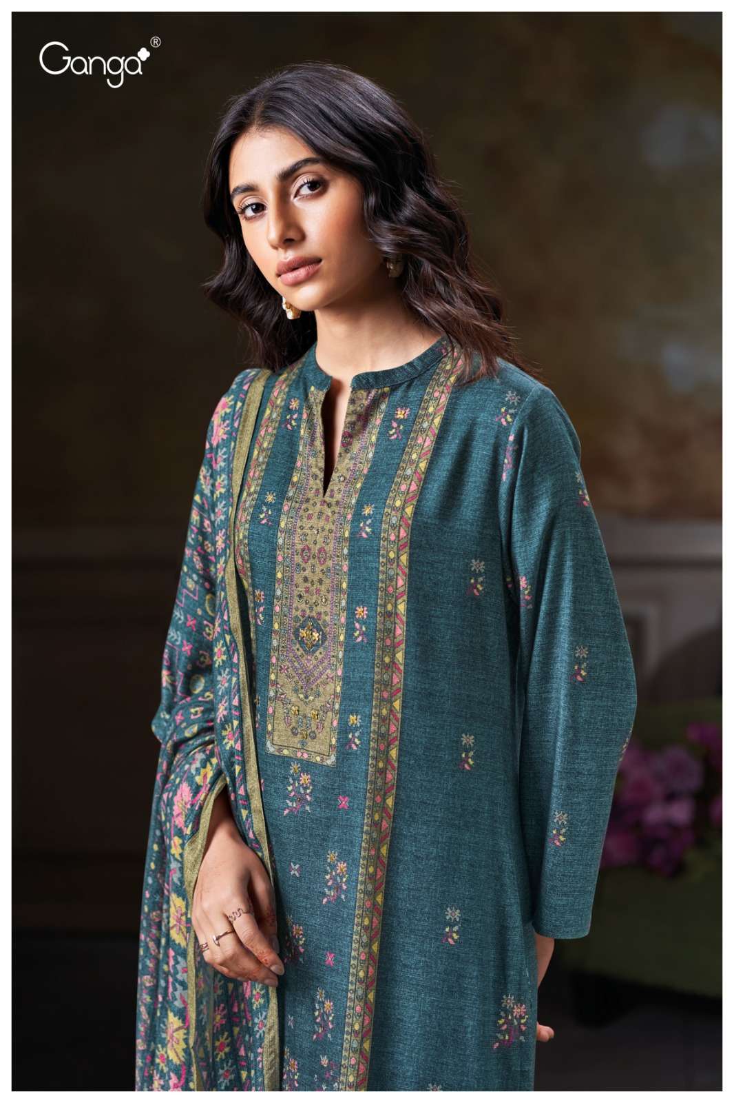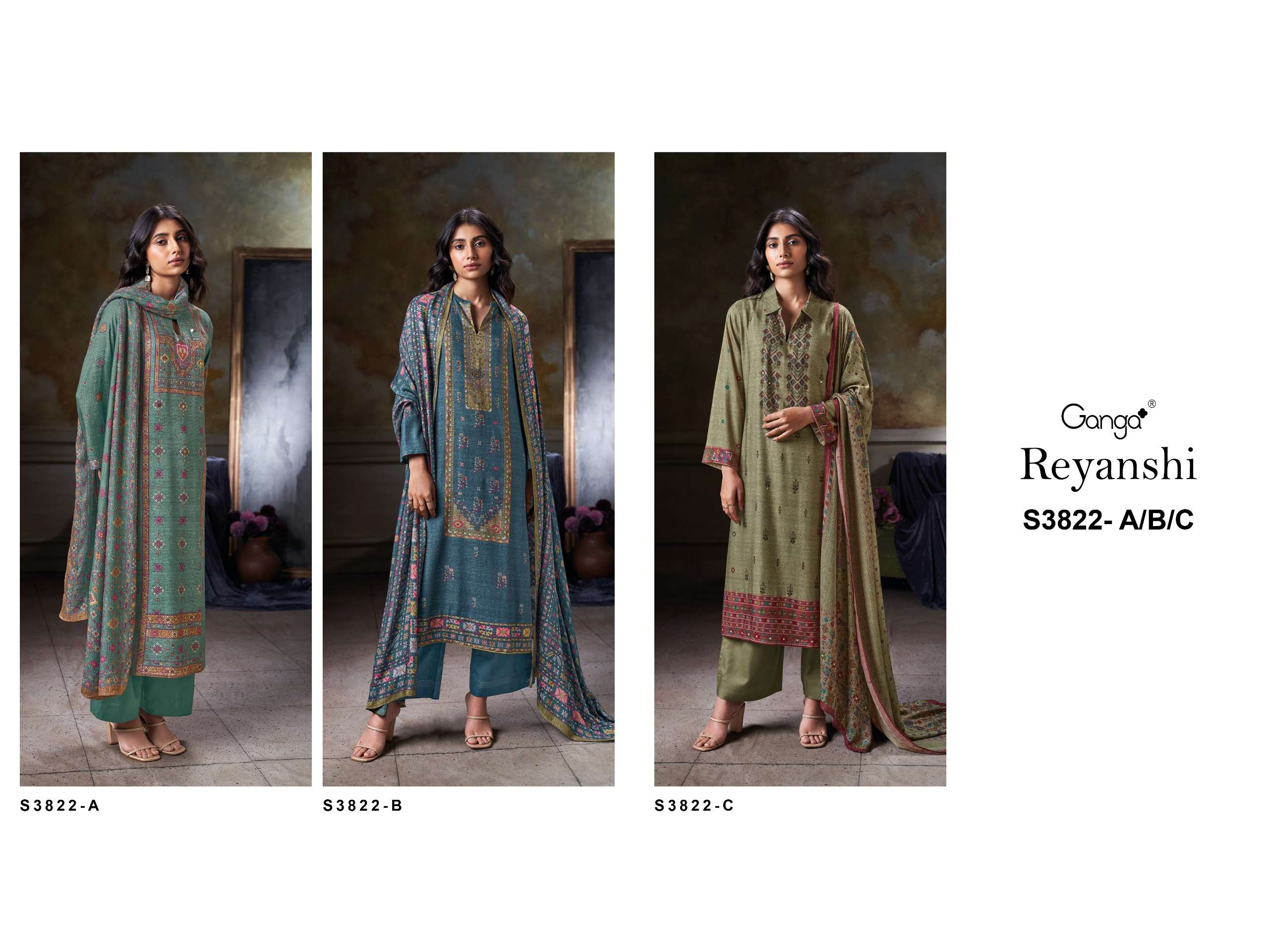 GANGA REYANSHI 3822 PURE WOOL PASHMINA FASHION SUIT COLLECTION BOUTIQUE PRICE SURAT