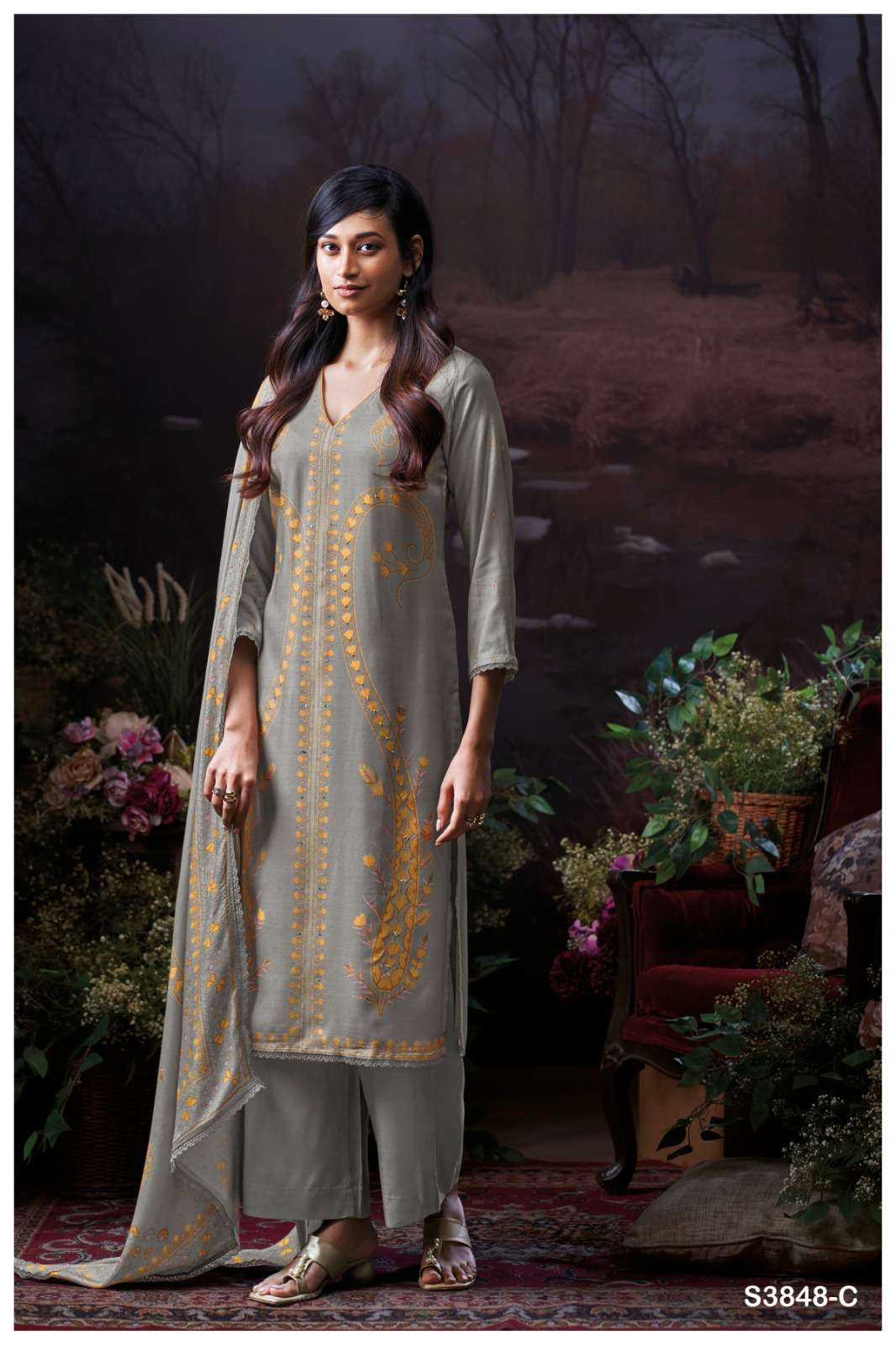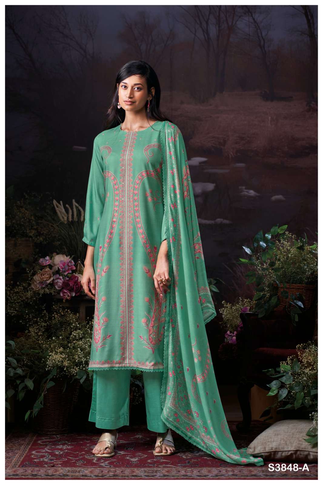 GANGA RIMSHA 3848 PURE PASHMINA PRINTED EMBROIDERY PRETTY SUIT TO FUNCTION CATALOG