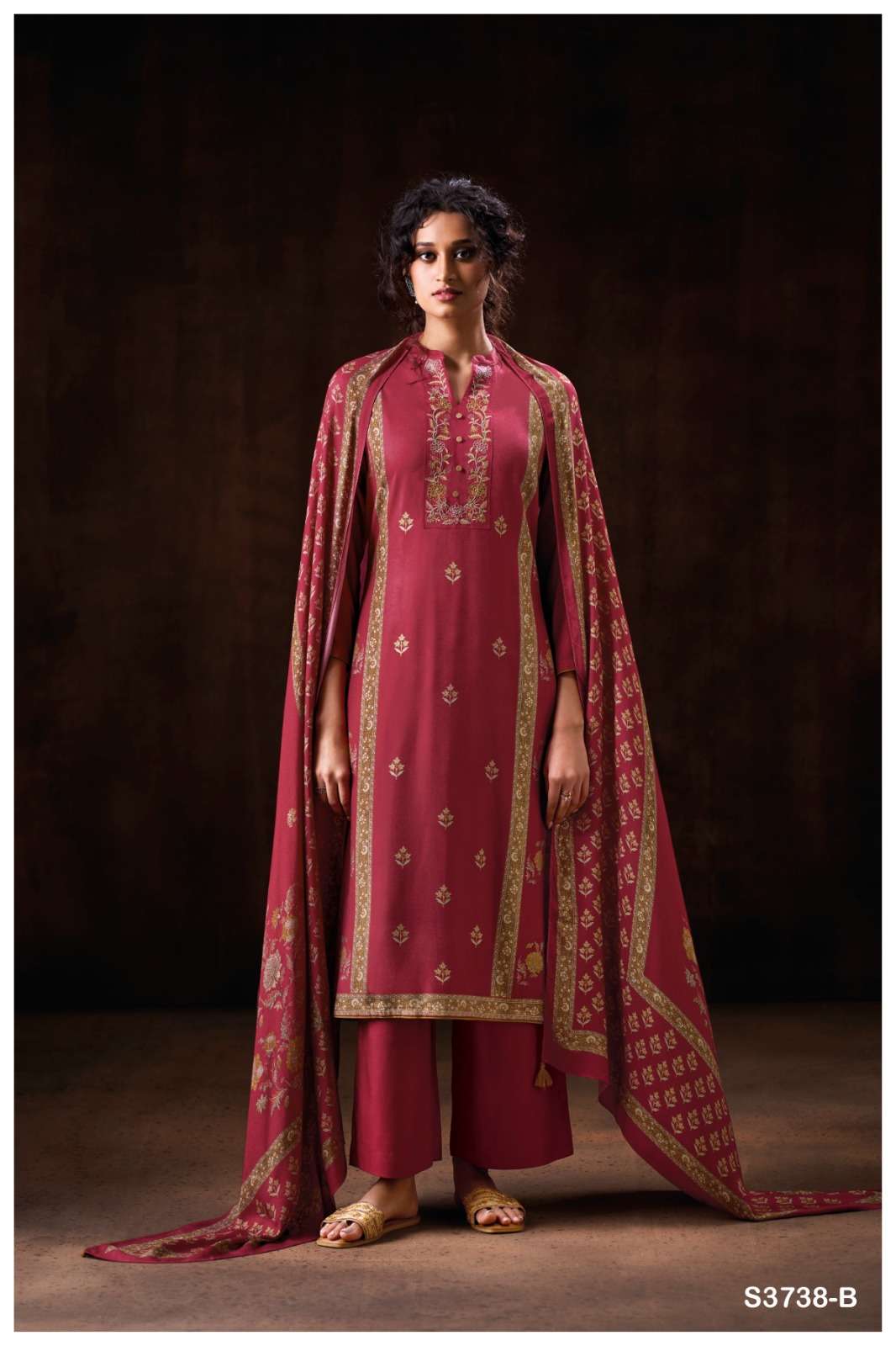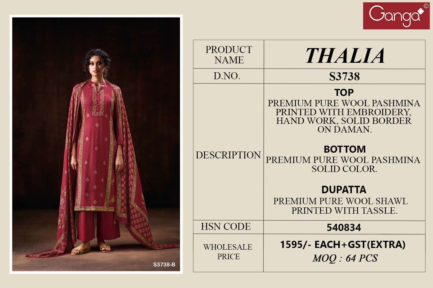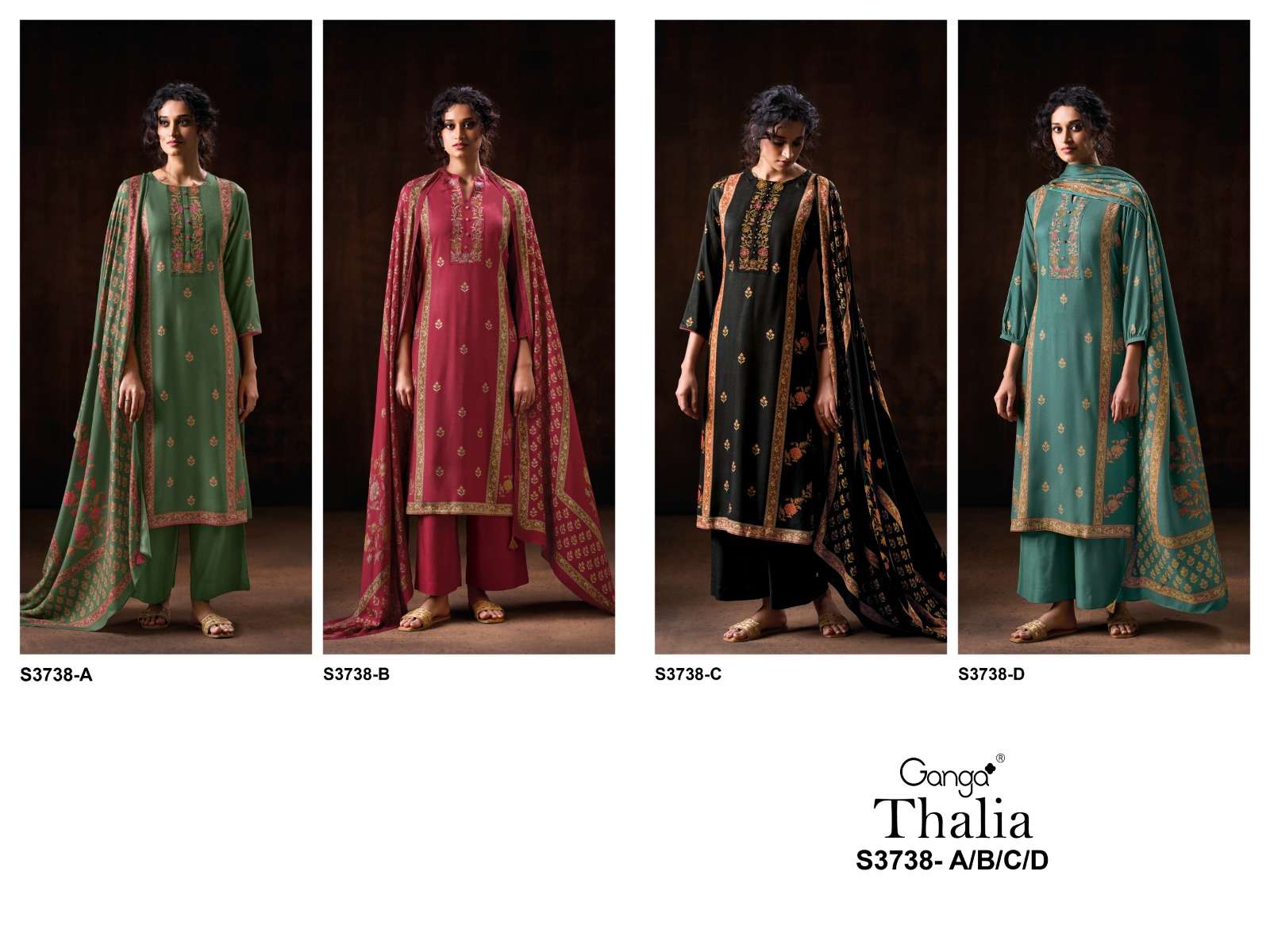 Buy Online GANGA THALIA 3738 WOOL PASHMINA HANDWORK DESIGNER SUIT WINTER SPECIAL INDIA SHOP 4 Pcs of Full Catalogue at Wholesale Price. Looking for GANGA THALIA 3738 WOOL PASHMINA HANDWORK DESIGNER SUIT WINTER SPECIAL INDIA SHOP Full Catalouge at Best Price? Buy Now GANGA THALIA 3738 WOOL PASHMINA HANDWORK DESIGNER SUIT WINTER SPECIAL INDIA SHOP at Wholesale Rate of Rs 6380 with Total 4 Pcs from authroized dealer and supplier of Ganga Fashions Brand. Cost of Each piece is just only Rs 1595 which is very low and affordable price to resale the product in your retail store Ethnic Export is Surat based Wholesale Supplier & Dealer of Ganga Fashions Brand. Click on Brand name to Know more about Ganga Fashions Brand's products.Call or Whatsapp on +91-9825759366 for booking or enquiry
