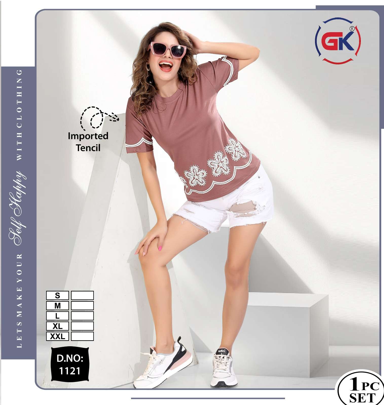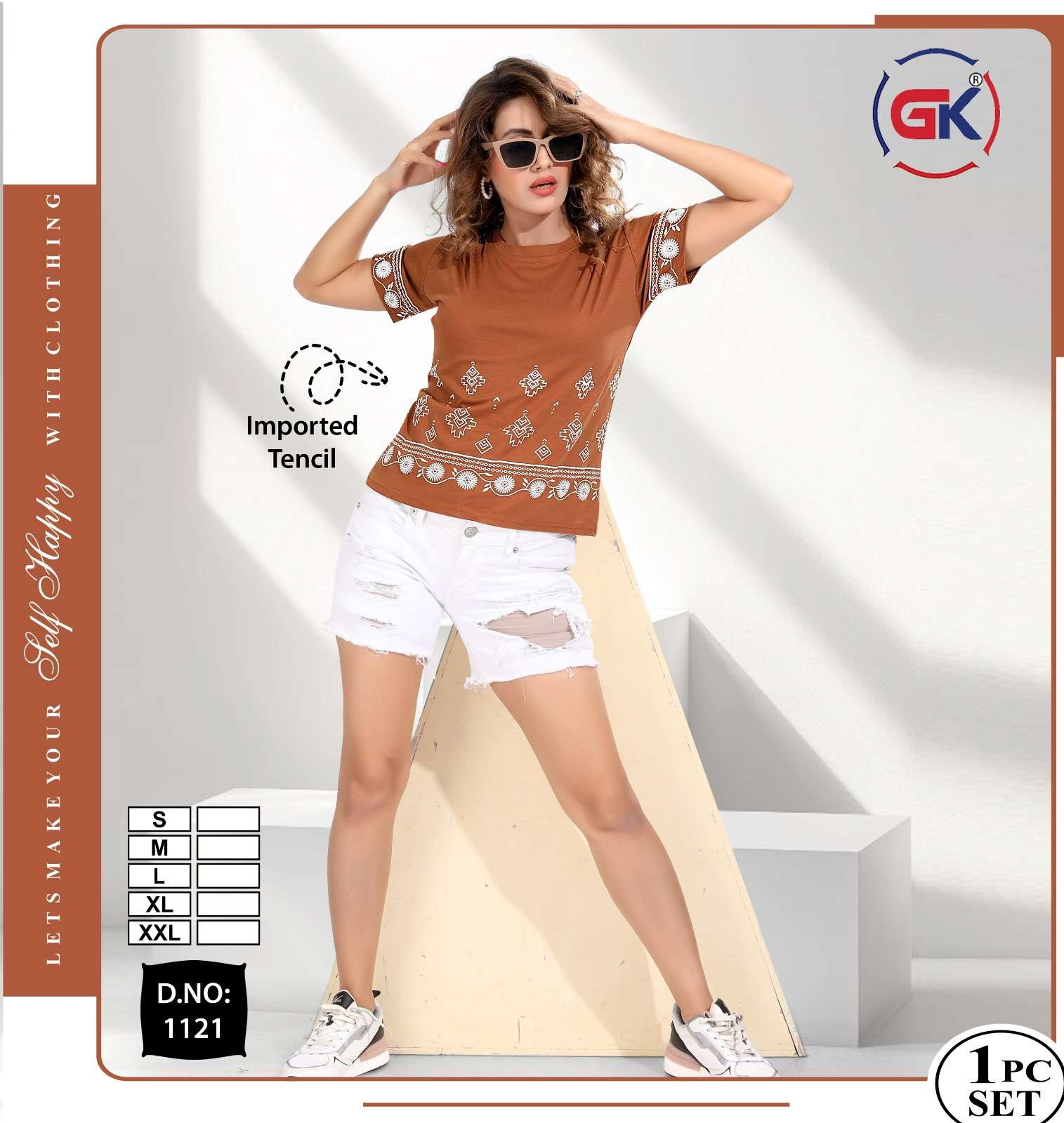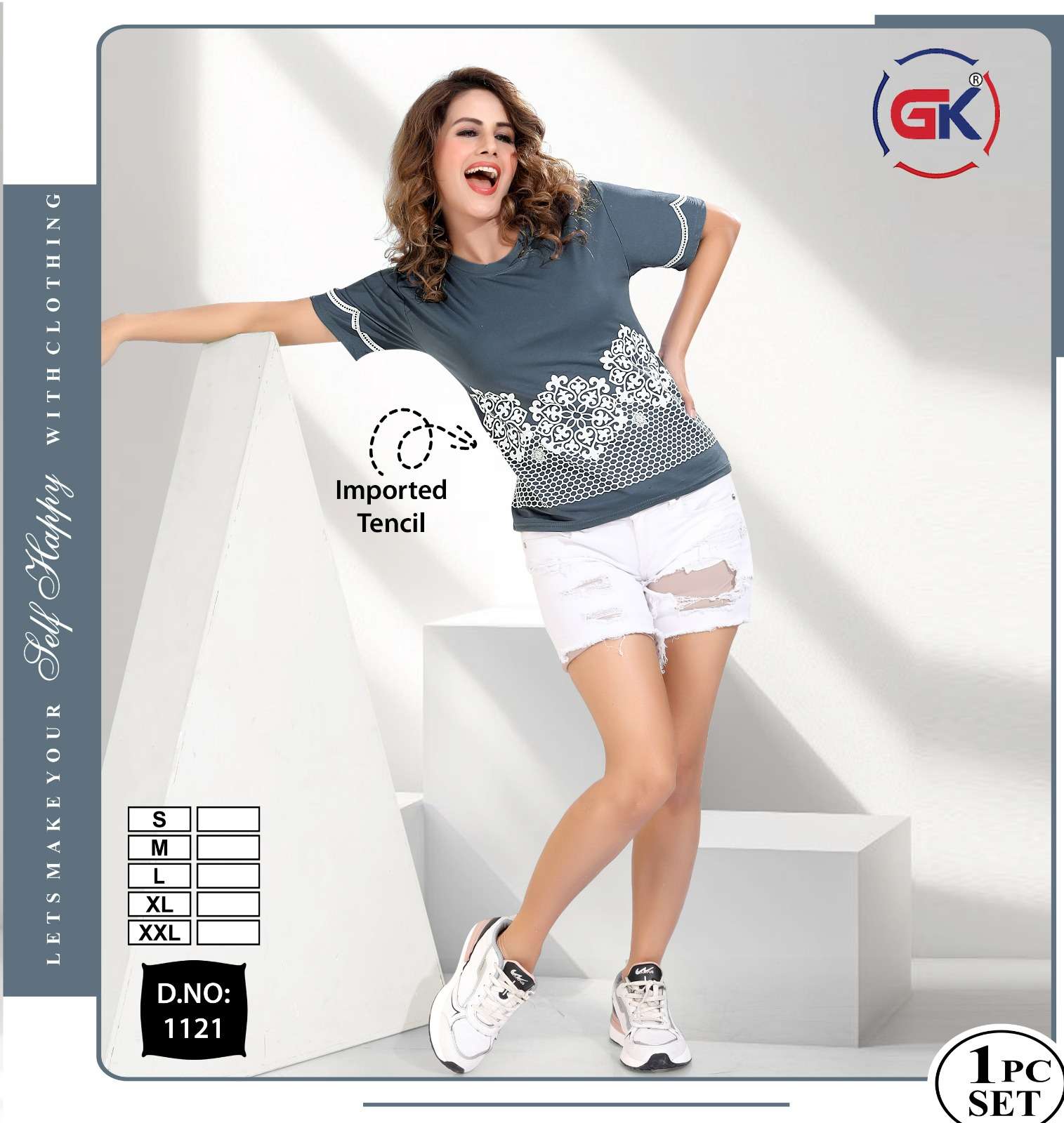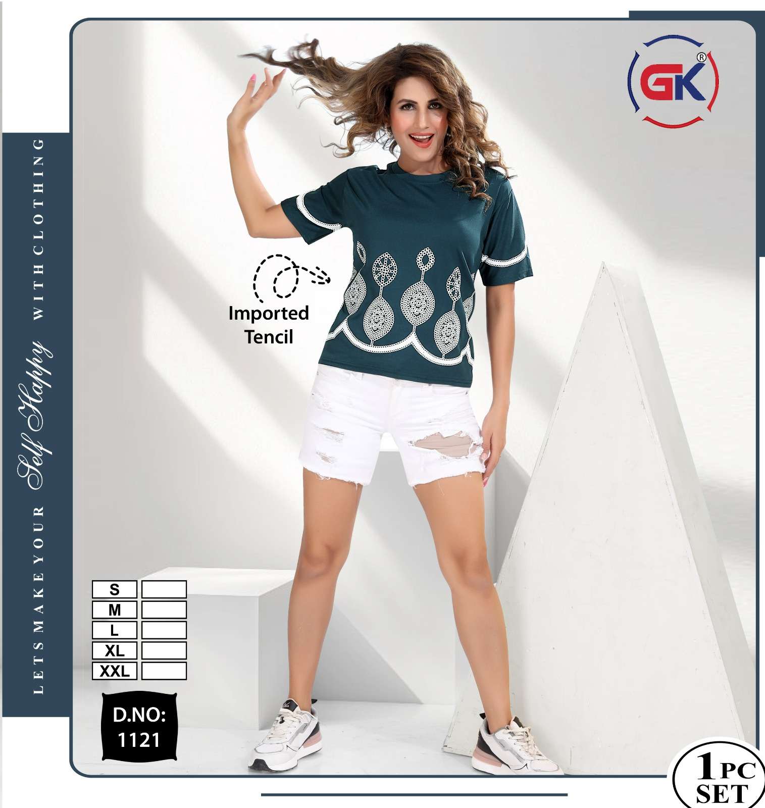 Buy Online GK 1121 SUMMER FASHION DAILY WEAR WOMEN T SHIRT COLLECTION SUPPLIER 8 Pcs of Full Catalogue at Wholesale Price. Looking for GK 1121 SUMMER FASHION DAILY WEAR WOMEN T SHIRT COLLECTION SUPPLIER Full Catalouge at Best Price? Buy Now GK 1121 SUMMER FASHION DAILY WEAR WOMEN T SHIRT COLLECTION SUPPLIER at Wholesale Rate of Rs 2600 with Total 8 Pcs from authroized dealer and supplier of FF Brand. Cost of Each piece is just only Rs 325 which is very low and affordable price to resale the product in your retail store Ethnic Export is Surat based Wholesale Supplier & Dealer of FF Brand. Click on Brand name to Know more about FF Brand's products.Call or Whatsapp on +91-9825759366 for booking or enquiry