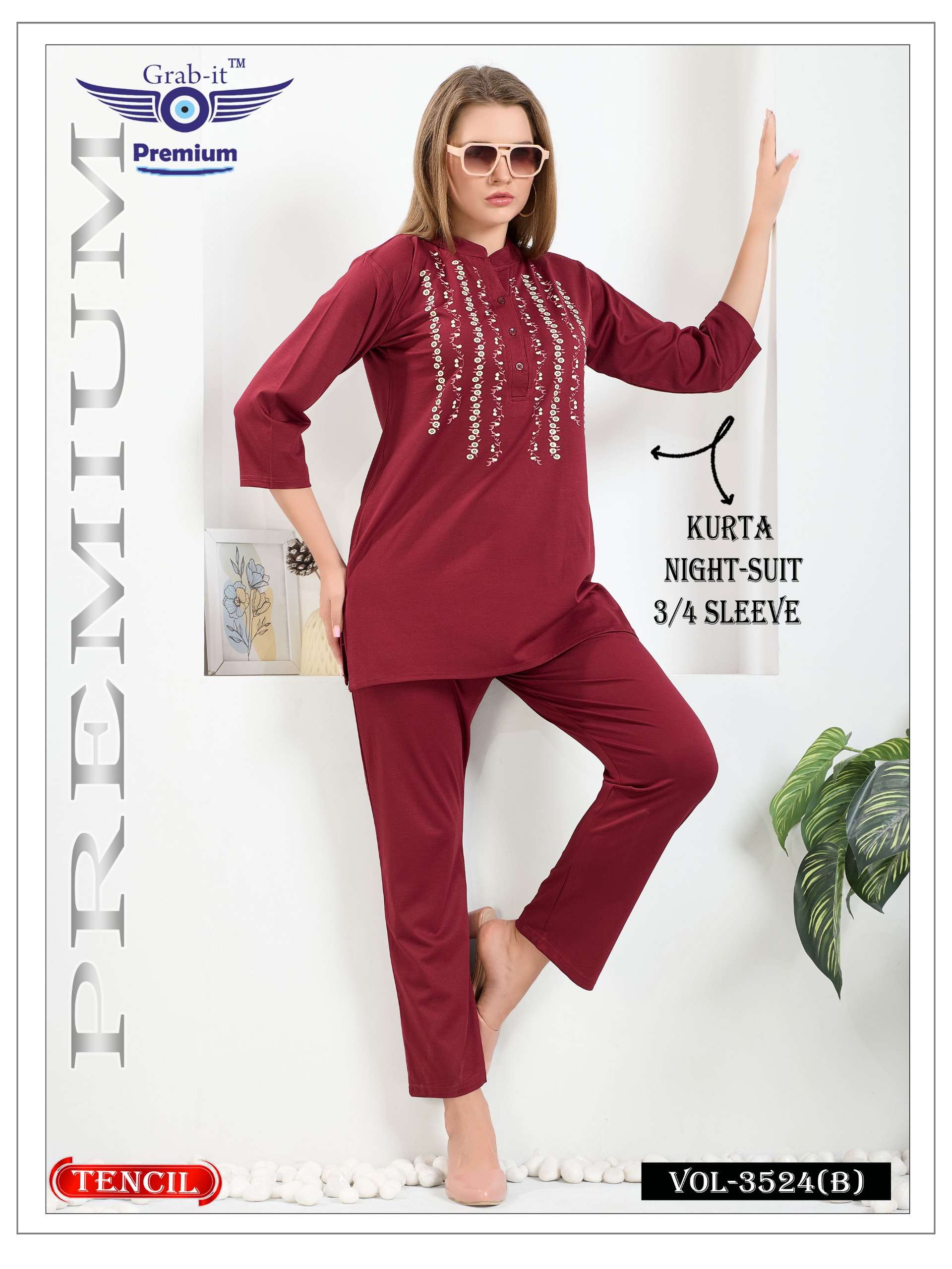 | Title | GRAB IT PREMIUM VOL 3524 FULL SLEEVE TENCIL FABRIC GIRL NIGHT SUIT DEALER PRICE SURAT |