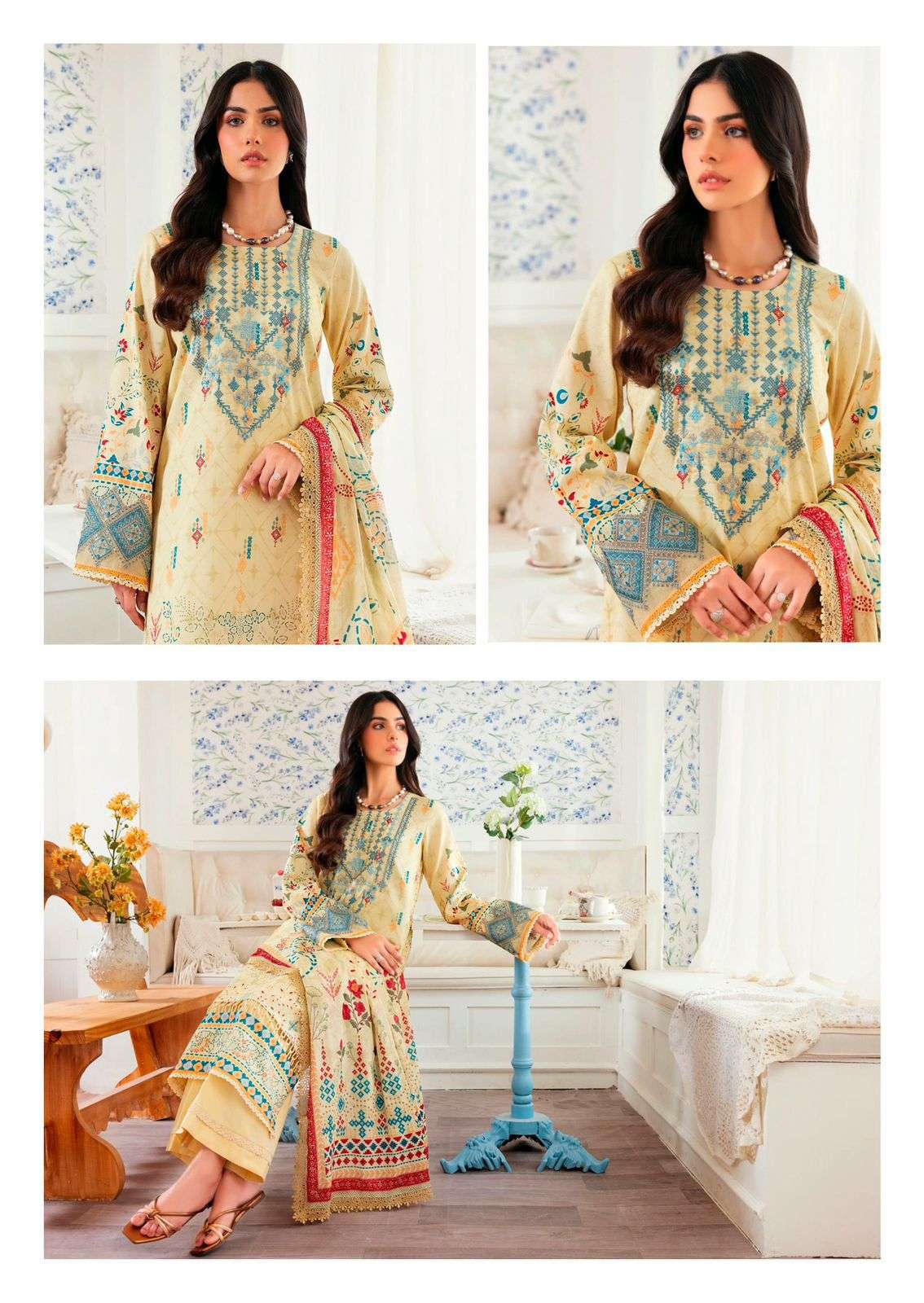 Buy Online GULL AAHMED TEHREEM VOL 4 INDIA MOST BEAUTIFUL LAWN COTTON PAKISTANI SUIT WEAR SURAT MARKET 6 Pcs of Full Catalogue at Wholesale Price. Looking for GULL AAHMED TEHREEM VOL 4 INDIA MOST BEAUTIFUL LAWN COTTON PAKISTANI SUIT WEAR SURAT MARKET Full Catalouge at Best Price? Buy Now GULL AAHMED TEHREEM VOL 4 INDIA MOST BEAUTIFUL LAWN COTTON PAKISTANI SUIT WEAR SURAT MARKET at Wholesale Rate of Rs 2250 with Total 6 Pcs from authroized dealer and supplier of Gull Ahmed Suits Brand. Cost of Each piece is just only Rs 375 which is very low and affordable price to resale the product in your retail store Ethnic Export is Surat based Wholesale Supplier & Dealer of Gull Ahmed Suits Brand. Click on Brand name to Know more about Gull Ahmed Suits Brand's products.Call or Whatsapp on +91-9825759366 for booking or enquiry