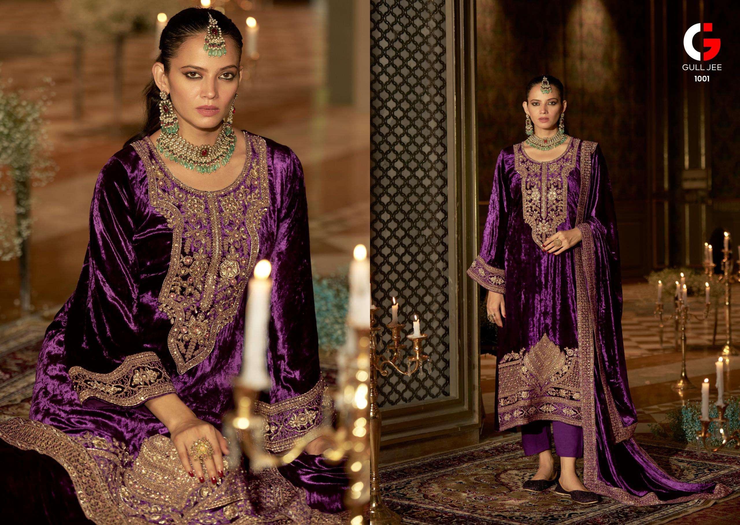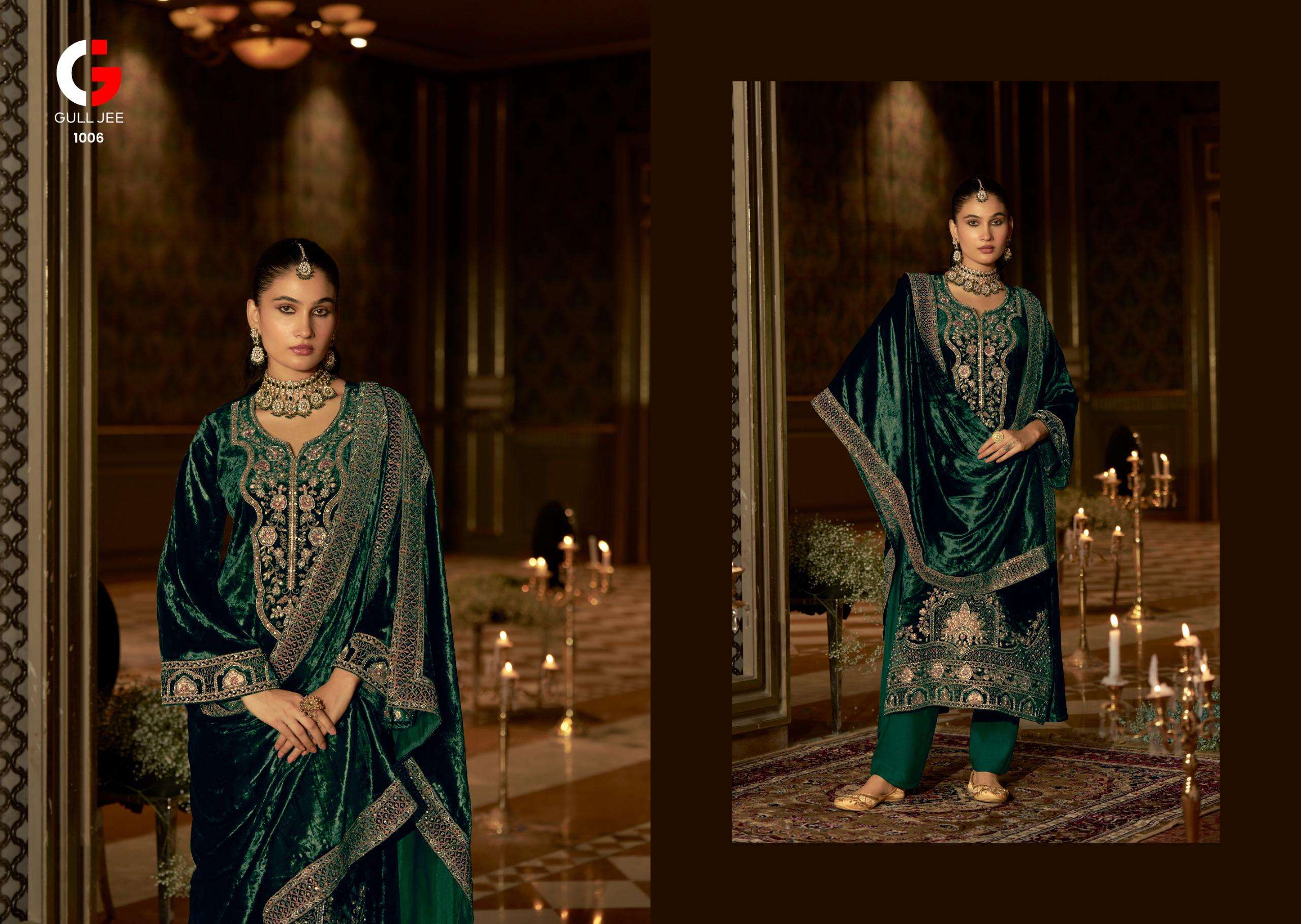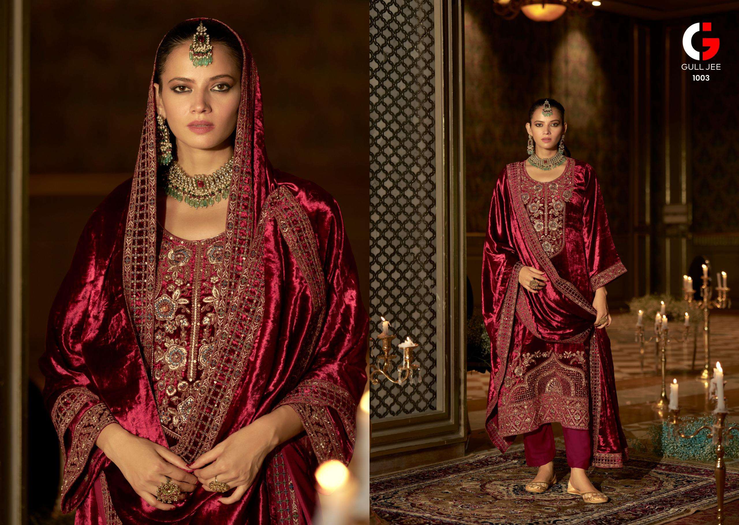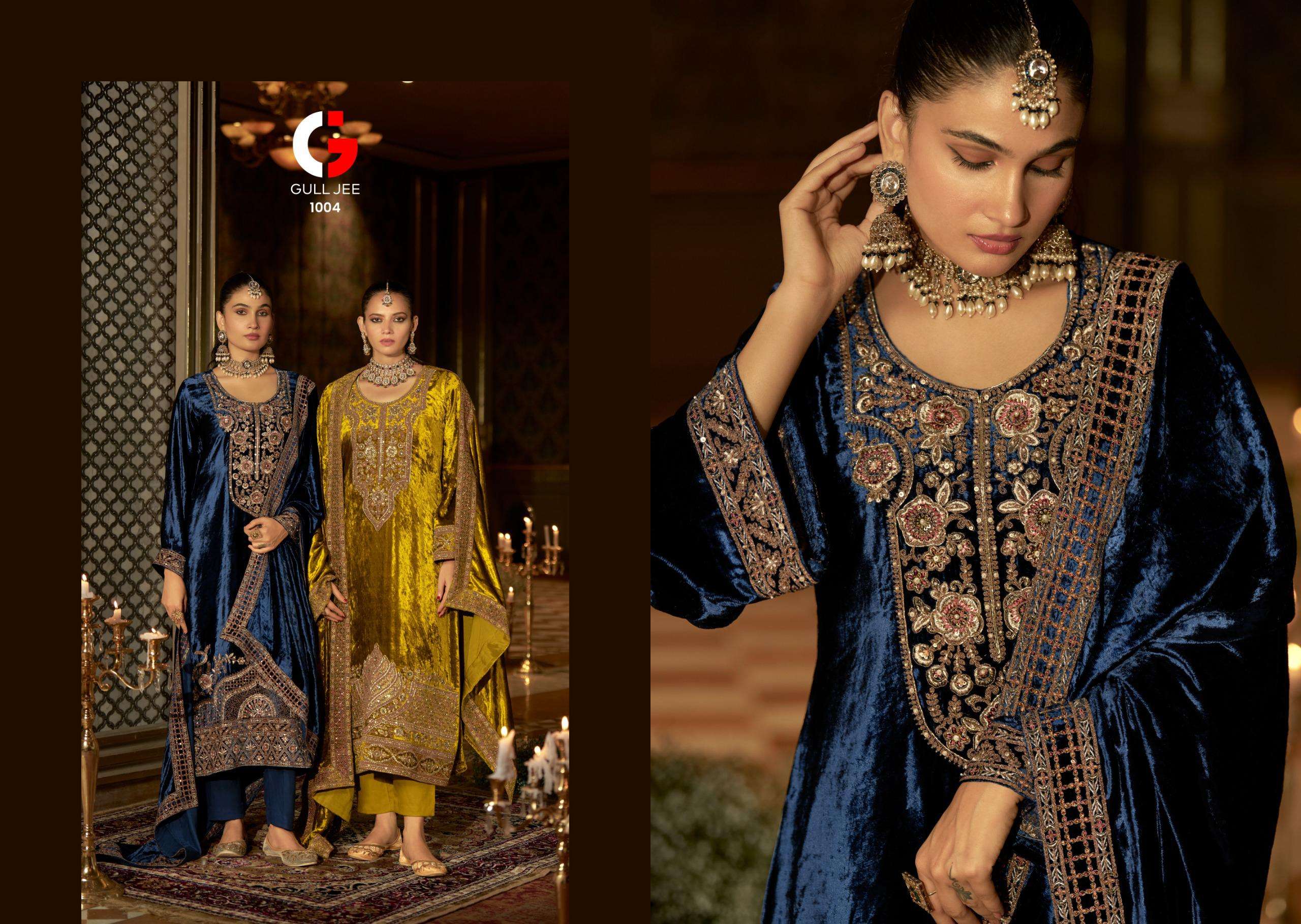 Buy Online GULL JEE QURB RICH WEDDING VELVET OUTFIT FASHION VELVET HEAVY WORK SALWAR SUIT 6 Pcs of Full Catalogue at Wholesale Price. Looking for GULL JEE QURB RICH WEDDING VELVET OUTFIT FASHION VELVET HEAVY WORK SALWAR SUIT Full Catalouge at Best Price? Buy Now GULL JEE QURB RICH WEDDING VELVET OUTFIT FASHION VELVET HEAVY WORK SALWAR SUIT at Wholesale Rate of Rs 16194 with Total 6 Pcs from authroized dealer and supplier of GULL JEE Brand. Cost of Each piece is just only Rs 2699 which is very low and affordable price to resale the product in your retail store Ethnic Export is Surat based Wholesale Supplier & Dealer of GULL JEE Brand. Click on Brand name to Know more about GULL JEE Brand's products.Call or Whatsapp on +91-9825759366 for booking or enquiry