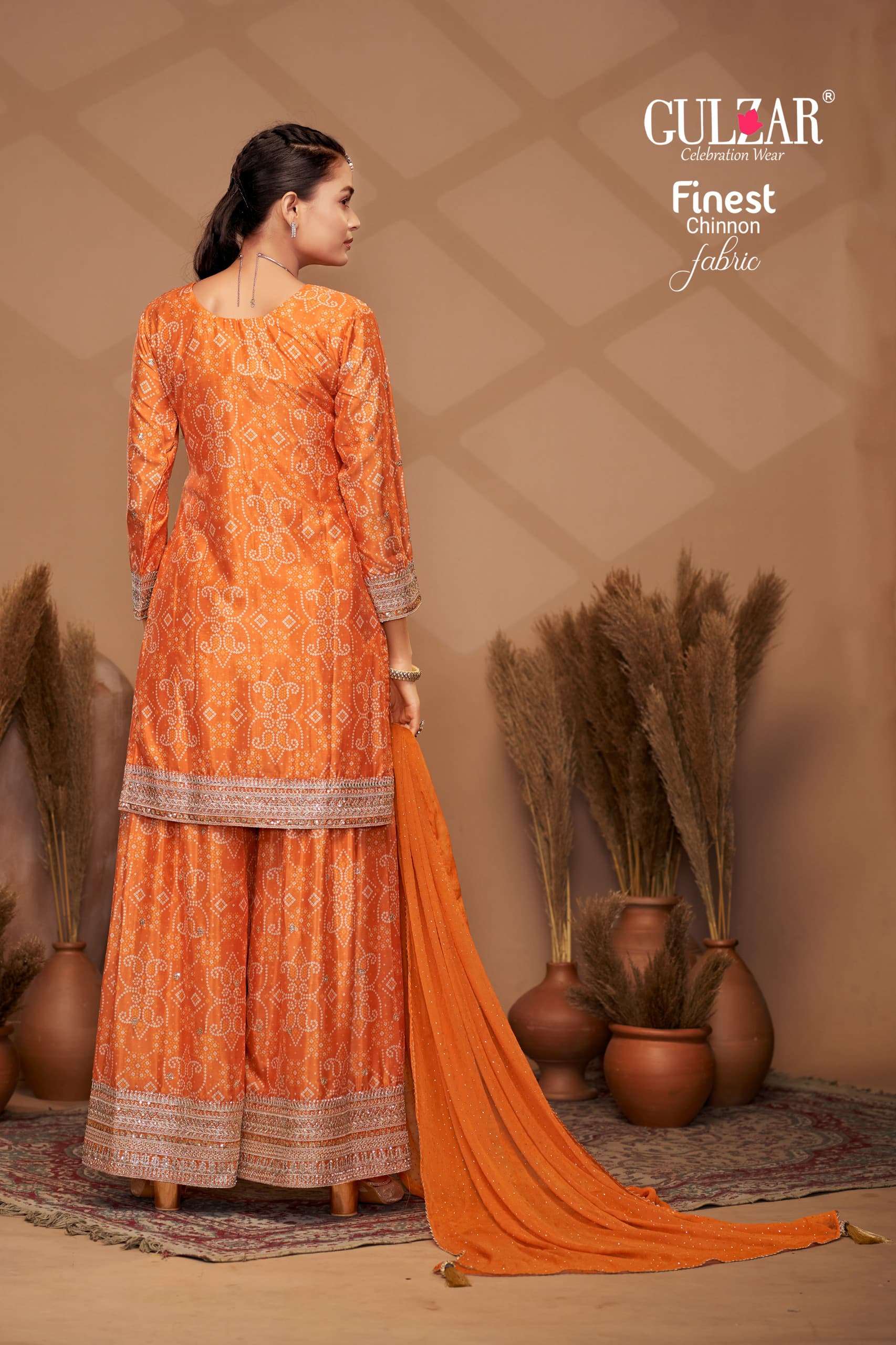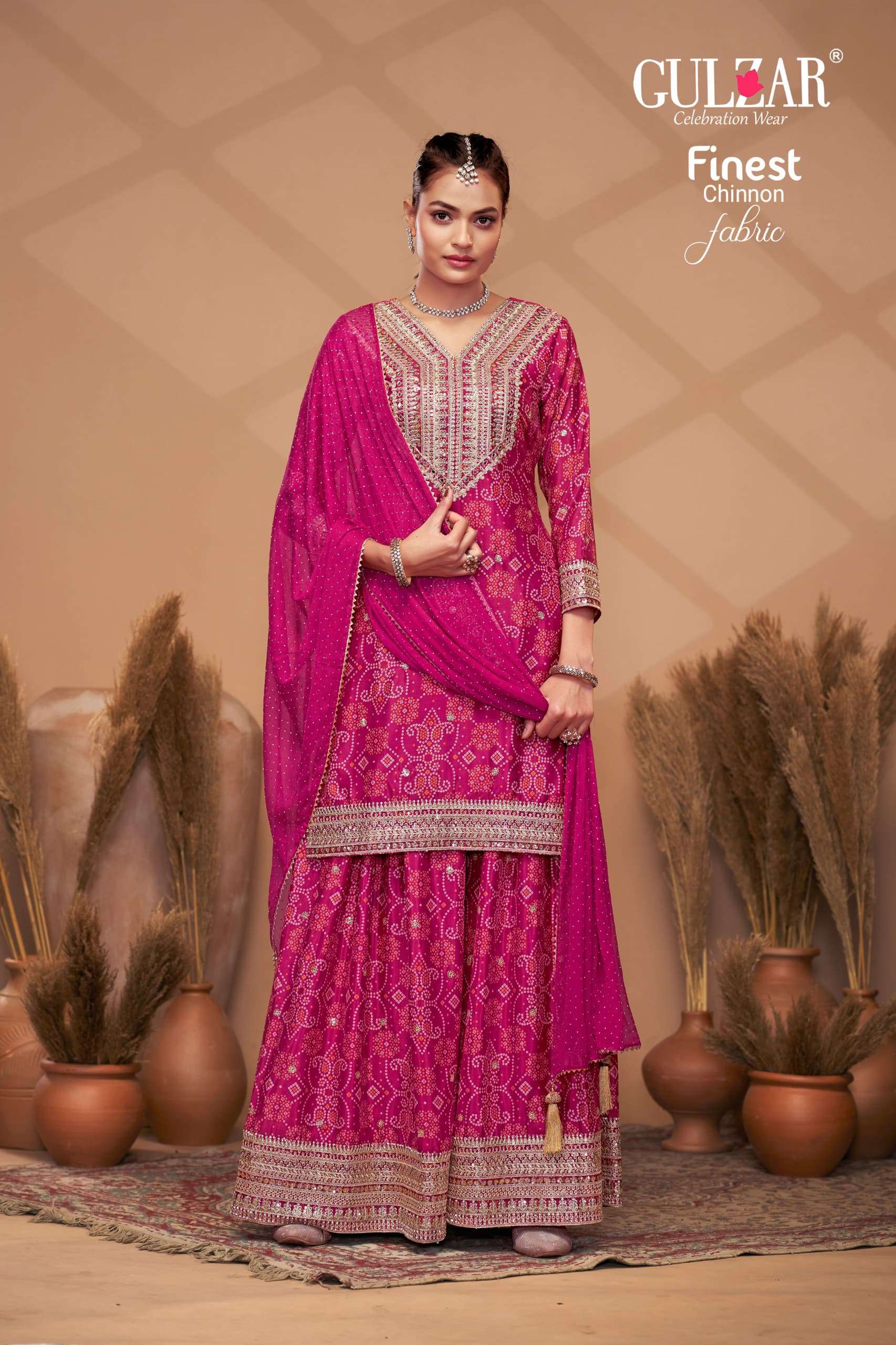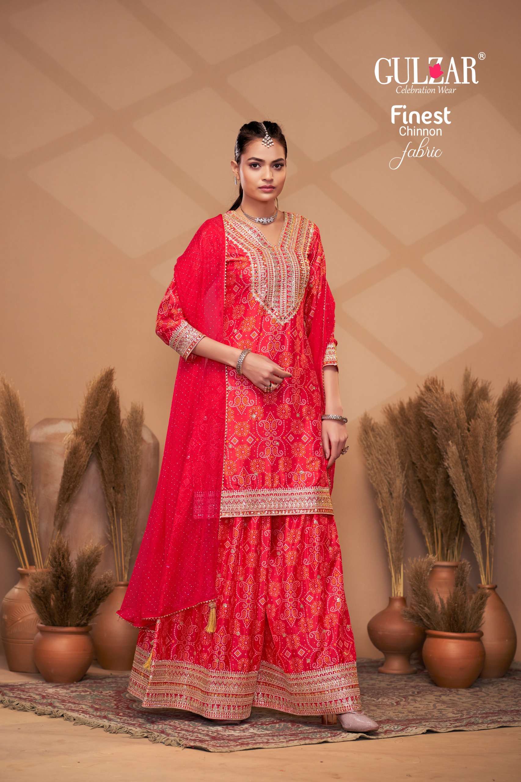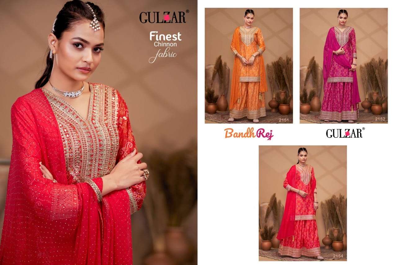 Buy Online Gulzar Bandhrej Chinon SIlk Bandhej Design Function Special Readymade Suits best Collection 3 Pcs of Full Catalogue at Wholesale Price. Looking for Gulzar Bandhrej Chinon SIlk Bandhej Design Function Special Readymade Suits best Collection Full Catalouge at Best Price? Buy Now Gulzar Bandhrej Chinon SIlk Bandhej Design Function Special Readymade Suits best Collection at Wholesale Rate of Rs 7185 with Total 3 Pcs from authroized dealer and supplier of GULZAR Brand. Cost of Each piece is just only Rs 2395 which is very low and affordable price to resale the product in your retail store Ethnic Export is Surat based Wholesale Supplier & Dealer of GULZAR Brand. Click on Brand name to Know more about GULZAR Brand's products.Call or Whatsapp on +91-9825759366 for booking or enquiry