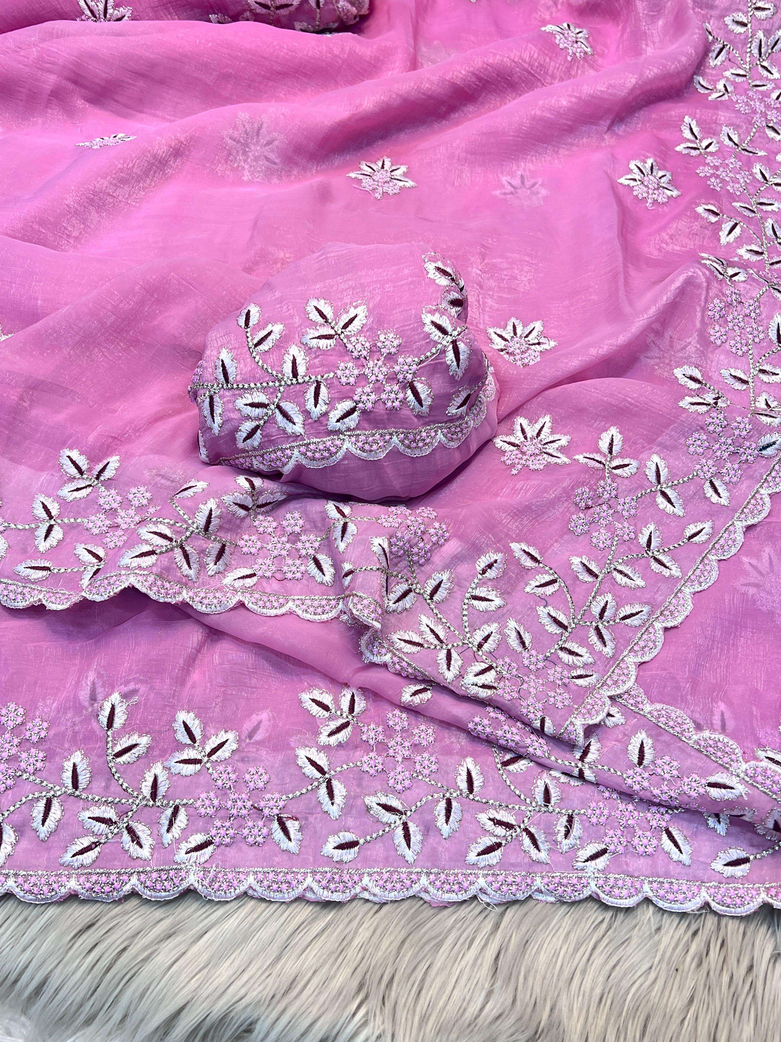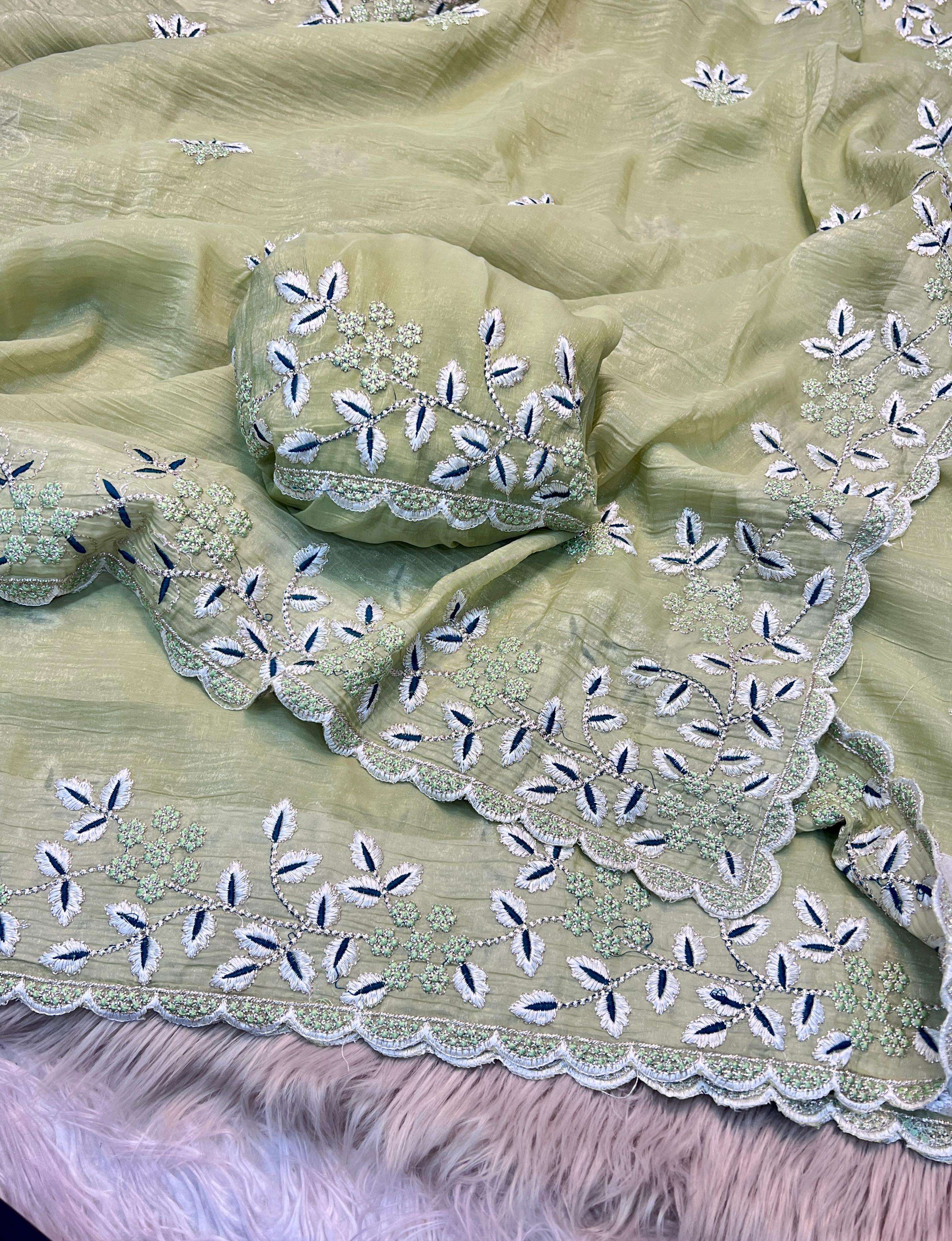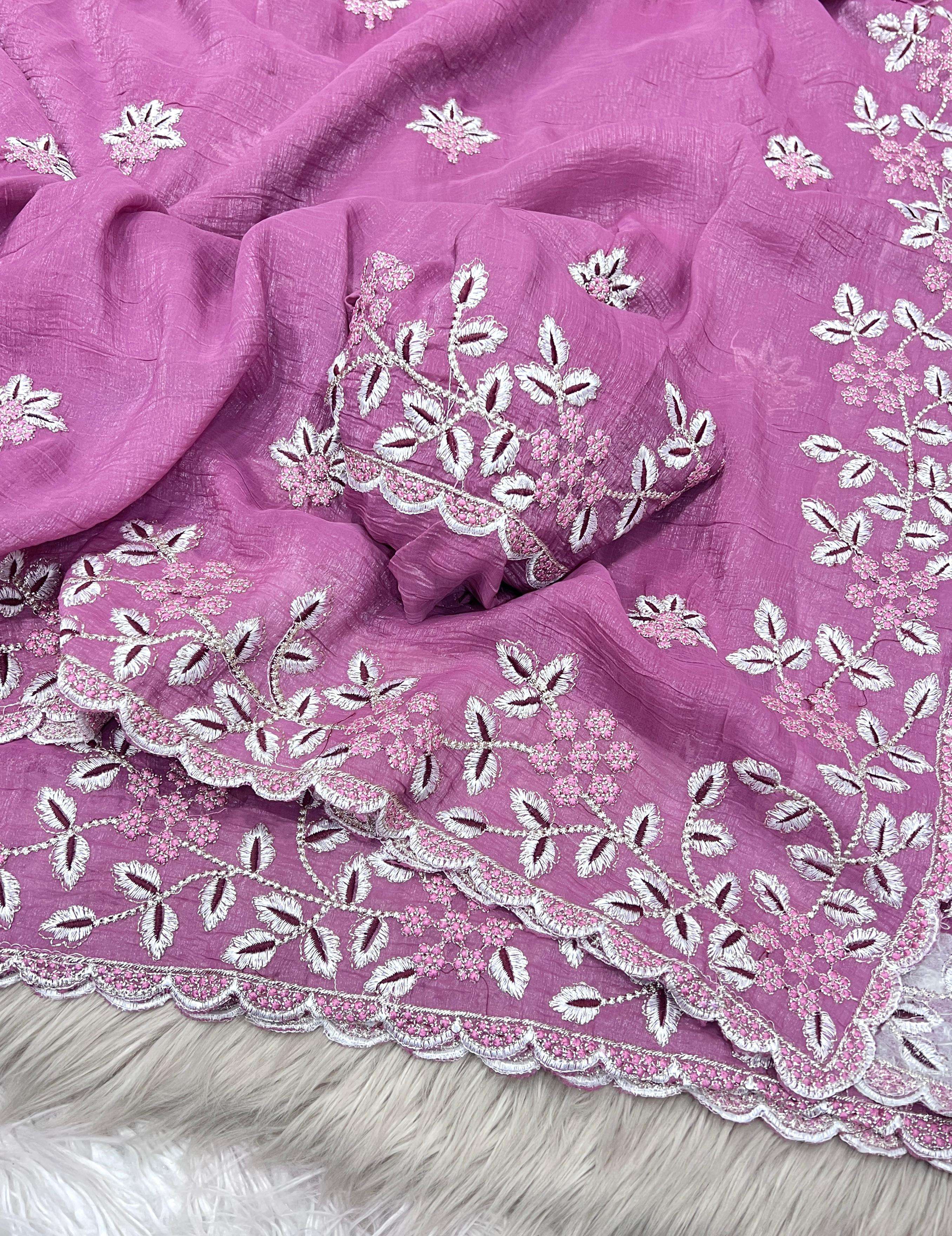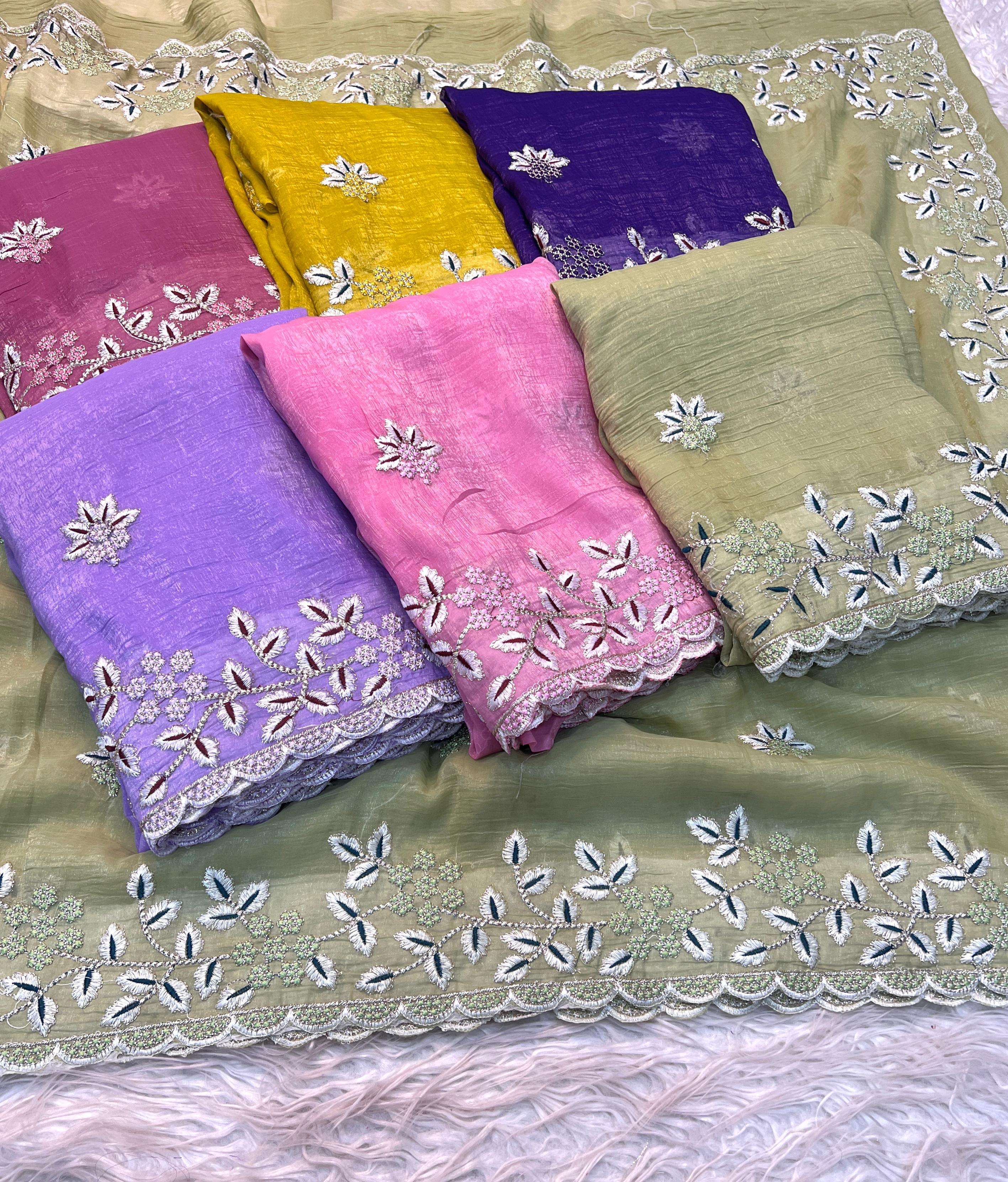 Heavy embroidery work Crunchy fabric party look Fancy saree best collection
