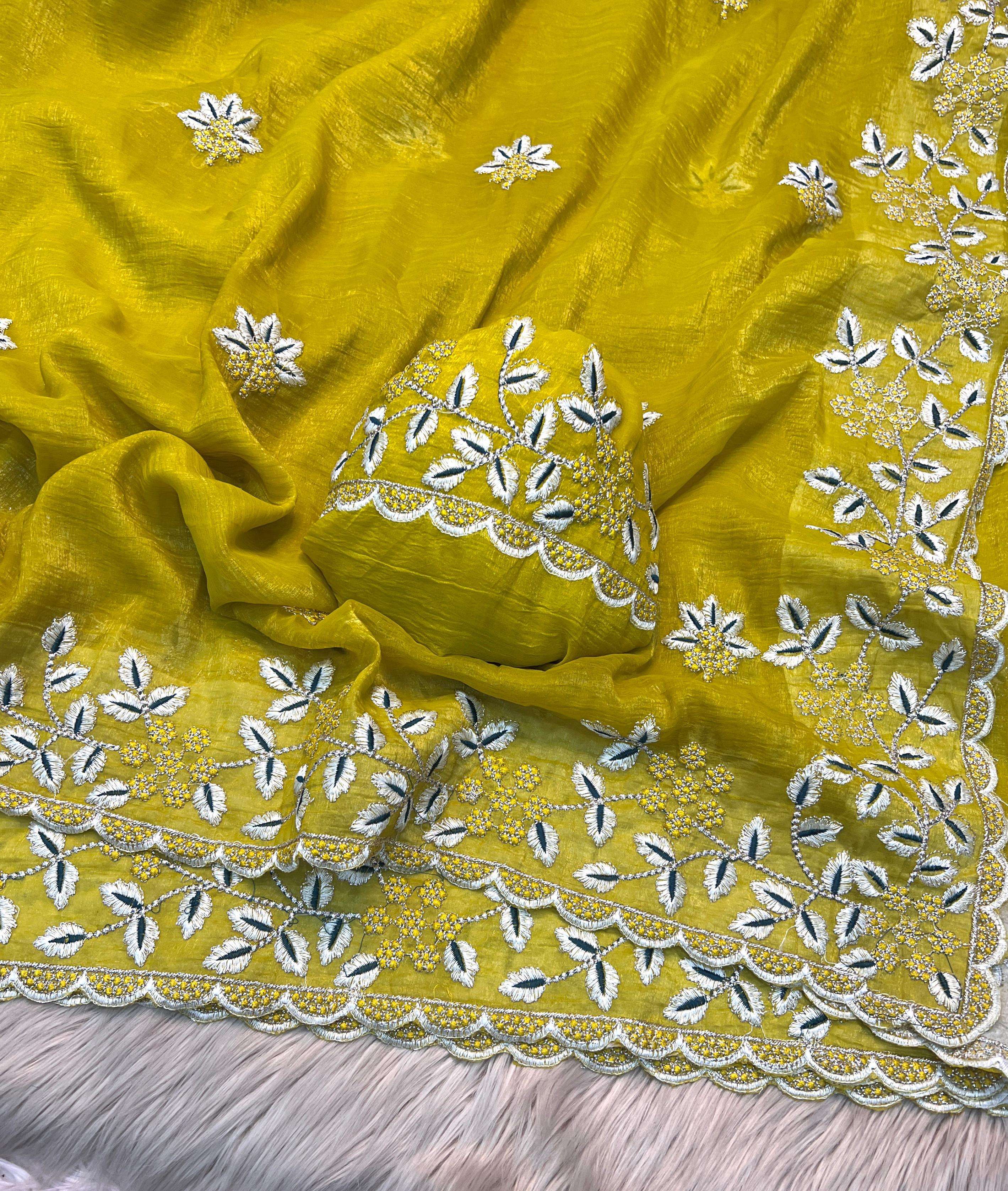 Title | Heavy embroidery work Crunchy fabric party look Fancy saree best collection |