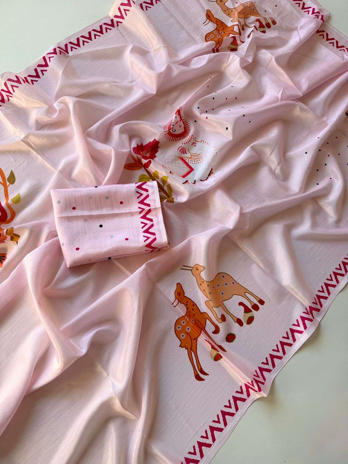 HIRAN PRINTED CHINON FABRIC PARTY WEAR LOOK SAREE BEST WHOLESALE RATE N