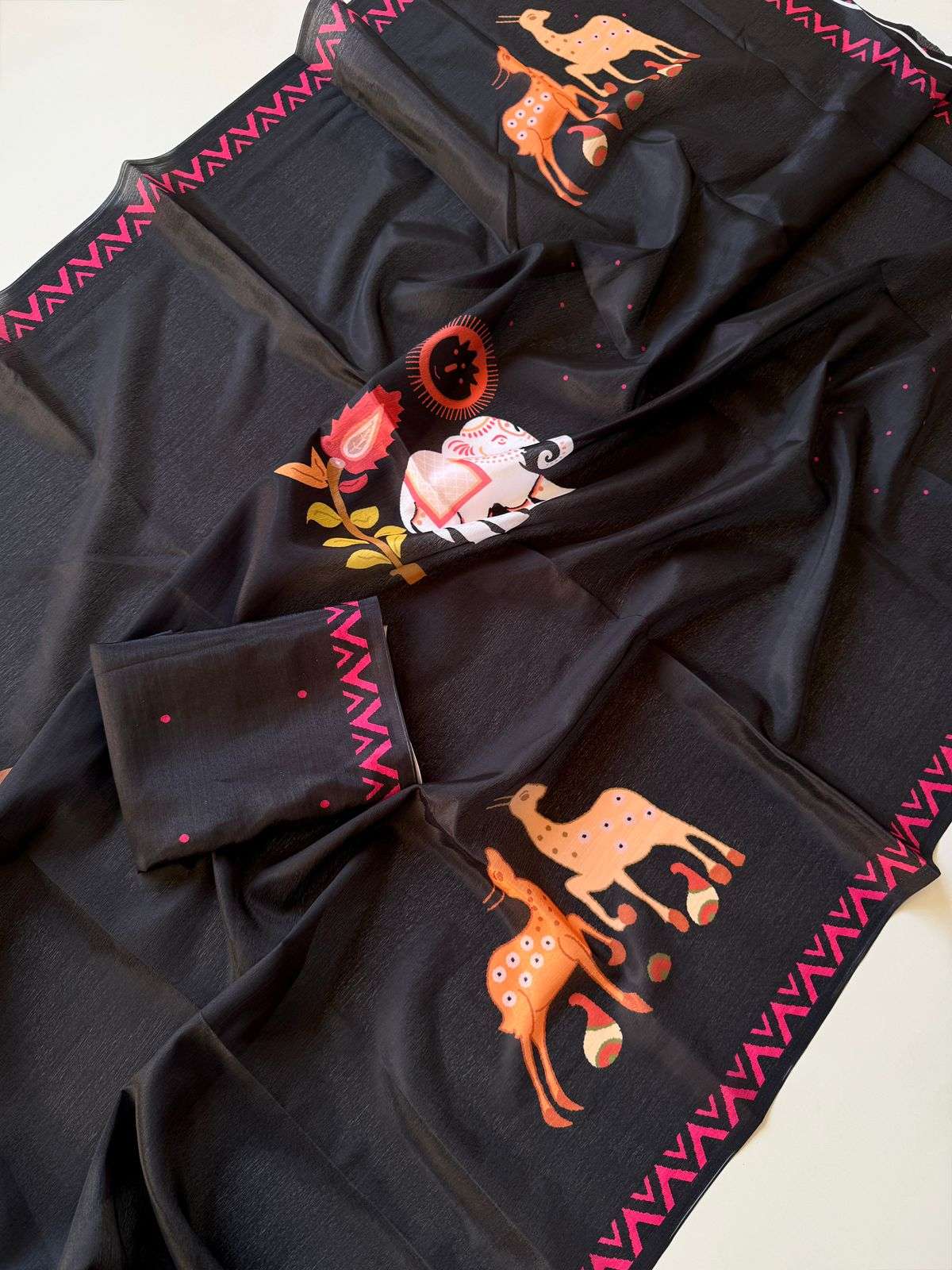 | Title | Hiran printed Chinon fabric party wear look saree Best wholesale rate n |