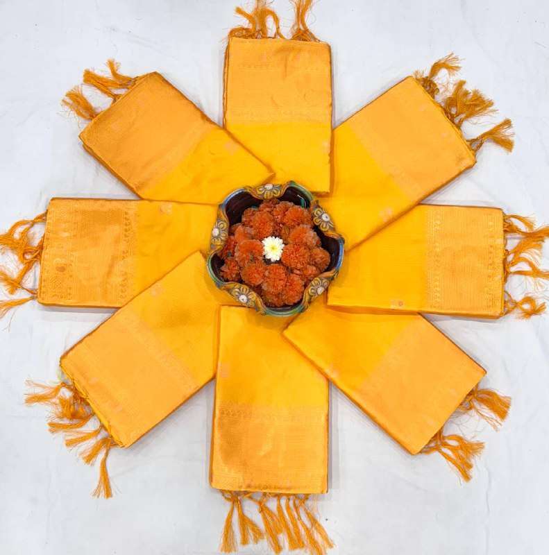 | Title | INDIAN WEDDING HALDI FUNCTION YELLOW CLOTH JACQUARD PRINT YELLOW SAREE KPR 5086 |