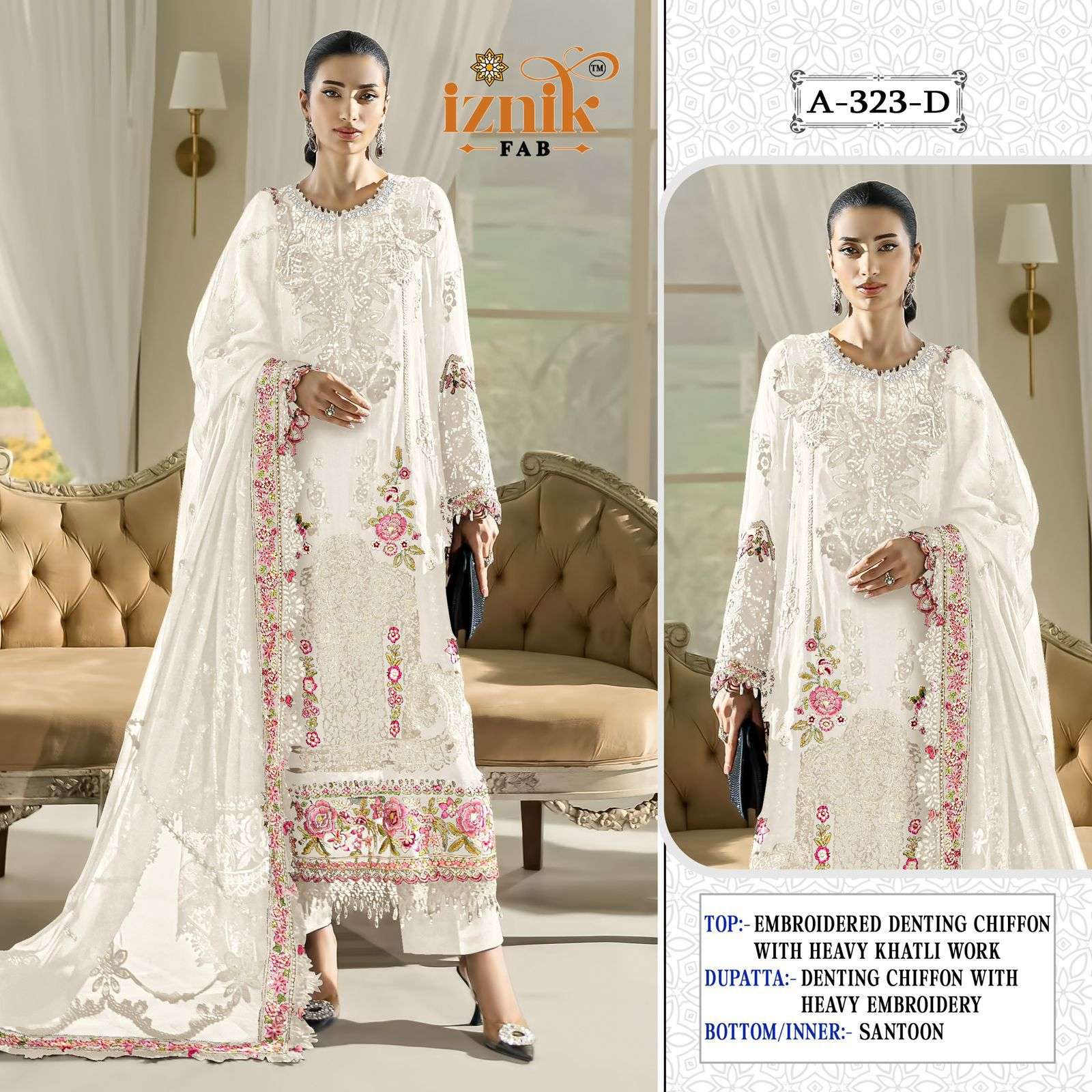 Buy Online IZNIK FAB 323 WEDDING & FESTIVAL STYLE SIFFON HEAVY WORK PAKISTANI SUIT RESELLER 4 Pcs of Full Catalogue at Wholesale Price. Looking for IZNIK FAB 323 WEDDING & FESTIVAL STYLE SIFFON HEAVY WORK PAKISTANI SUIT RESELLER Full Catalouge at Best Price? Buy Now IZNIK FAB 323 WEDDING & FESTIVAL STYLE SIFFON HEAVY WORK PAKISTANI SUIT RESELLER at Wholesale Rate of Rs 5400 with Total 4 Pcs from authroized dealer and supplier of IZNIK Brand. Cost of Each piece is just only Rs 1350 which is very low and affordable price to resale the product in your retail store Ethnic Export is Surat based Wholesale Supplier & Dealer of IZNIK Brand. Click on Brand name to Know more about IZNIK Brand's products.Call or Whatsapp on +91-9825759366 for booking or enquiry