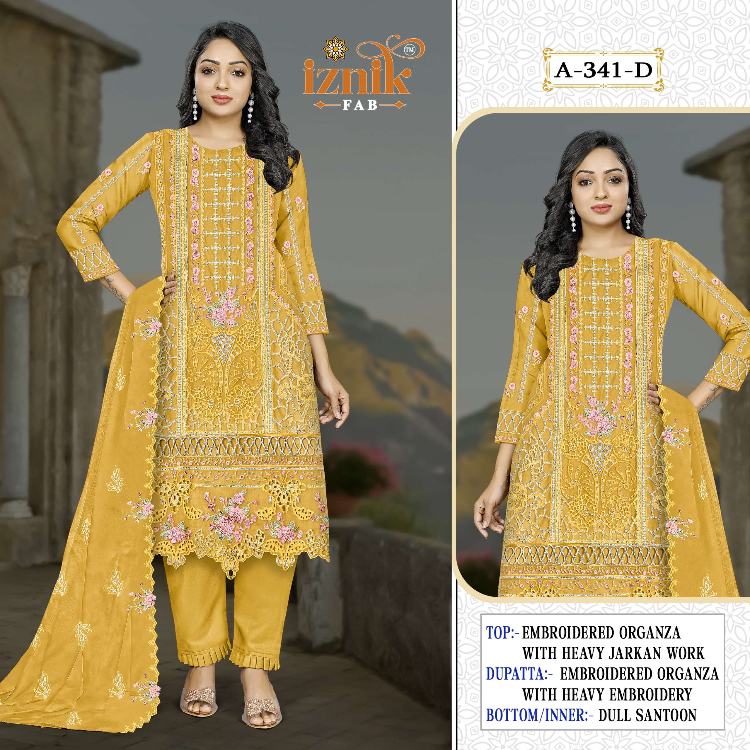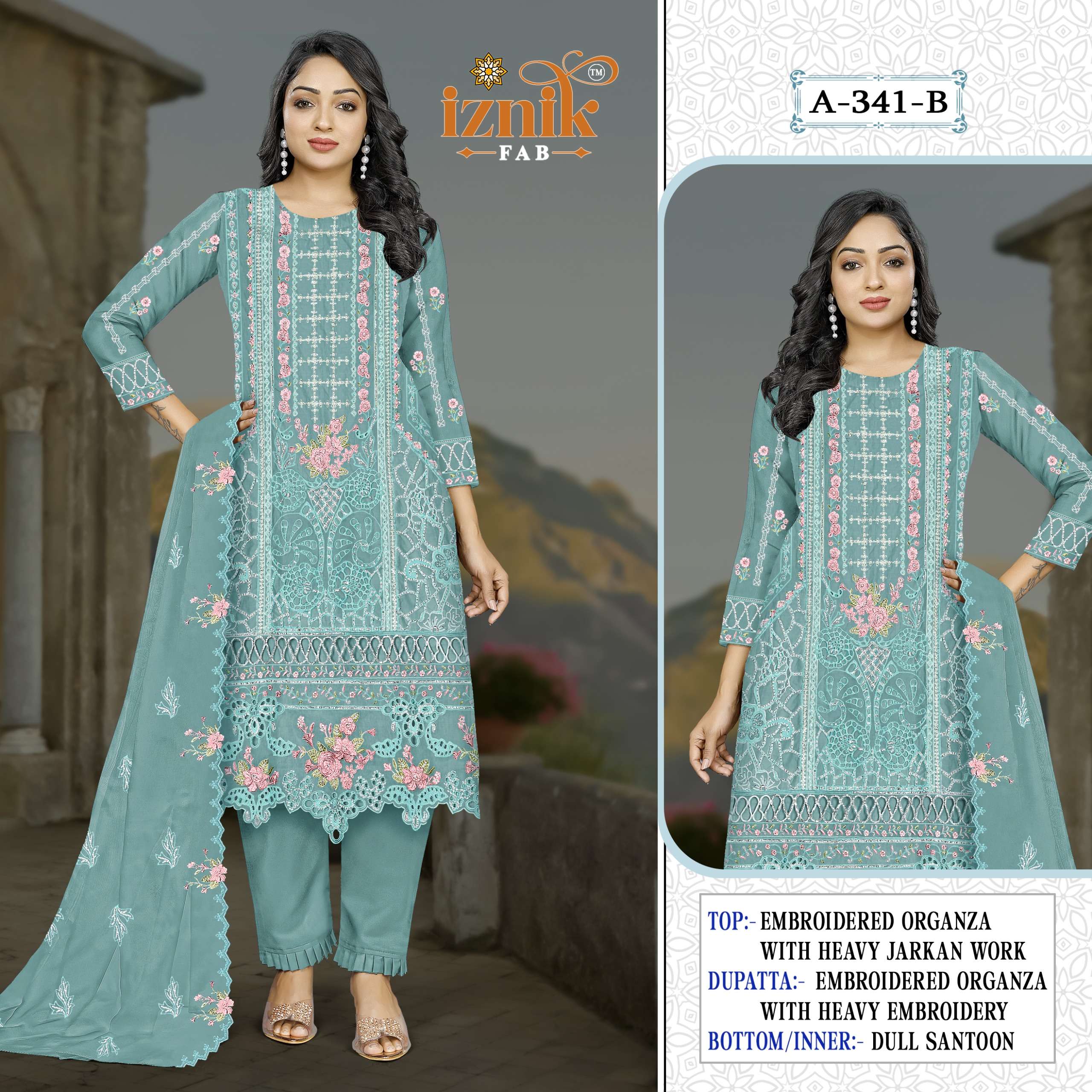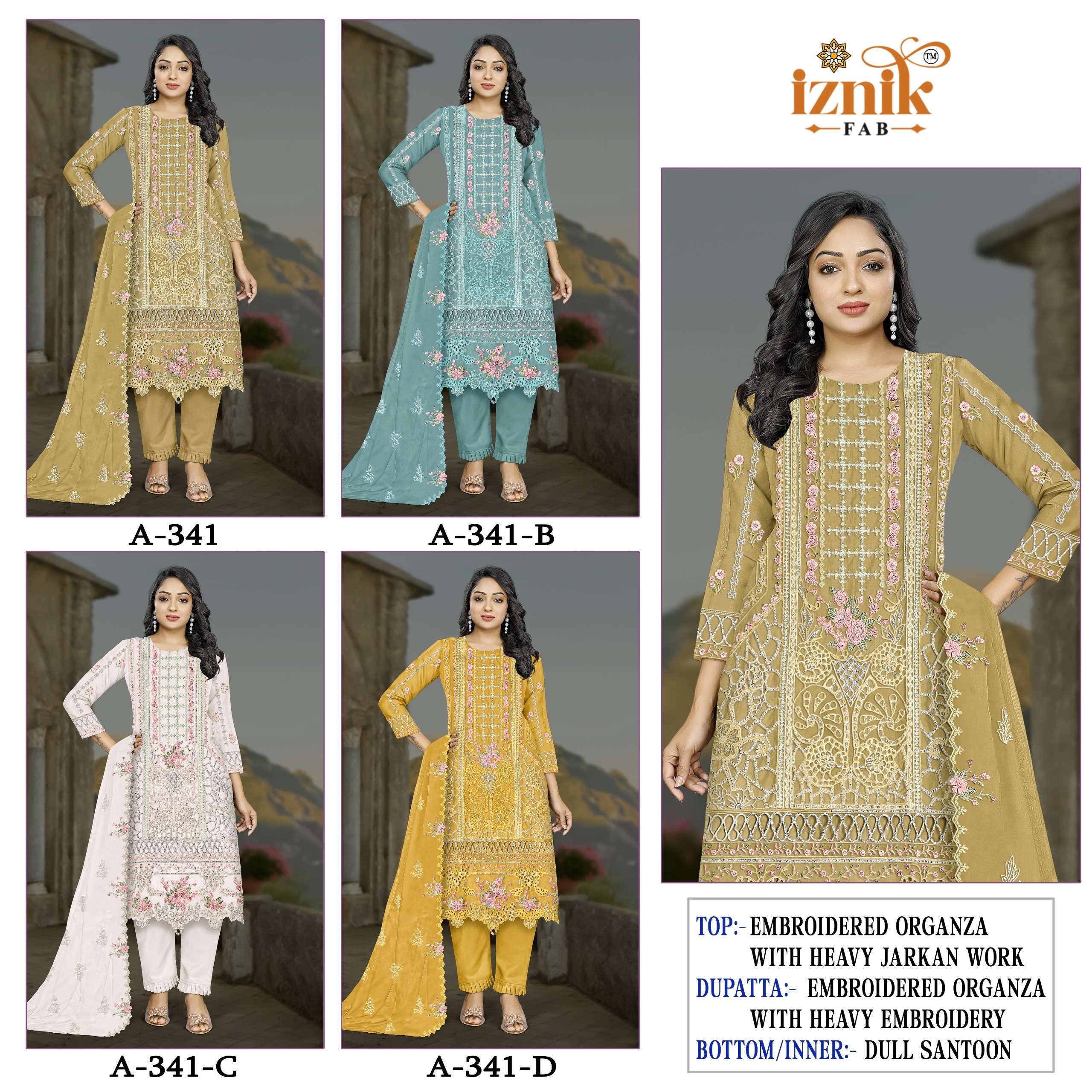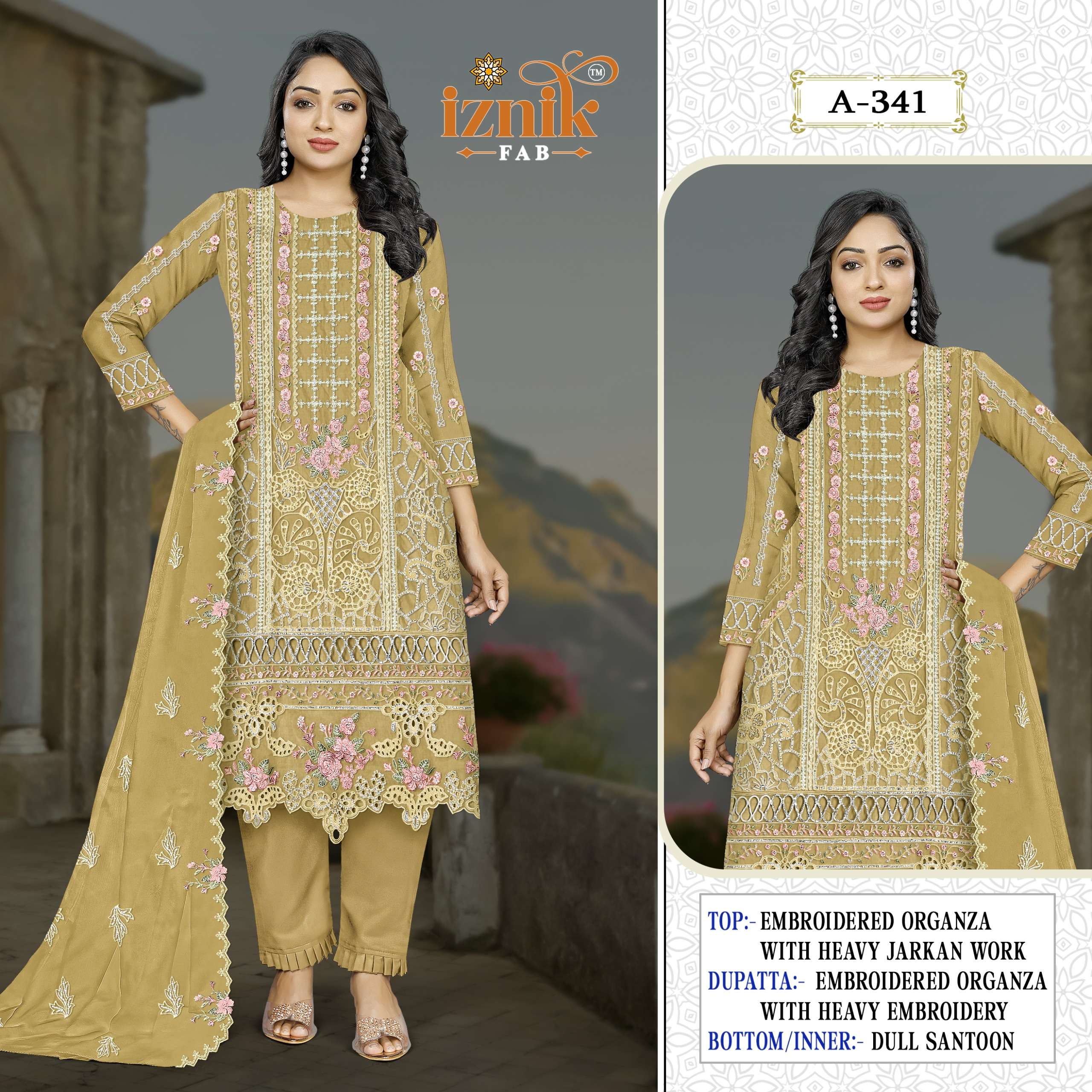 Buy Online IZNIK FAB 341 ORGANZA FABRIC HEAVY EMBROIDERY CUTWORK PAKISTANI SUIT RESELLER 4 Pcs of Full Catalogue at Wholesale Price. Looking for IZNIK FAB 341 ORGANZA FABRIC HEAVY EMBROIDERY CUTWORK PAKISTANI SUIT RESELLER Full Catalouge at Best Price? Buy Now IZNIK FAB 341 ORGANZA FABRIC HEAVY EMBROIDERY CUTWORK PAKISTANI SUIT RESELLER at Wholesale Rate of Rs 4600 with Total 4 Pcs from authroized dealer and supplier of IZNIK Brand. Cost of Each piece is just only Rs 1150 which is very low and affordable price to resale the product in your retail store Ethnic Export is Surat based Wholesale Supplier & Dealer of IZNIK Brand. Click on Brand name to Know more about IZNIK Brand's products.Call or Whatsapp on +91-9825759366 for booking or enquiry