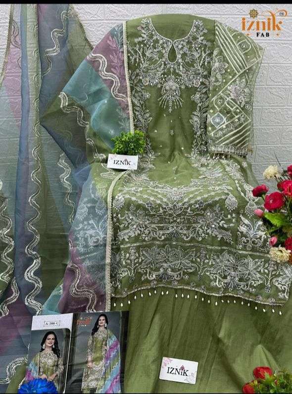 Buy Online IZNIK FAB A 288 SHADI SPECIAL OUTFIT ORGANZA FABRIC WORK SALWAR SUIT DEALER 4 Pcs of Full Catalogue at Wholesale Price. Looking for IZNIK FAB A 288 SHADI SPECIAL OUTFIT ORGANZA FABRIC WORK SALWAR SUIT DEALER Full Catalouge at Best Price? Buy Now IZNIK FAB A 288 SHADI SPECIAL OUTFIT ORGANZA FABRIC WORK SALWAR SUIT DEALER at Wholesale Rate of Rs 5400 with Total 4 Pcs from authroized dealer and supplier of IZNIK Brand. Cost of Each piece is just only Rs 1350 which is very low and affordable price to resale the product in your retail store Ethnic Export is Surat based Wholesale Supplier & Dealer of IZNIK Brand. Click on Brand name to Know more about IZNIK Brand's products.Call or Whatsapp on +91-9825759366 for booking or enquiry