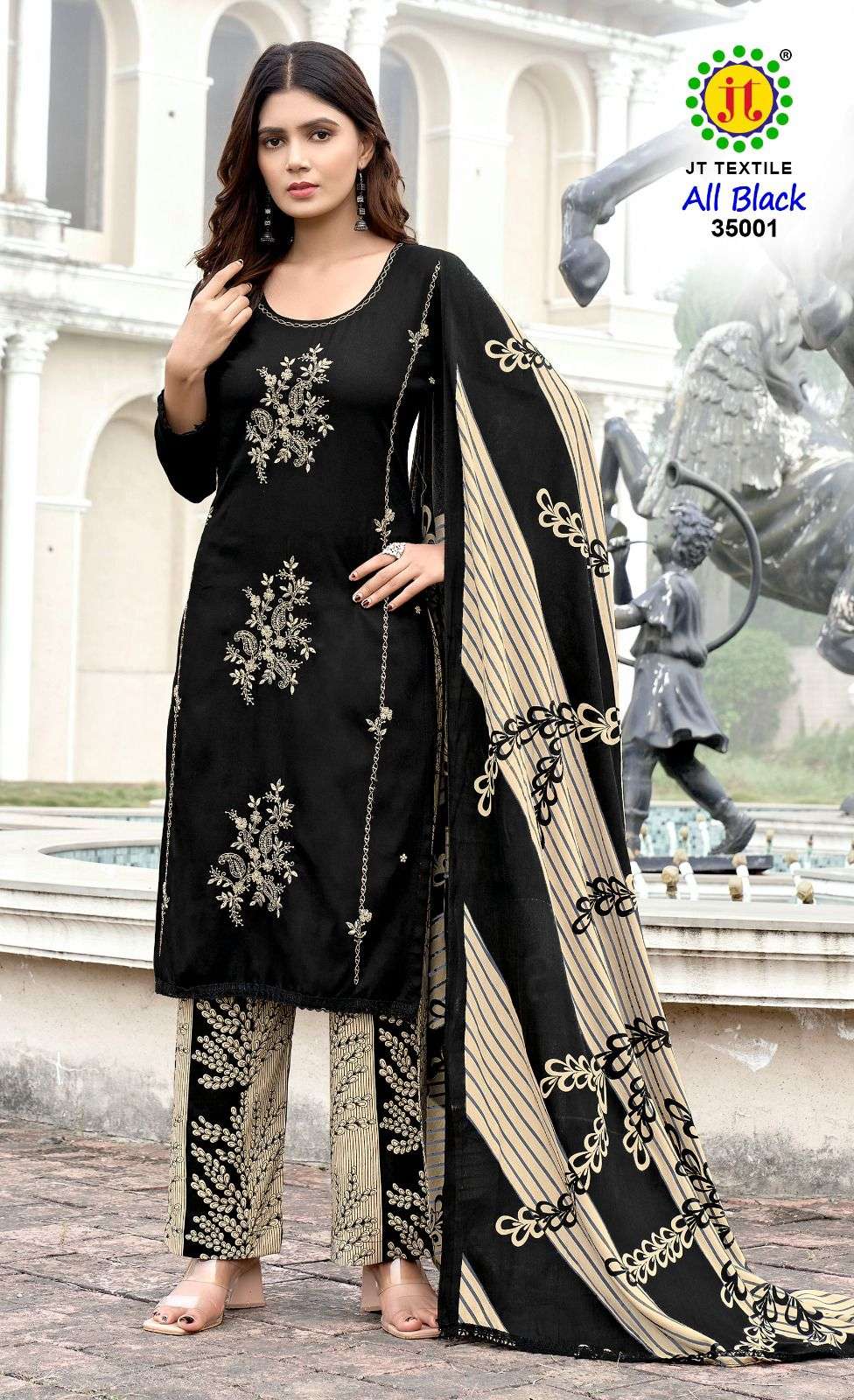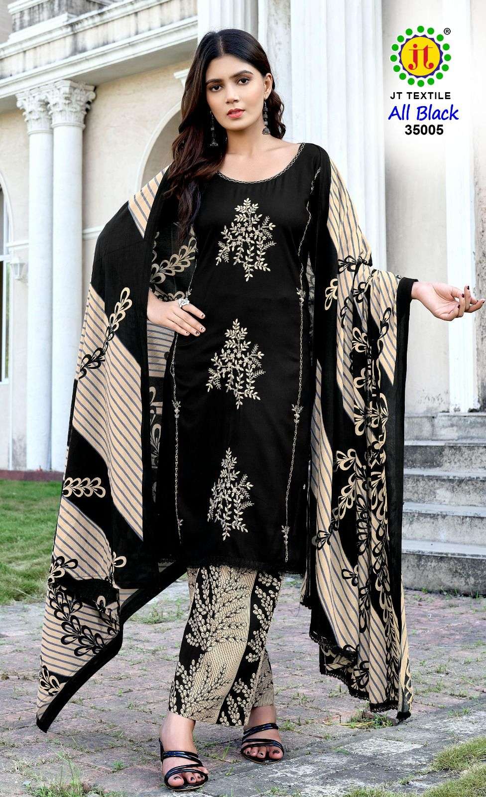 Buy Online JAMATMAL ALL BLACK VOL 35 RAYON PRINTED BLACK SUIT FOR UNSTITCH WHOLESALE 5 Pcs of Full Catalogue at Wholesale Price. Looking for JAMATMAL ALL BLACK VOL 35 RAYON PRINTED BLACK SUIT FOR UNSTITCH WHOLESALE Full Catalouge at Best Price? Buy Now JAMATMAL ALL BLACK VOL 35 RAYON PRINTED BLACK SUIT FOR UNSTITCH WHOLESALE at Wholesale Rate of Rs 2725 with Total 5 Pcs from authroized dealer and supplier of JAMATMAL T Brand. Cost of Each piece is just only Rs 545 which is very low and affordable price to resale the product in your retail store Ethnic Export is Surat based Wholesale Supplier & Dealer of JAMATMAL T Brand. Click on Brand name to Know more about JAMATMAL T Brand's products.Call or Whatsapp on +91-9825759366 for booking or enquiry