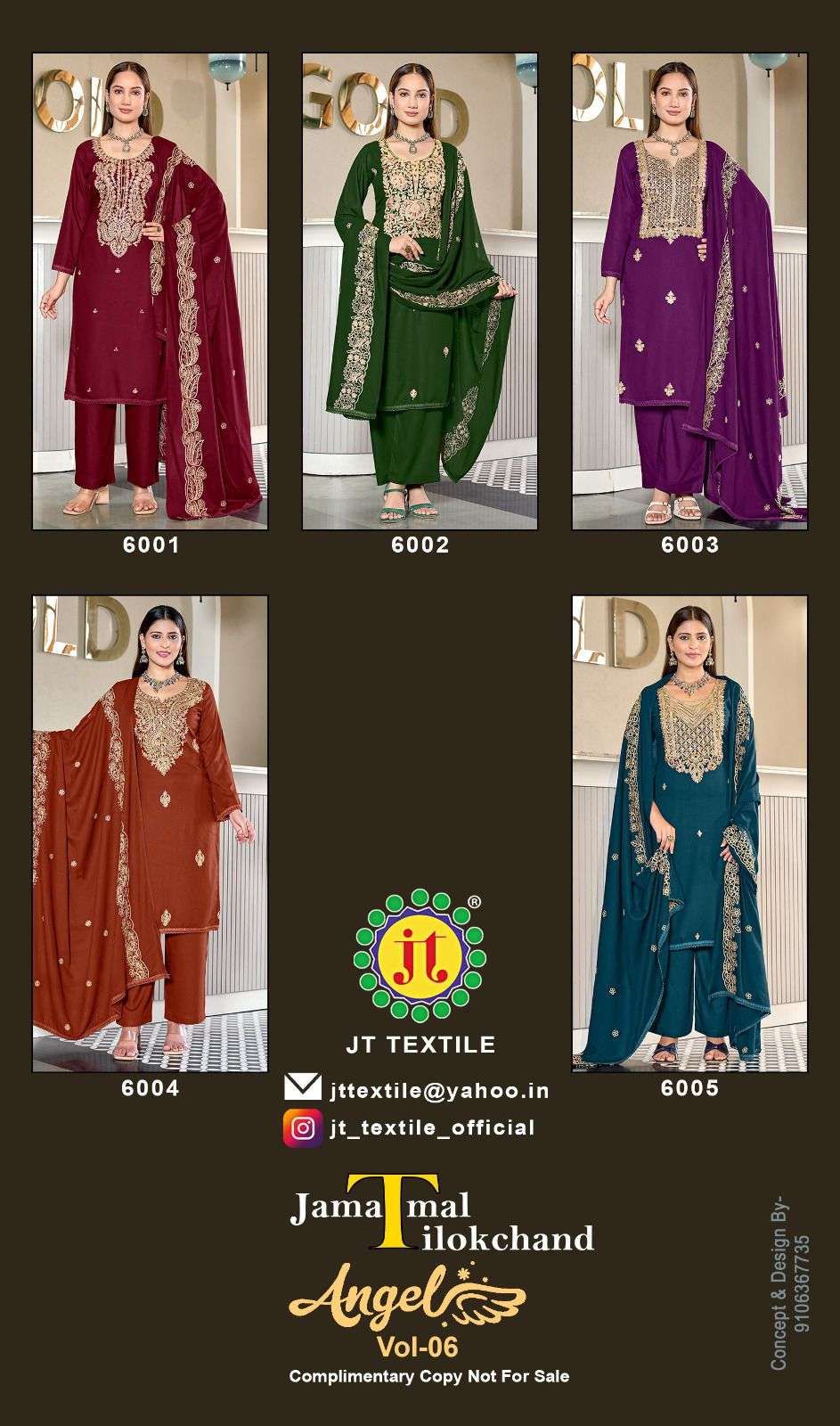 Buy Online JAMATMAL ANGEL VOL 6 BOUTIQUE QUALITY RAYON EMBROIDERY LACE 3 PIECE SUIT SUPPLIER 5 Pcs of Full Catalogue at Wholesale Price. Looking for JAMATMAL ANGEL VOL 6 BOUTIQUE QUALITY RAYON EMBROIDERY LACE 3 PIECE SUIT SUPPLIER Full Catalouge at Best Price? Buy Now JAMATMAL ANGEL VOL 6 BOUTIQUE QUALITY RAYON EMBROIDERY LACE 3 PIECE SUIT SUPPLIER at Wholesale Rate of Rs 2925 with Total 5 Pcs from authroized dealer and supplier of JAMATMAL T Brand. Cost of Each piece is just only Rs 585 which is very low and affordable price to resale the product in your retail store Ethnic Export is Surat based Wholesale Supplier & Dealer of JAMATMAL T Brand. Click on Brand name to Know more about JAMATMAL T Brand's products.Call or Whatsapp on +91-9825759366 for booking or enquiry