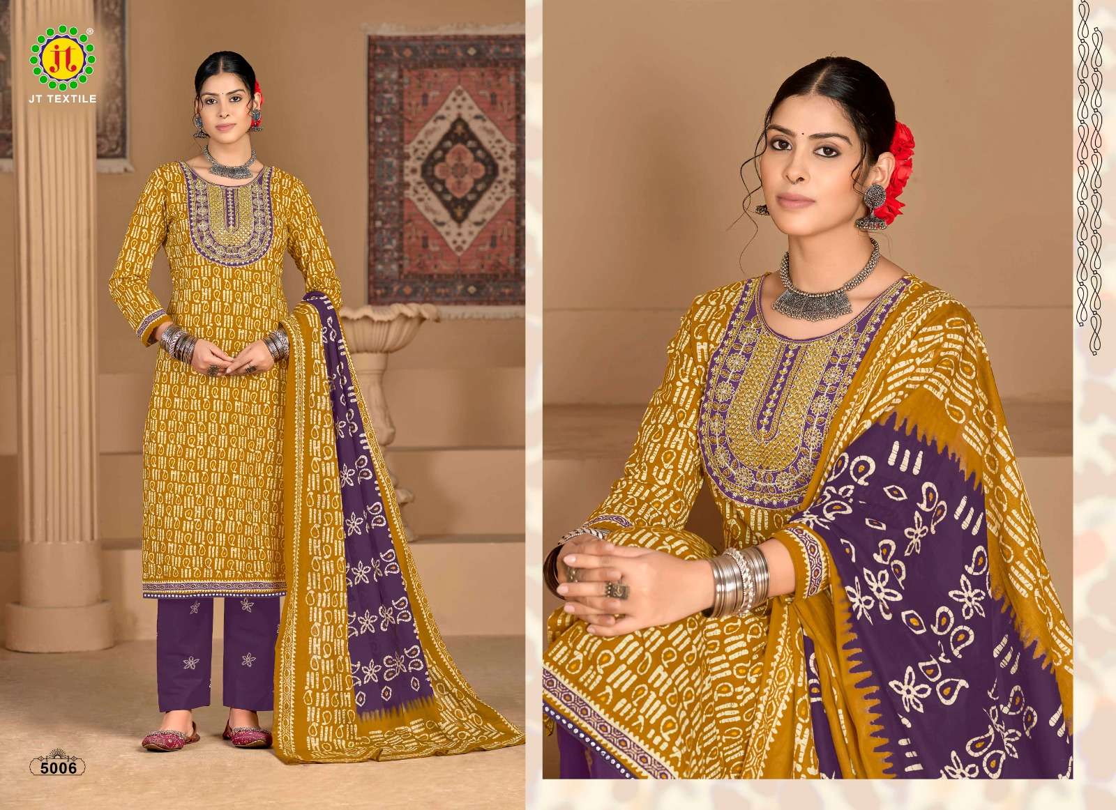 Buy Online JAMATMAL BATIK SPECIAL WORK VOL 5 PREMIUM COTTON & EMBROIDERY SUIT UNIQUE CLOTHING 10 Pcs of Full Catalogue at Wholesale Price. Looking for JAMATMAL BATIK SPECIAL WORK VOL 5 PREMIUM COTTON & EMBROIDERY SUIT UNIQUE CLOTHING Full Catalouge at Best Price? Buy Now JAMATMAL BATIK SPECIAL WORK VOL 5 PREMIUM COTTON & EMBROIDERY SUIT UNIQUE CLOTHING at Wholesale Rate of Rs 4350 with Total 10 Pcs from authroized dealer and supplier of JAMATMAL T Brand. Cost of Each piece is just only Rs 435 which is very low and affordable price to resale the product in your retail store Ethnic Export is Surat based Wholesale Supplier & Dealer of JAMATMAL T Brand. Click on Brand name to Know more about JAMATMAL T Brand's products.Call or Whatsapp on +91-9825759366 for booking or enquiry