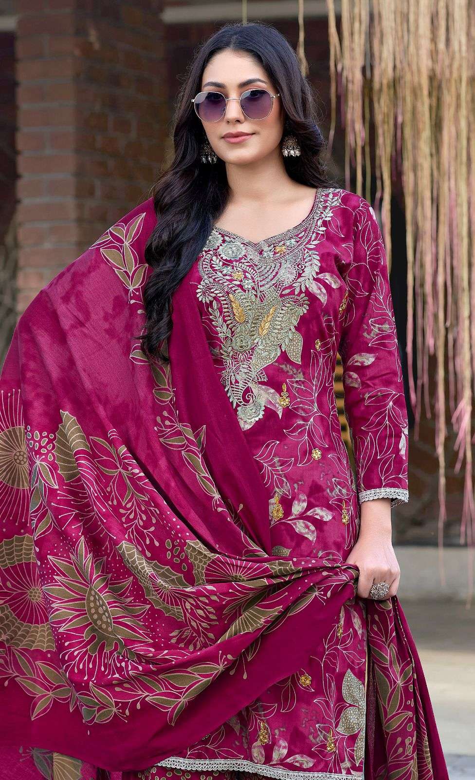 👚TOP: Rayon Fabric With Embroidery Work, Foil Print And Lace ( 2.50mtr) 👖BOTTOM: Rayon Printed Fabrics ( 2.50mtr) 🧣DUP: Reyon Dupatta With Lace ( 2.25mtr) Pouch Packing FULL SET ONLY |