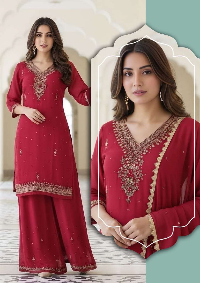 K 325 DIWALI FESTIVAL NEW PATTERN GEORGETTE KURTI PALAZZO SUIT ETHNIC STORE