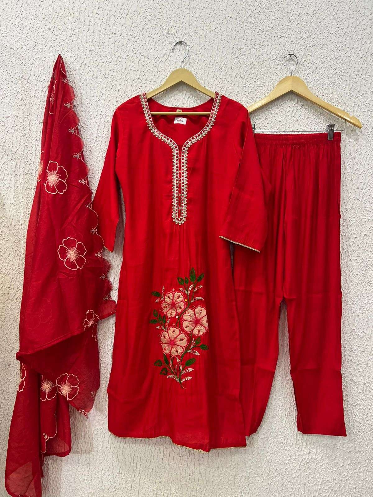 K 340 ROMAN SILK 3 PCS WITH EMBROIDERY SALWAR SUIT TO FESTIVAL INDIAN DRESS