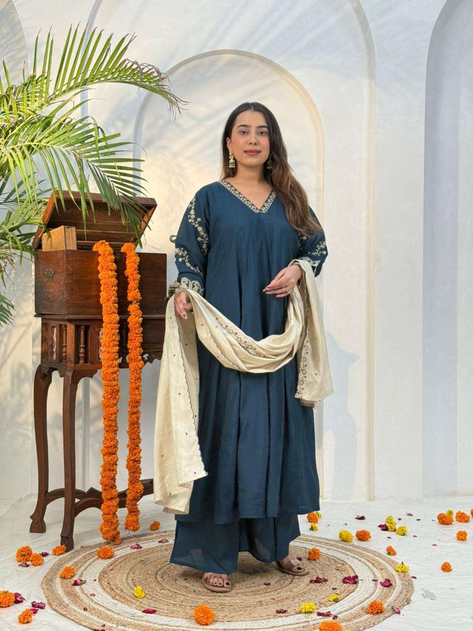 K 417 ROMAN FABRIC GHERA TYPE KURTI PALAZZO SUIT TO FESTIVAL INDIAN DEALER