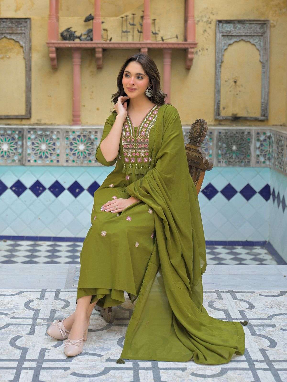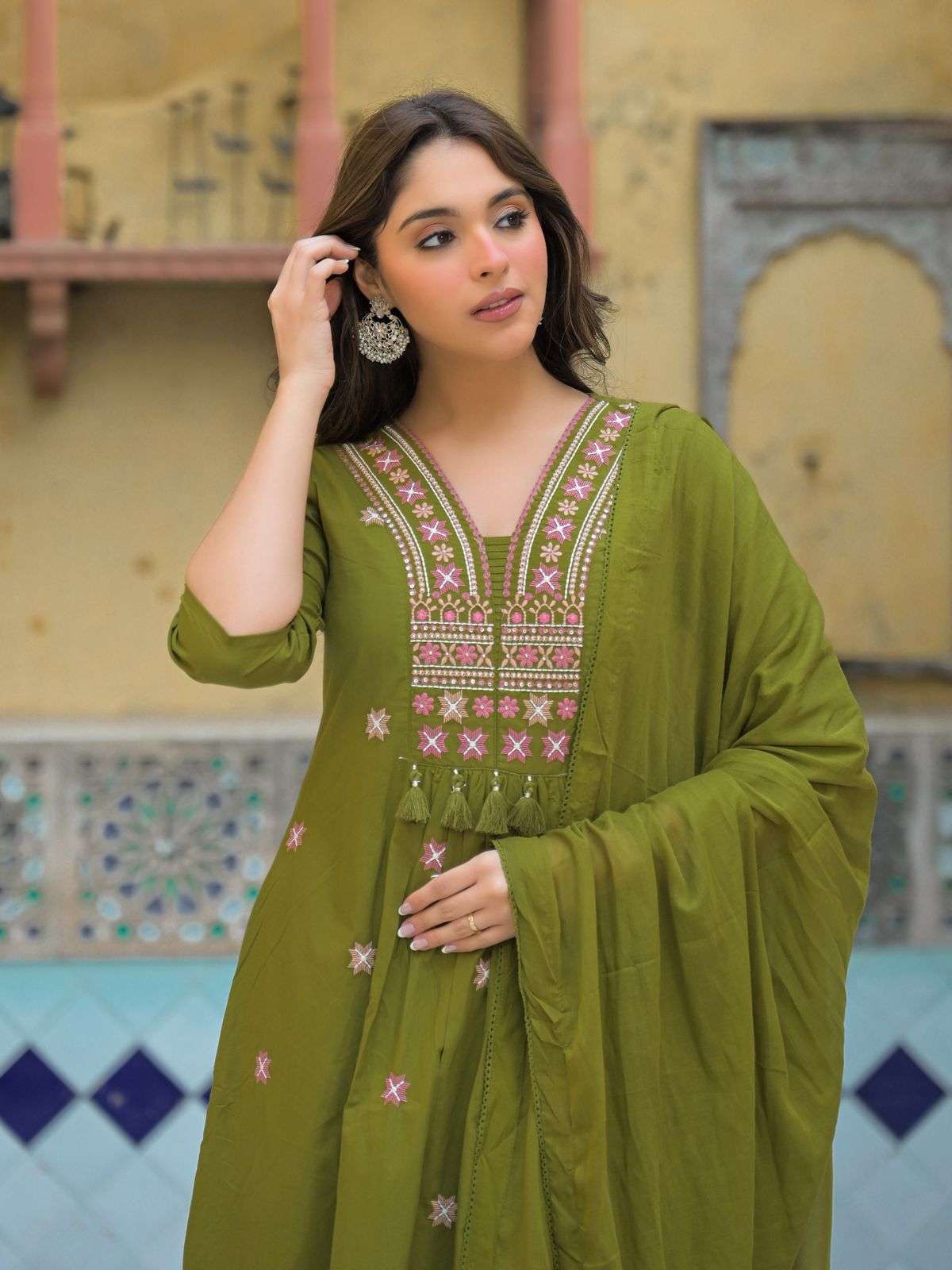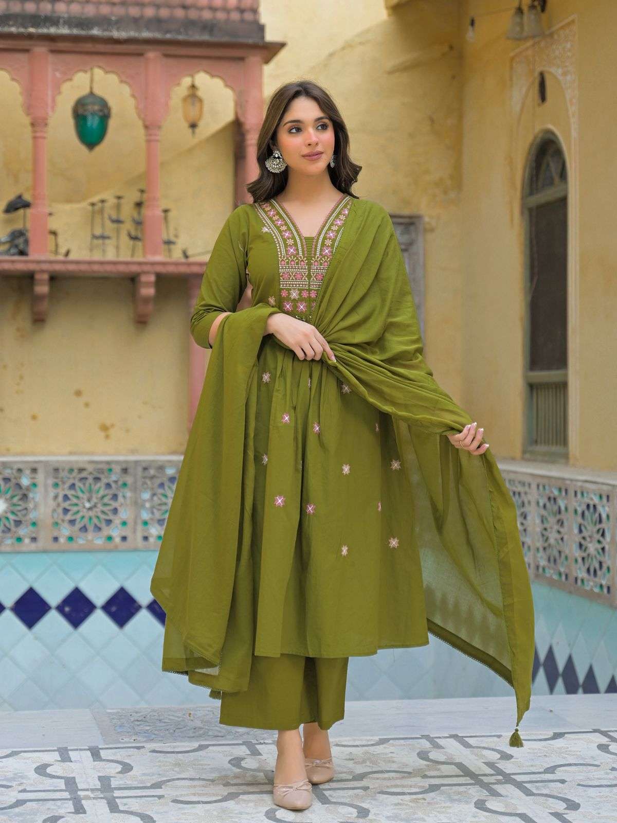 K 434 NEW TRENDING FESTIVAL 3 PIECE LAIDES COTTON RESHAM WORK SUIT EXPORT