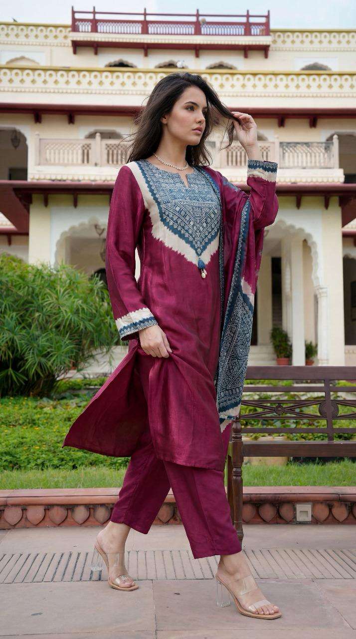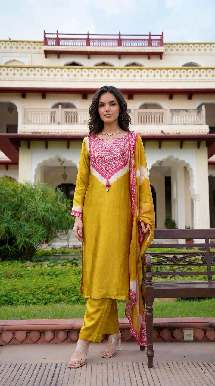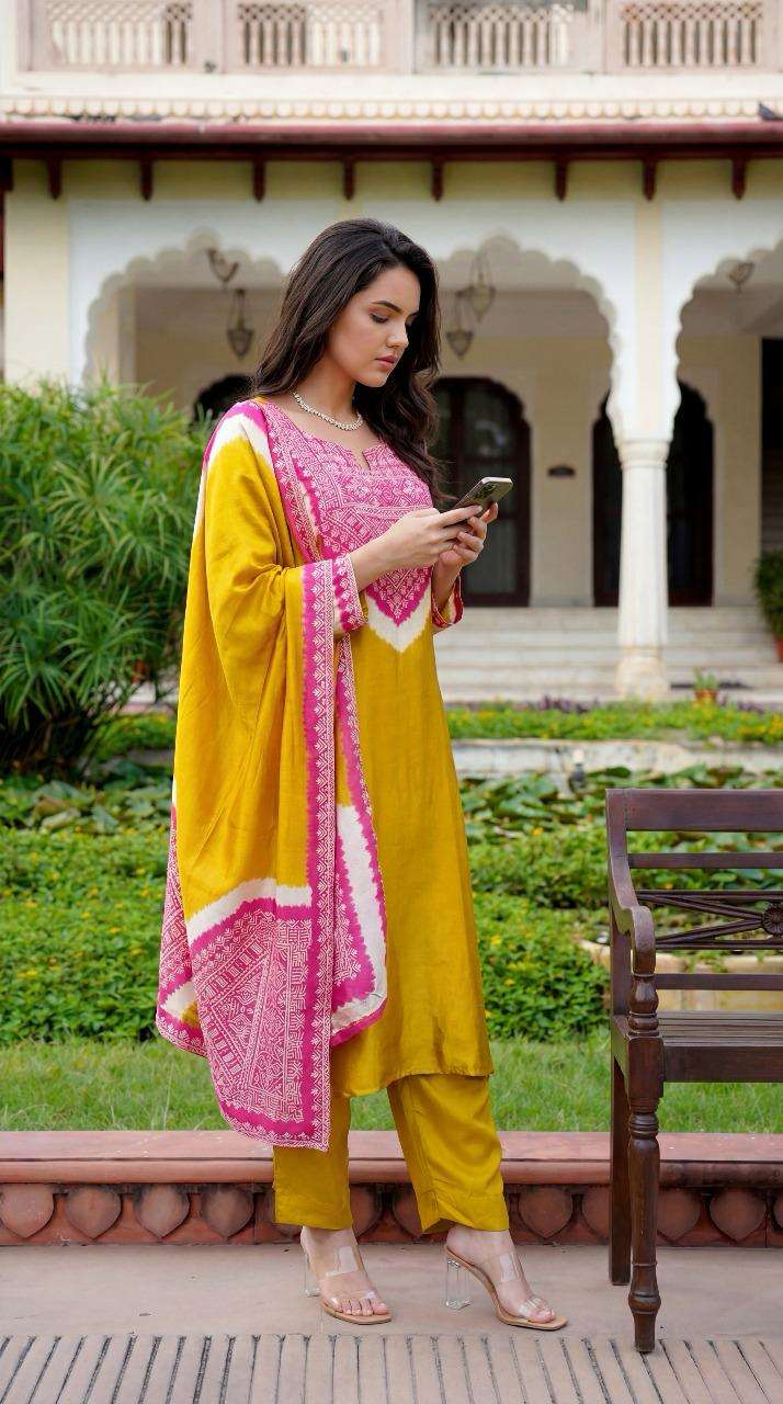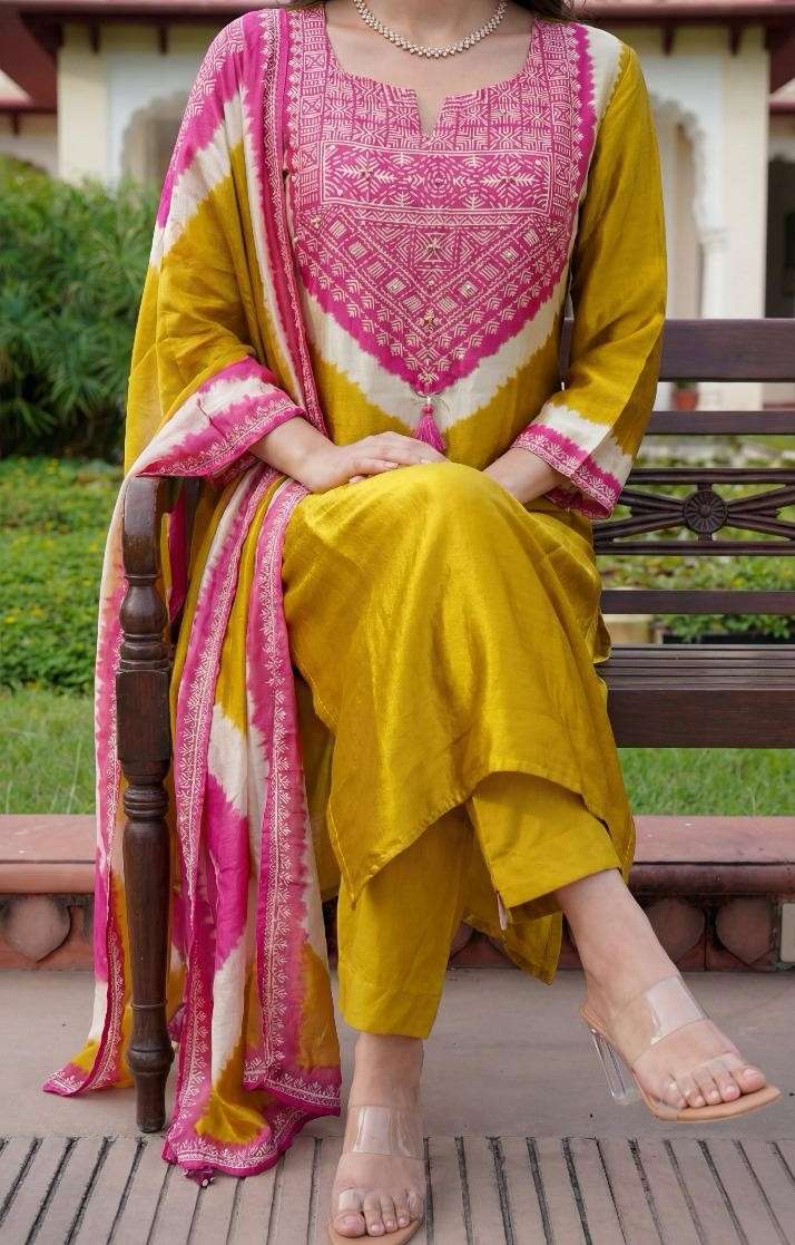 K 480 New Arrival in Pure Gazi silk suit set with beautiful embroidery work done 38 to 44 Sizes These are combo sets: Select 1 Color All Size Compulsory |