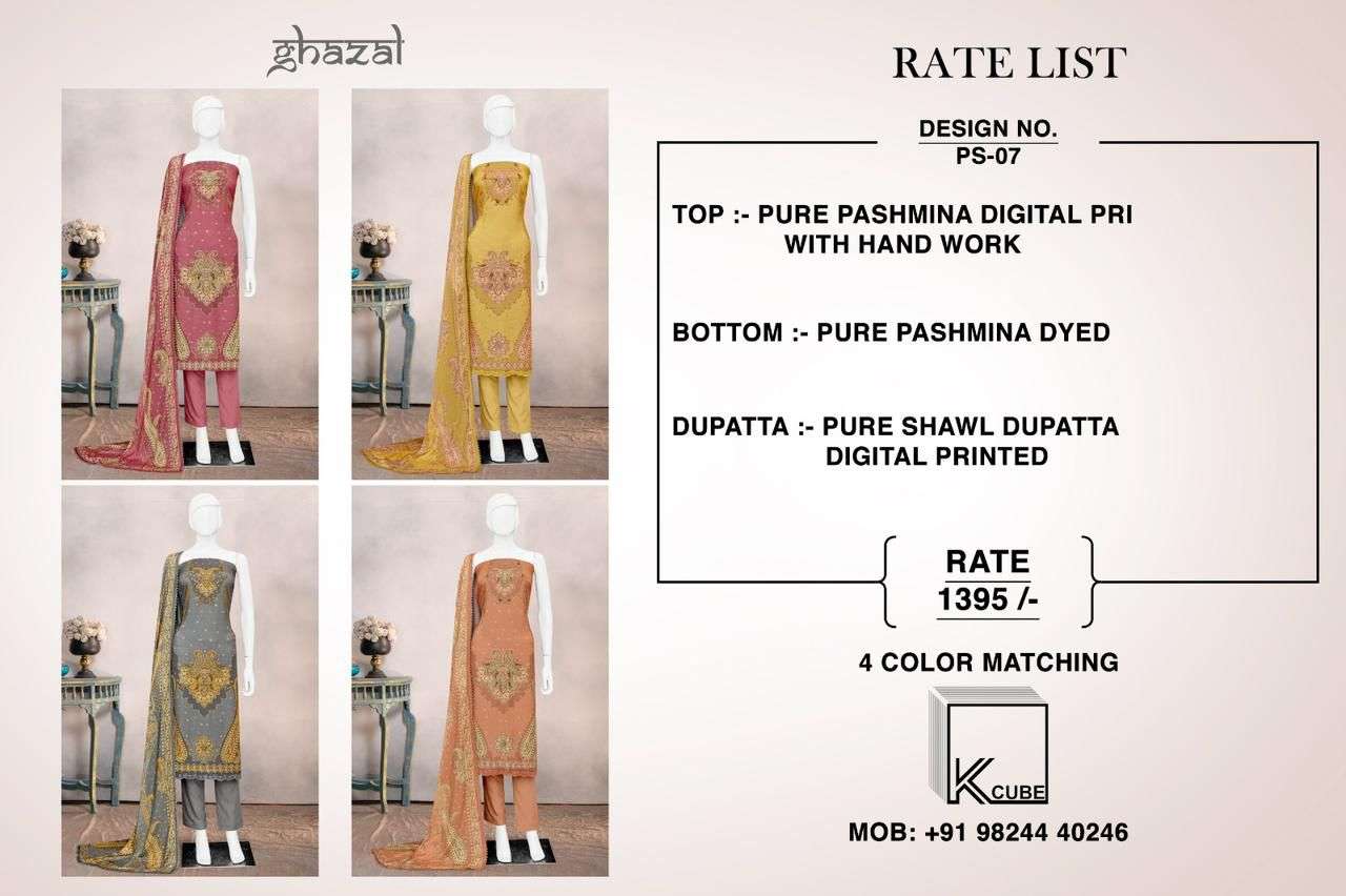 Buy Online K CUBE GHAZAL PURE PASHMINA DIGITAL HANDWORK MATERIAL SUIT TO FUNCTION WEAR 8 Pcs of Full Catalogue at Wholesale Price. Looking for K CUBE GHAZAL PURE PASHMINA DIGITAL HANDWORK MATERIAL SUIT TO FUNCTION WEAR Full Catalouge at Best Price? Buy Now K CUBE GHAZAL PURE PASHMINA DIGITAL HANDWORK MATERIAL SUIT TO FUNCTION WEAR at Wholesale Rate of Rs 11160 with Total 8 Pcs from authroized dealer and supplier of K CUBE Brand. Cost of Each piece is just only Rs 1395 which is very low and affordable price to resale the product in your retail store Ethnic Export is Surat based Wholesale Supplier & Dealer of K CUBE Brand. Click on Brand name to Know more about K CUBE Brand's products.Call or Whatsapp on +91-9825759366 for booking or enquiry
