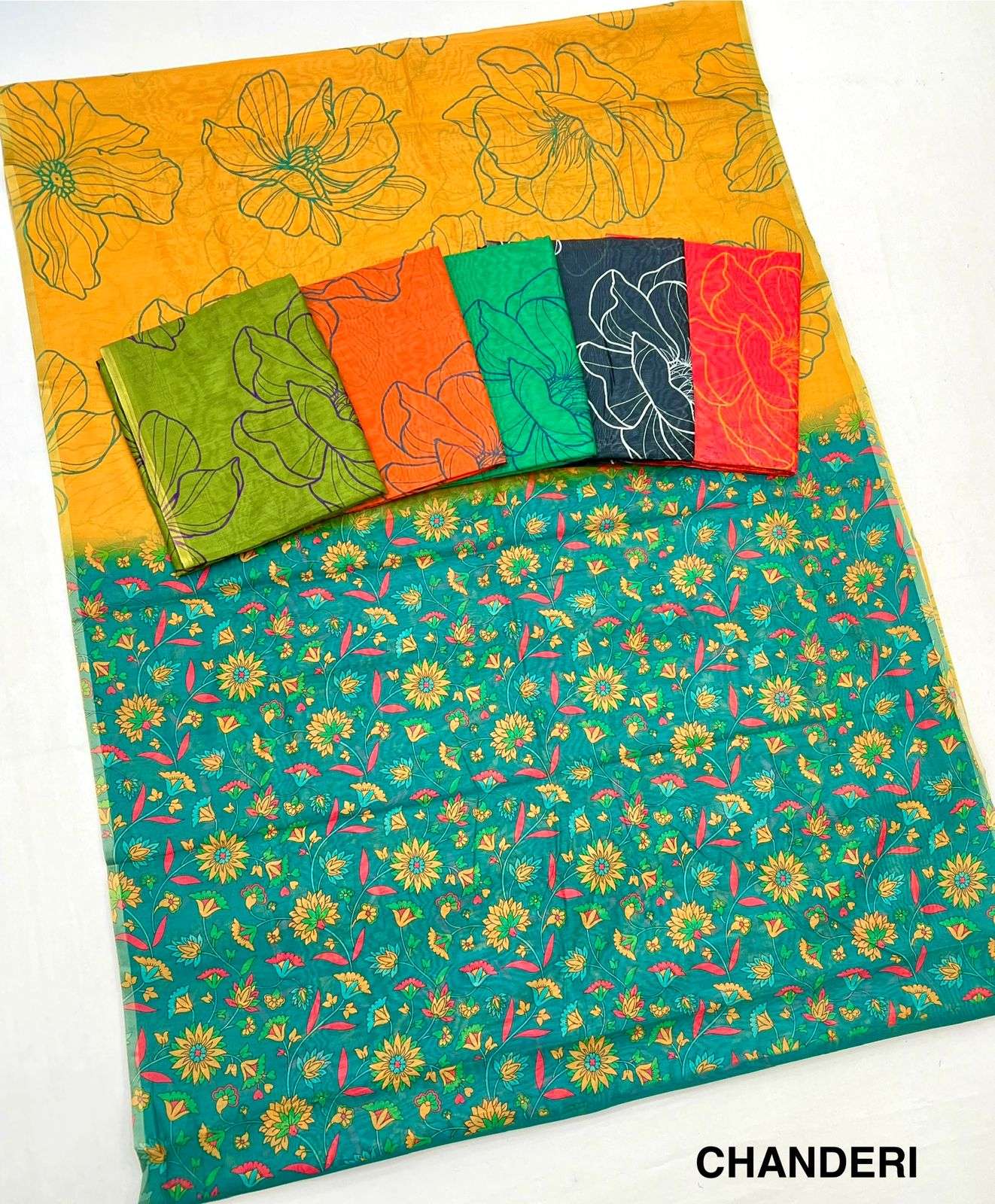 KAZARI SARESS CHANDERI LINEN FANCY PRINTED SAREE BEST COLLECTION