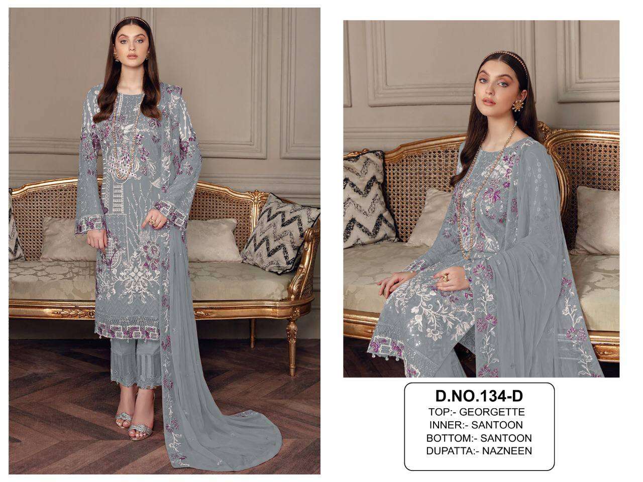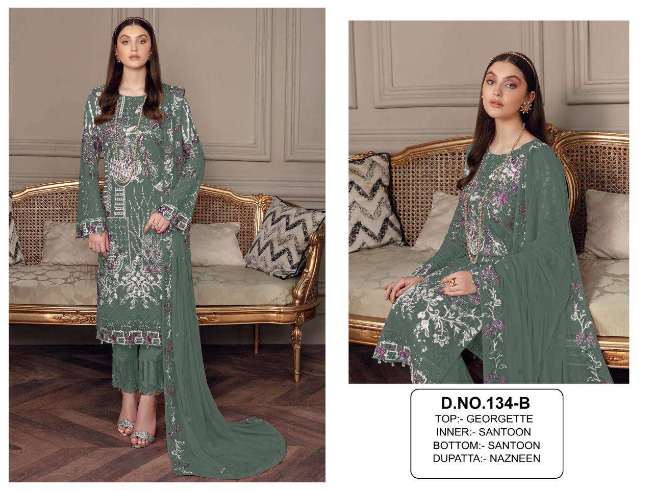 Title | KF 134 TOP PAKISTANI DESIGN OUTFIT GEORGETTE FABRIC DIAMOND WORK PAKISTANI SUIT |