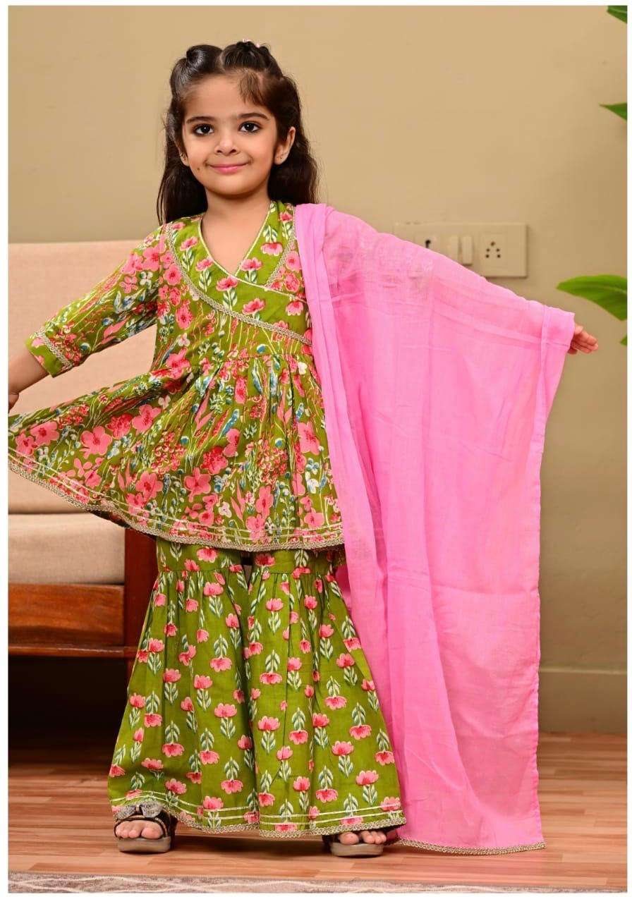 KIDS 07 CHILDREN GIRLS COTTON KURTA SHARARA & DUPATTA SET COMBO WHOLESALER