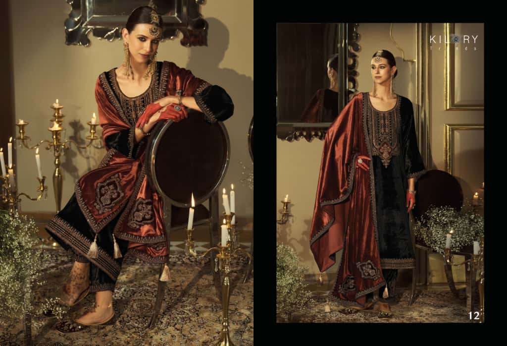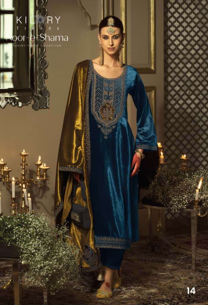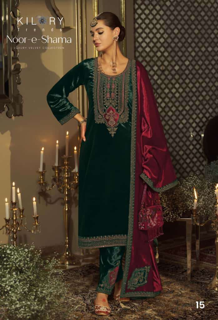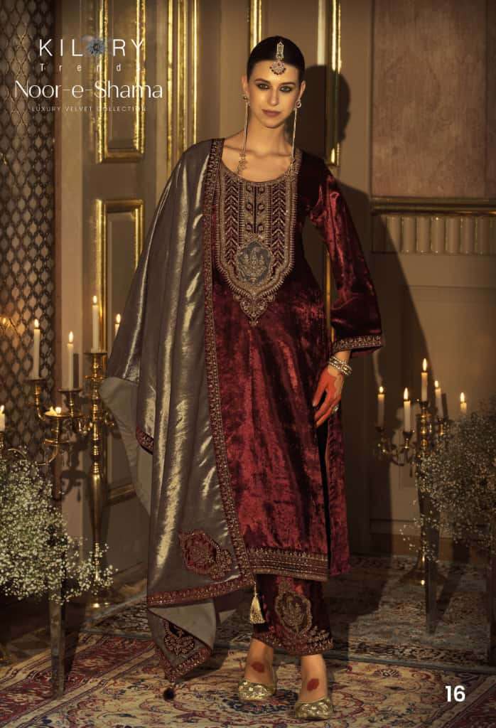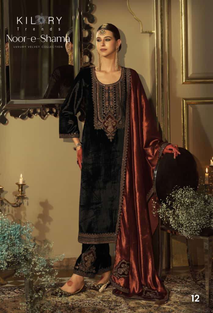 Buy Online KILORY TRENDS NOOR E SHAMA VELVET WITH CODING EMBROIDERY WORK MATERIAL SUIT EXPORT 6 Pcs of Full Catalogue at Wholesale Price. Looking for KILORY TRENDS NOOR E SHAMA VELVET WITH CODING EMBROIDERY WORK MATERIAL SUIT EXPORT Full Catalouge at Best Price? Buy Now KILORY TRENDS NOOR E SHAMA VELVET WITH CODING EMBROIDERY WORK MATERIAL SUIT EXPORT at Wholesale Rate of Rs 14970 with Total 6 Pcs from authroized dealer and supplier of kilory trends Brand. Cost of Each piece is just only Rs 2495 which is very low and affordable price to resale the product in your retail store Ethnic Export is Surat based Wholesale Supplier & Dealer of kilory trends Brand. Click on Brand name to Know more about kilory trends Brand's products.Call or Whatsapp on +91-9825759366 for booking or enquiry