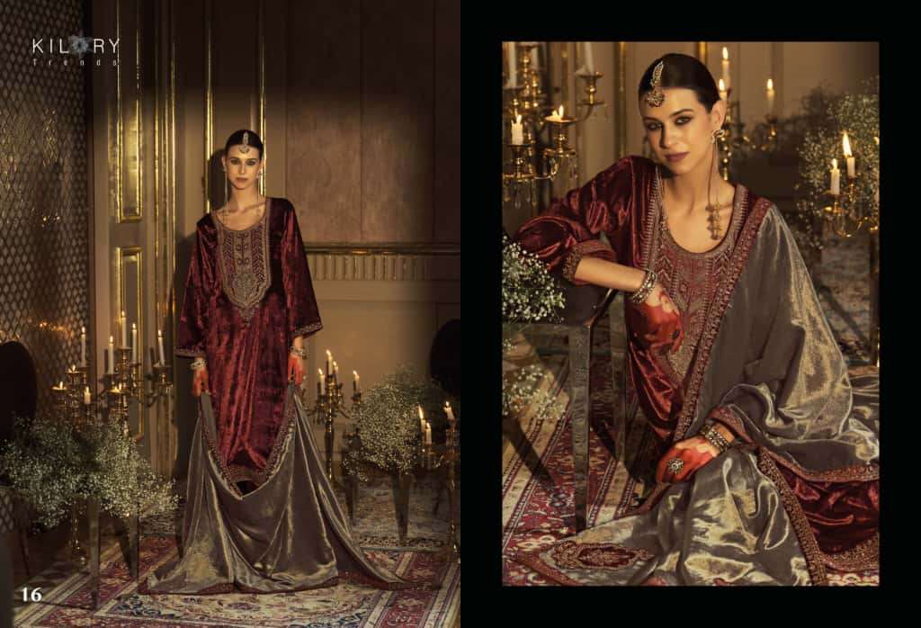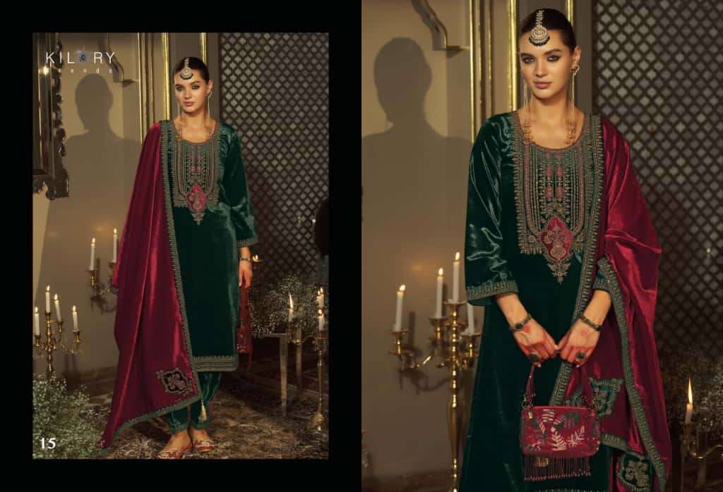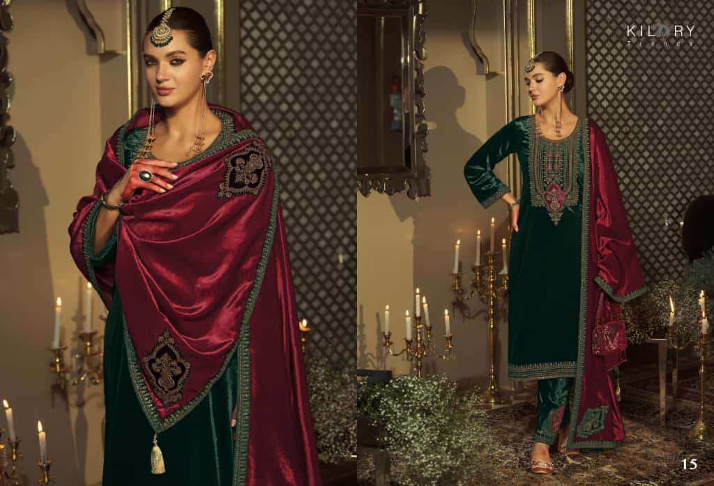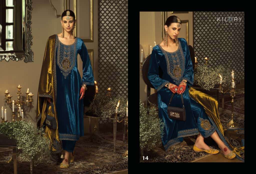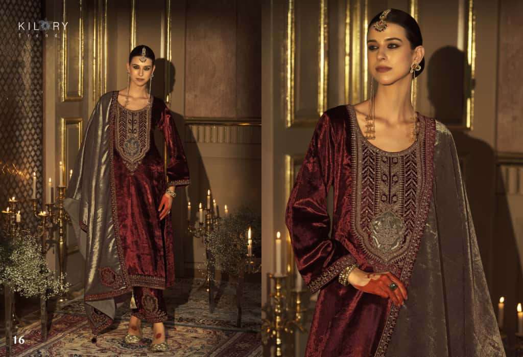 Buy Online KILORY TRENDS NOOR E SHAMA VELVET WITH CODING EMBROIDERY WORK MATERIAL SUIT EXPORT 6 Pcs of Full Catalogue at Wholesale Price. Looking for KILORY TRENDS NOOR E SHAMA VELVET WITH CODING EMBROIDERY WORK MATERIAL SUIT EXPORT Full Catalouge at Best Price? Buy Now KILORY TRENDS NOOR E SHAMA VELVET WITH CODING EMBROIDERY WORK MATERIAL SUIT EXPORT at Wholesale Rate of Rs 14970 with Total 6 Pcs from authroized dealer and supplier of kilory trends Brand. Cost of Each piece is just only Rs 2495 which is very low and affordable price to resale the product in your retail store Ethnic Export is Surat based Wholesale Supplier & Dealer of kilory trends Brand. Click on Brand name to Know more about kilory trends Brand's products.Call or Whatsapp on +91-9825759366 for booking or enquiry