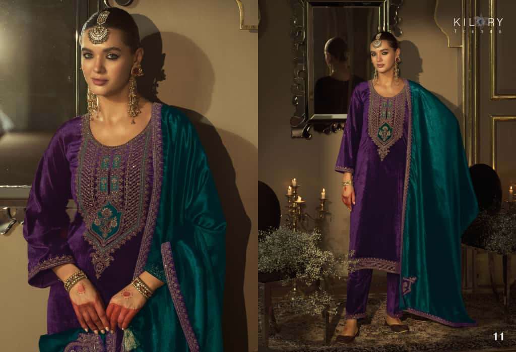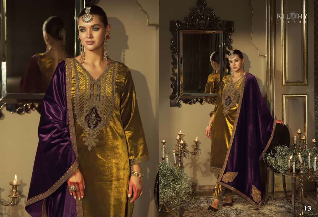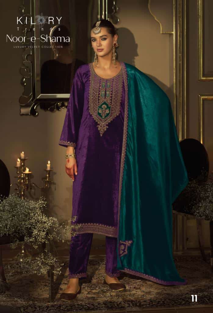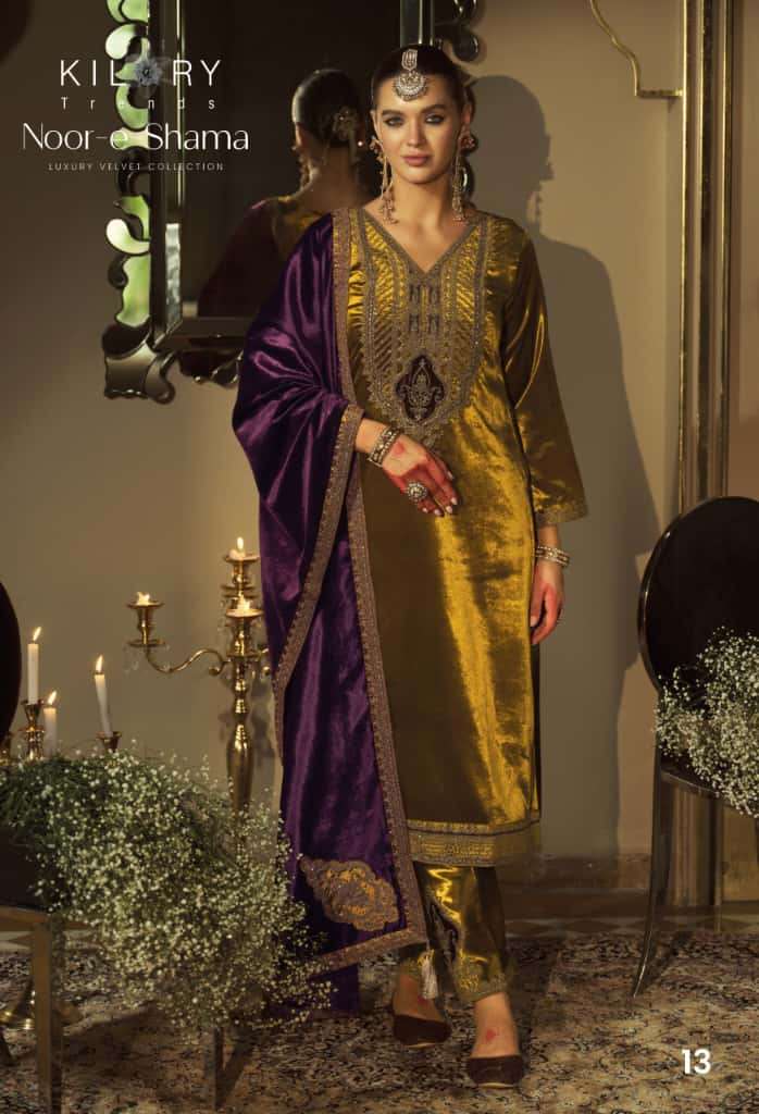 KILORY TRENDS NOOR E SHAMA VELVET WITH CODING EMBROIDERY WORK MATERIAL SUIT EXPORT